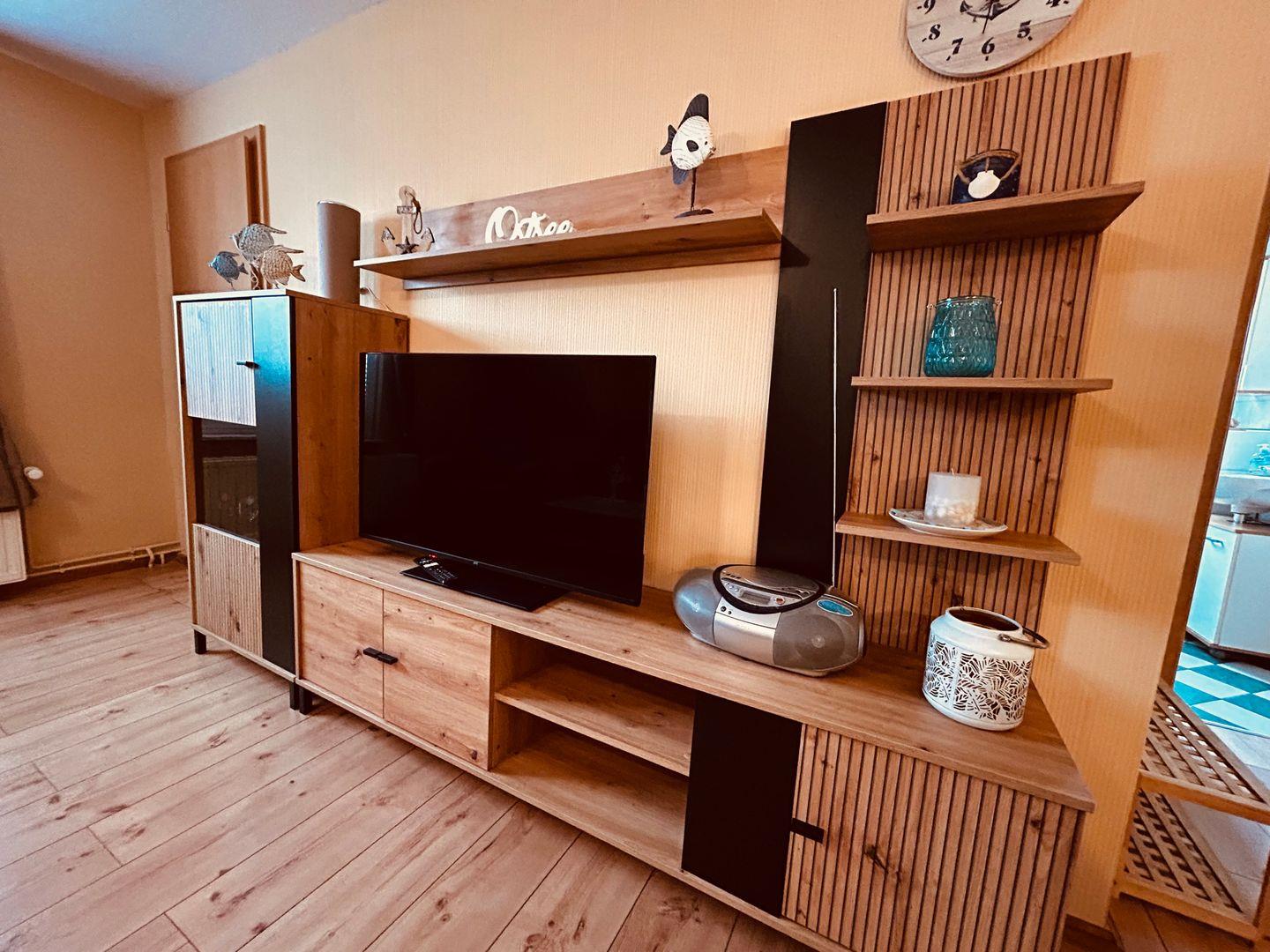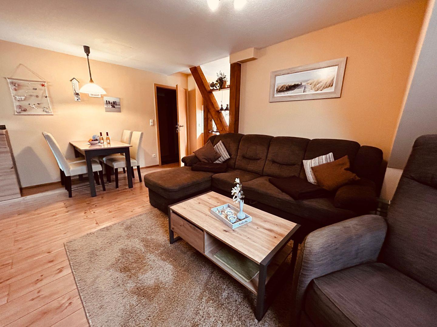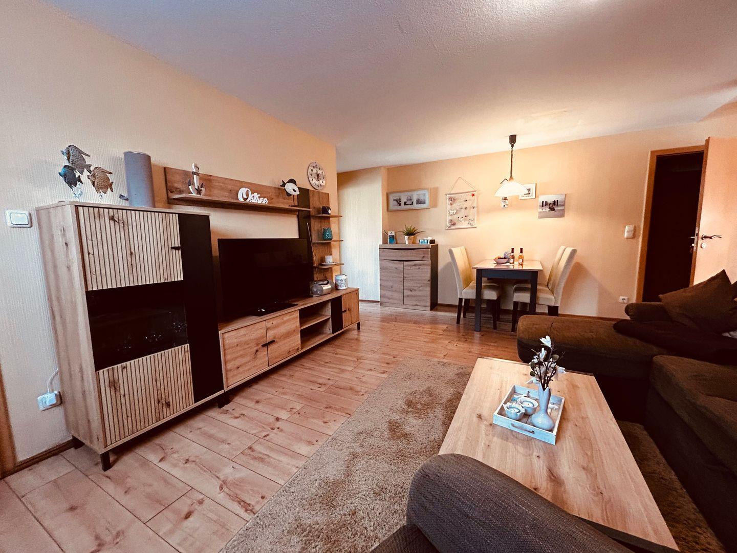 Die Unterkunft Karina II befindet sich in der Lindenstraße 49a in Zingst und bietet auf 50 m² Wohnfläche im 1. Stock modernen Komfort für einen angenehmen Aufenthalt an der Ostsee. Die Ferienwohnung eignet sich hervorragend für Paare oder kleine Familien und ist besonders kinderfreundlich gestaltet. Das lichtdurchflutete Wohnzimmer ist mit einer einladenden Sofaecke, einem gemütlichen Sessel sowie Laminatboden ausgestattet und verfügt über einen Fernseher mit digitalem Satellitenanschluss sowie ein Radio. Ein WLAN-Zugang ist vorhanden und ermöglicht Ihnen auch im Urlaub ein angenehmes Interneterlebnis.
