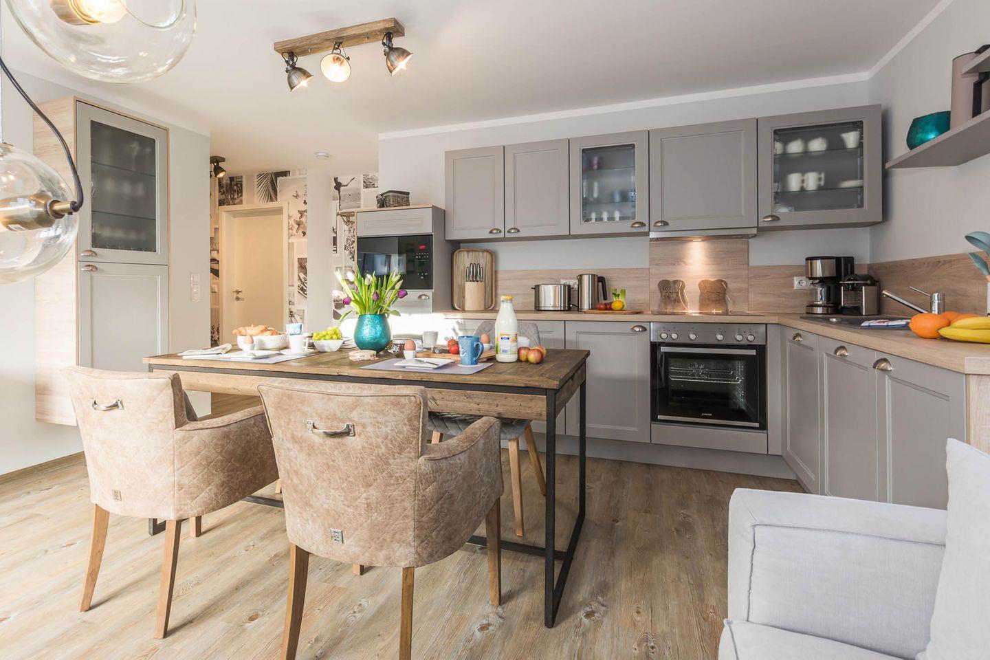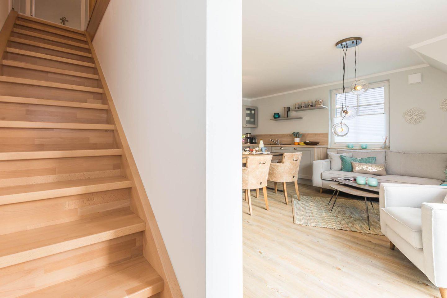 Neues, schönes Maisonette-Appartement mit viel Platz für 4 Personen in Zingst. Der große, helle und freundlich eingerichtete Wohnraum mit Koch- und Essnische lädt zum Verweilen ein. Die Küche ist mit hochwertigen Elektrogeräten und Küchenutensilien wie Mikrowelle, Wasserkocher, Toaster und Kaffeemaschine ausgestattet. Der Esstisch bietet ausreichend Platz für die ganze Familie. Gerne können Sie das Frühstück bei Sonnenschein auf dem möblierten Balkon einnehmen und die Meeresluft geniessen oder am Abend einfach den Sternenhimmel betrachten.