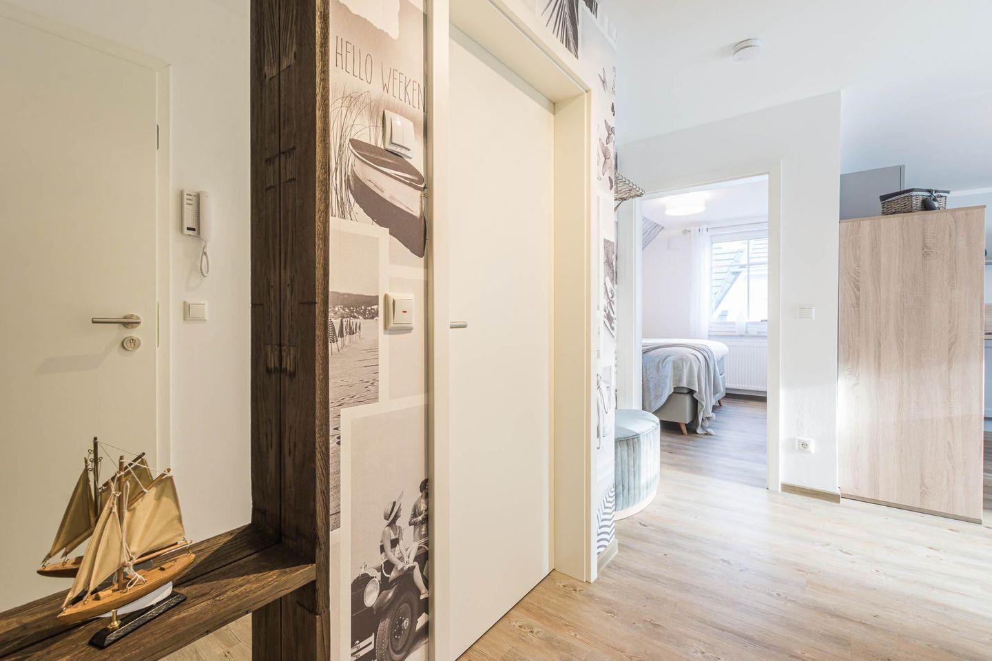 Die Flaschenpost hat 2 Schlafzimmer, das eine ist mit einem komfortablen Doppelbett, das andere im Dachgeschoss mit 2 bequemen Einzelbetten ausgestattet. Im offenen galerieartigen Dachgeschoss-Zimmer entsteht ein kleines "Kinderparadies". Neben kleinen Sitzmöbel und Kindertisch dürfen sich die jungen Urlauber auf eine gemütliche Rückzugs-Koje freuen.