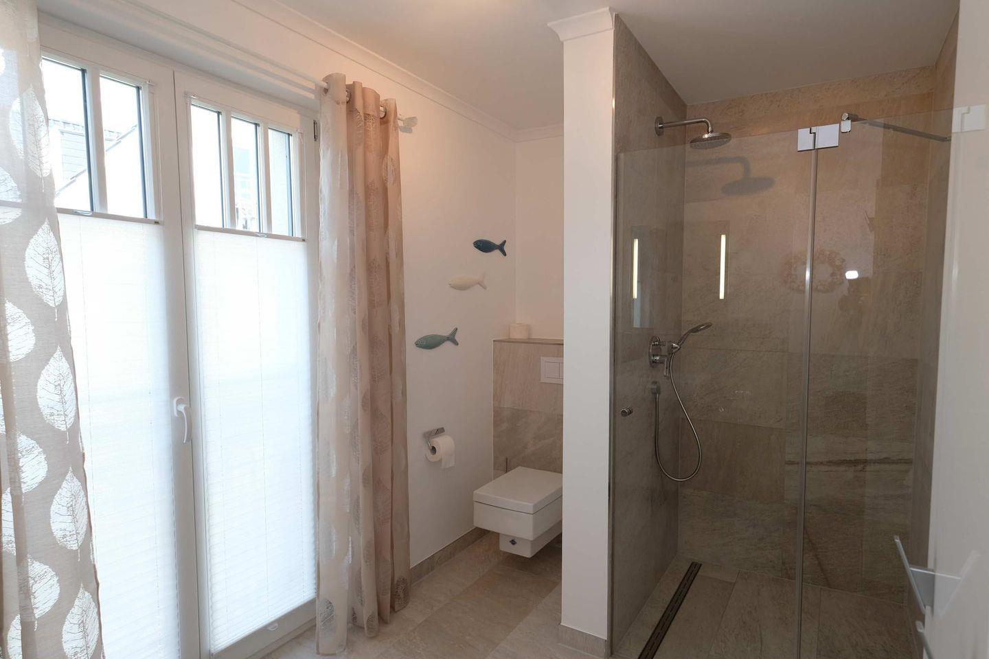 Der Innenbereich überzeugt mit gehobener Ausstattung und vielen Extras. Im Erdgeschoss erwartet Sie eine kleines Gästebadezimmer mit Dusche und WC, ein Abstellraum mit Waschtrockner sowie großzügigem Wohn-und Essbereich mit Kamin. Über die Treppe erreichen Sie das Obergeschoss, welches Ihnen ein geräumiges Badezimmer mit Dusche und WC, sowie ein Schlafzimmer mit großem Doppelbett und separatem Balkon und ein Schlafzimmer mit zwei Einzelbetten bietet.