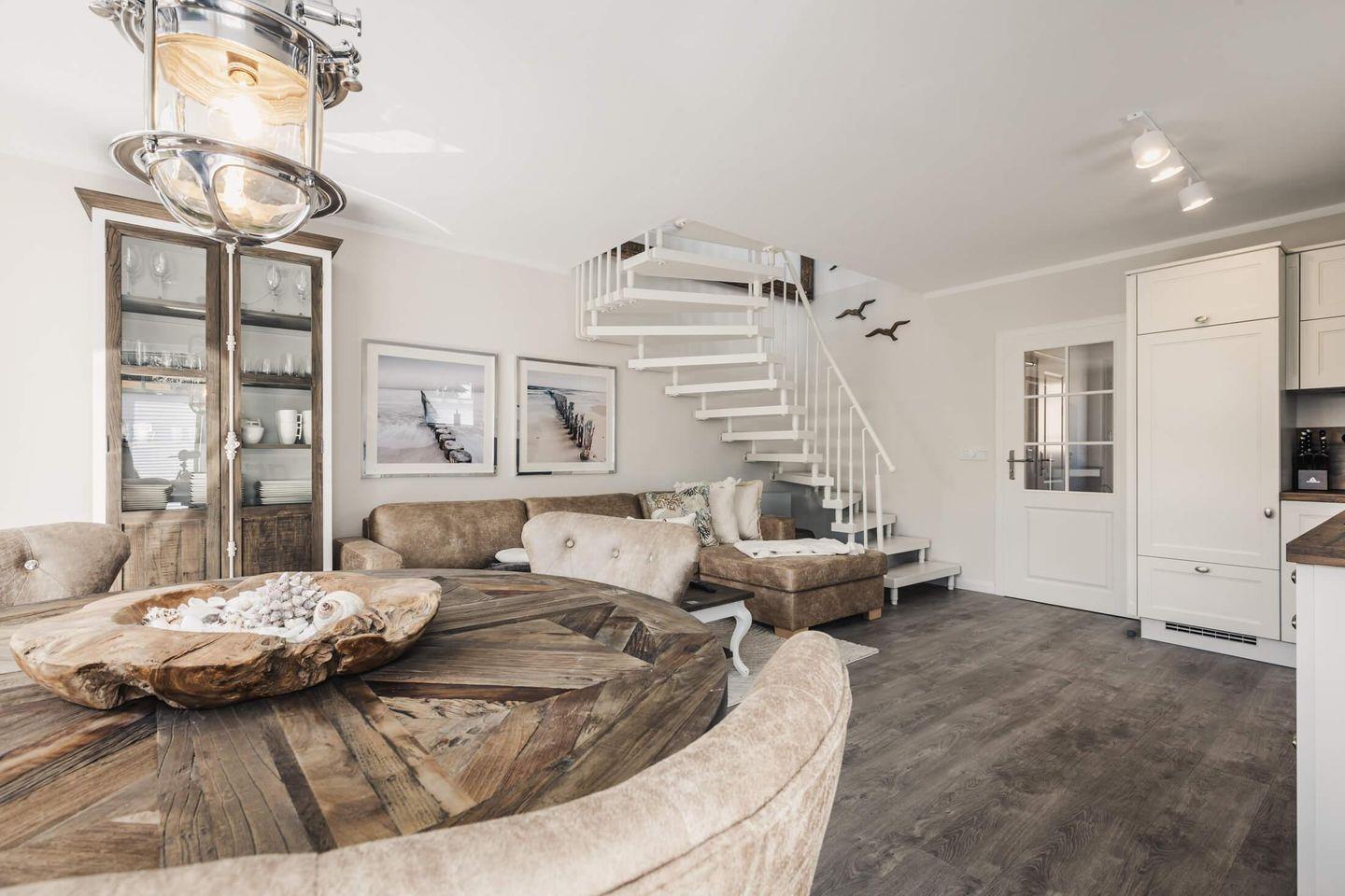 Das gesamte Haus Meerschönheit wurde liebevoll und hochwertig im Beachhouse-Stil von Riviera Maison eingerichtet. Helle Sandtöne, edles Holz und maritimer Flair lassen die lichtdurchfluteten Räume zu einem harmonischen Wohlfühlort werden.