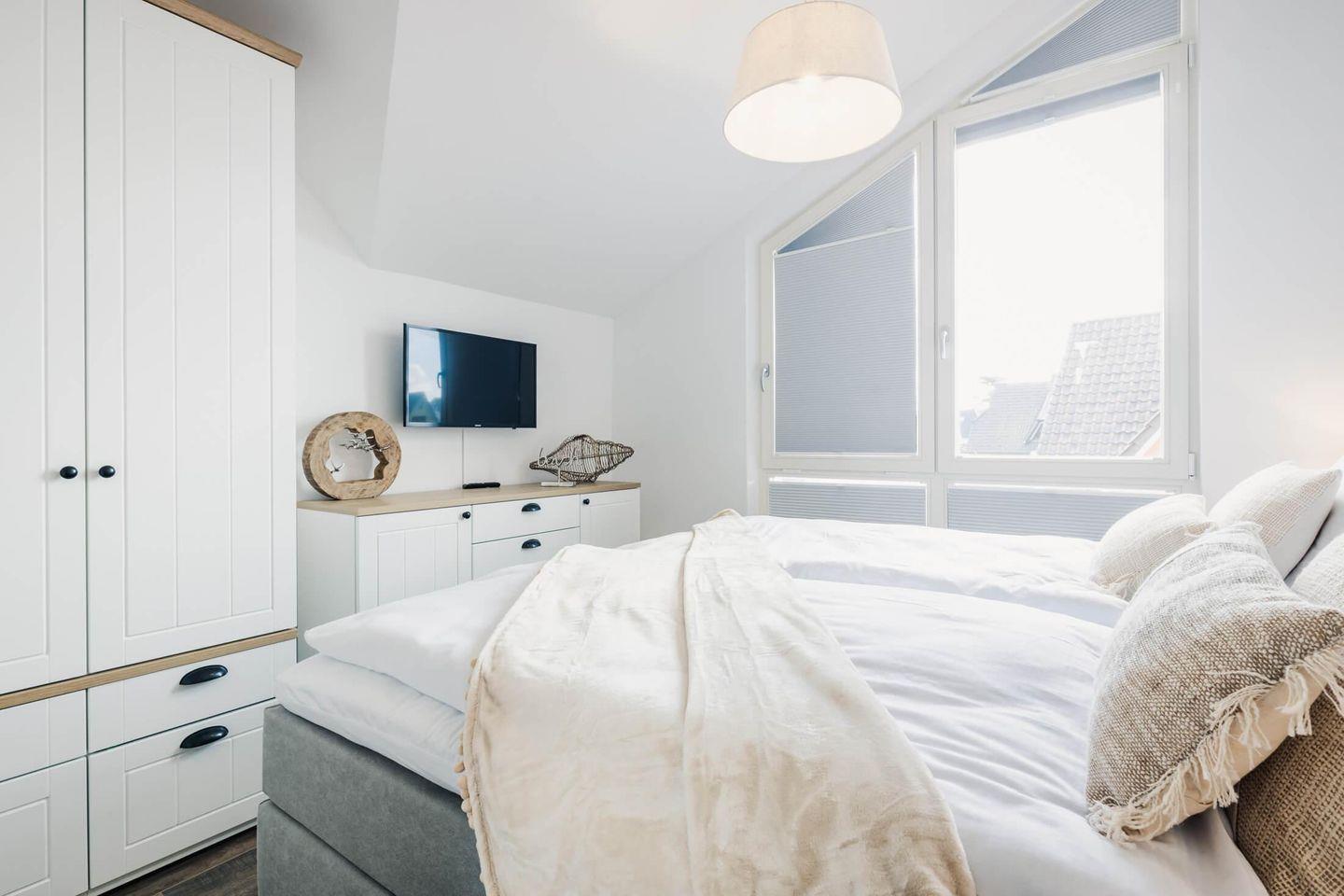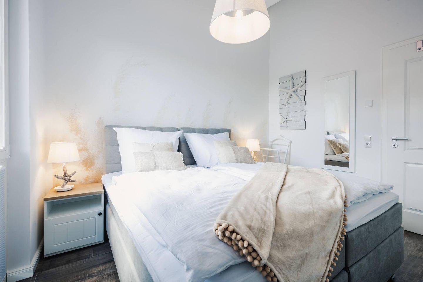 Die Wohnung verfügt über einen großzügigen Wohnbereich mit offener voll ausgestatteter Küche mit Spülmaschine, Mikrowelle, Ceranfeld und Kaffeemaschine. In zwei modern eingerichteten Schlafzimmern finden Sie bequeme Boxspringbetten (180 x 200 cm) und je ein Smart-TV.