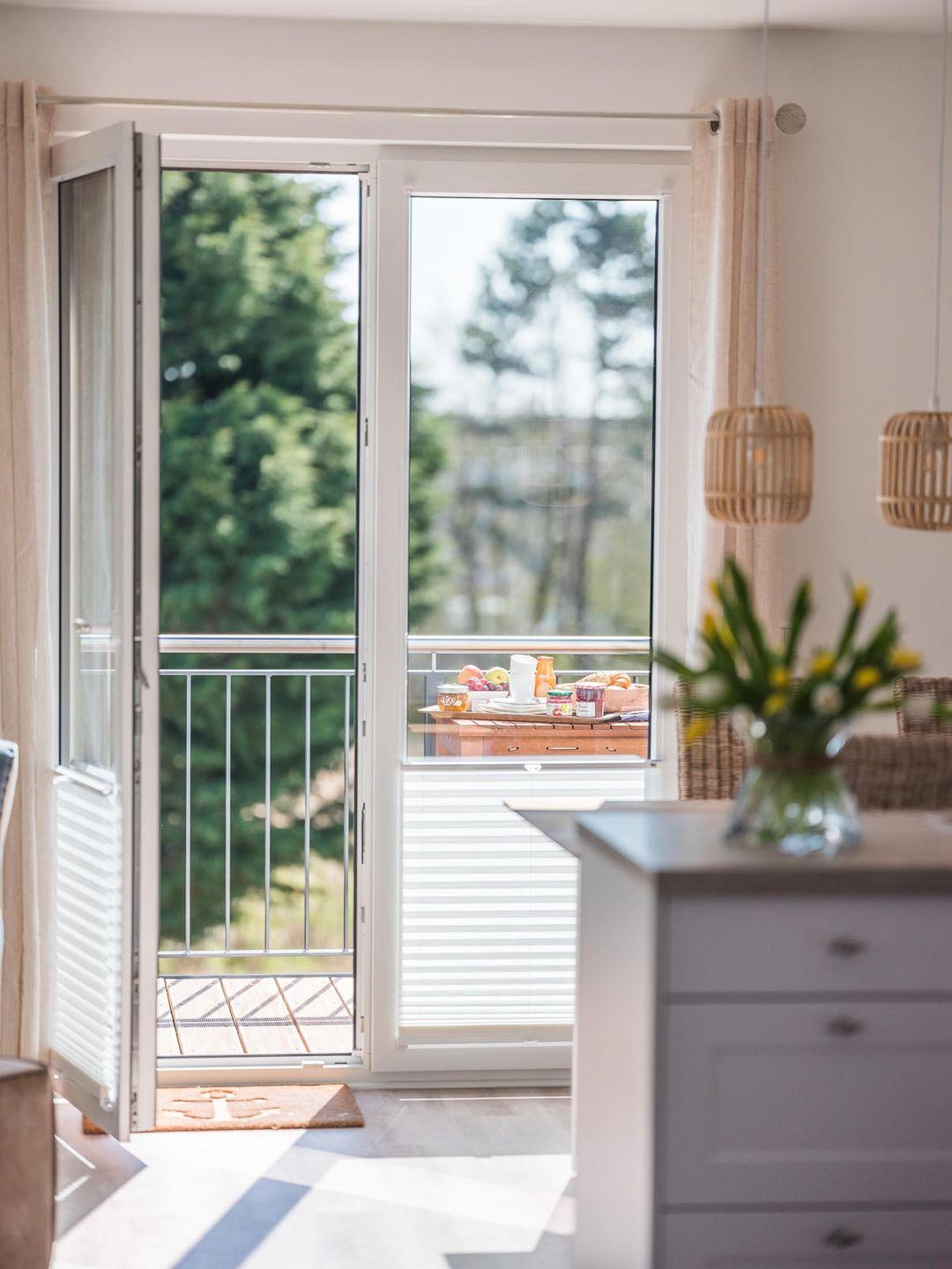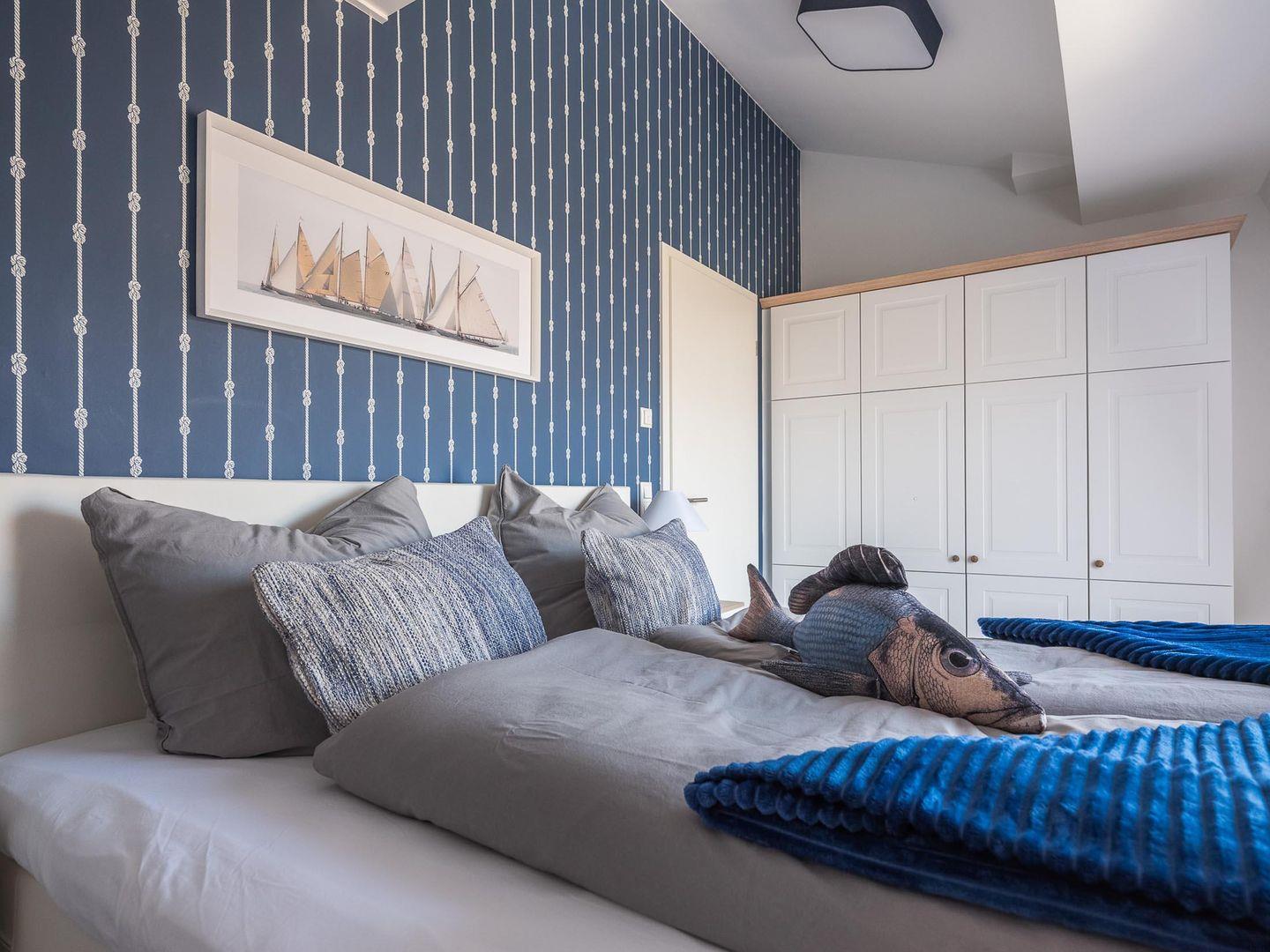Die bodentiefen Fenster lassen den maritimen und zugleich eleganten Charme des lichtdurchfluteten Penthouses besonders zur Geltung kommen.