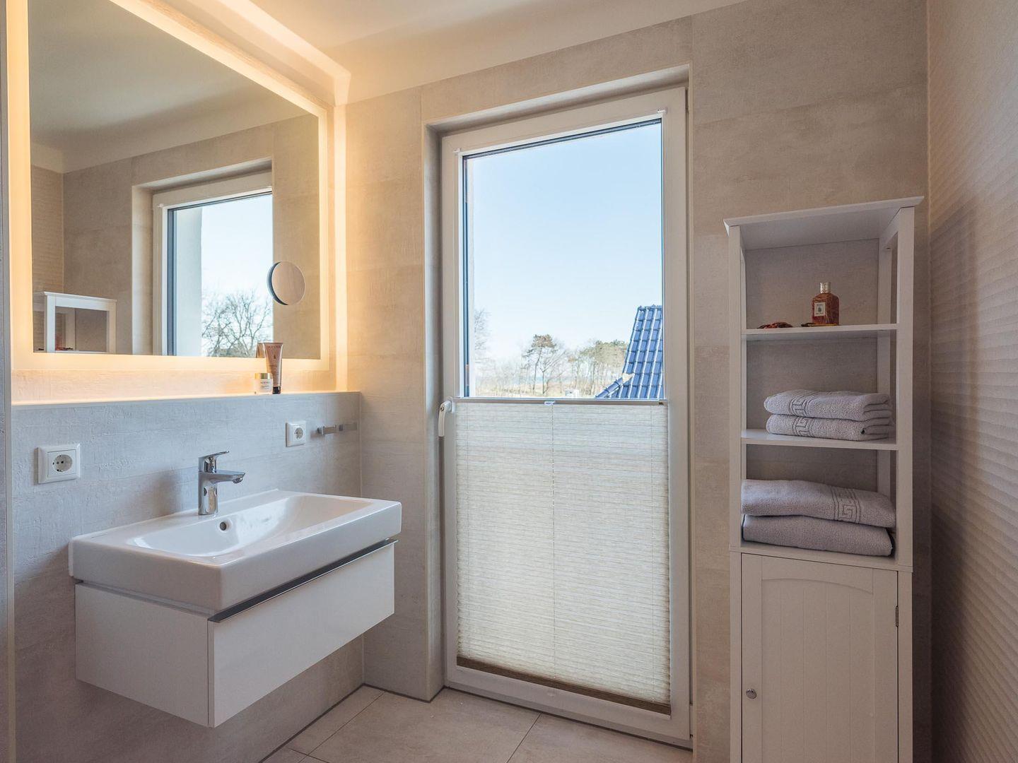 Das modern eingerichtete Badezimmer ist mit einer hochwertigen Dusche ausgestattet. Ein zweites kleines Badezimmer ist ebenfalls vorhanden.