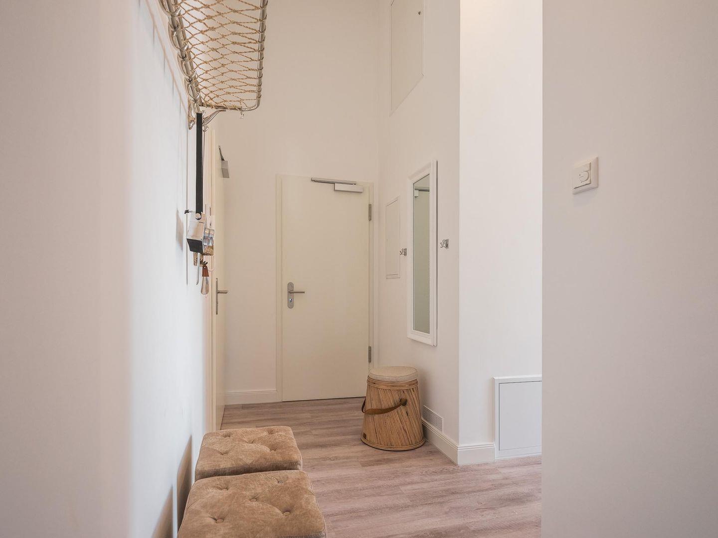 Zum Penthouse gehört ein Tiefgaragen-Stellplatz (Einfahrtshöhe 1,95m) sowie ein Aufzug welcher Sie direkt zur Wohnung führt. Kostenfreies W-LAN sowie ein abschließbarer Fahrradraum steht den Gästen ebenfalls zur Verfügung.