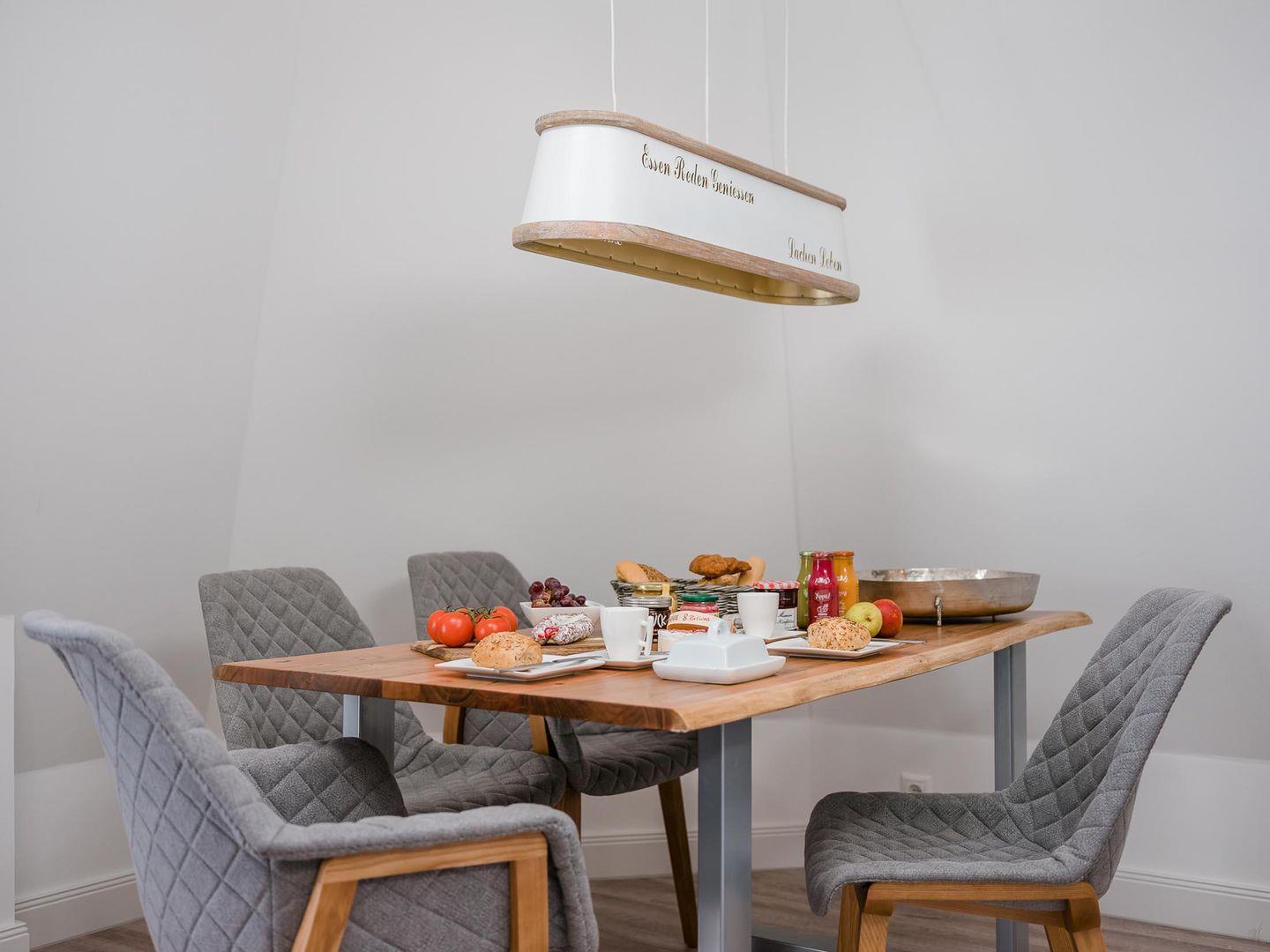 Das Penthouse verfügt über einen wunderschönen Wohnbereich mit einer offenen Küche und gemütlichem Essbereich. Die Küche ist hochwertig ausgestattet und lässt keine Wünsche offen.