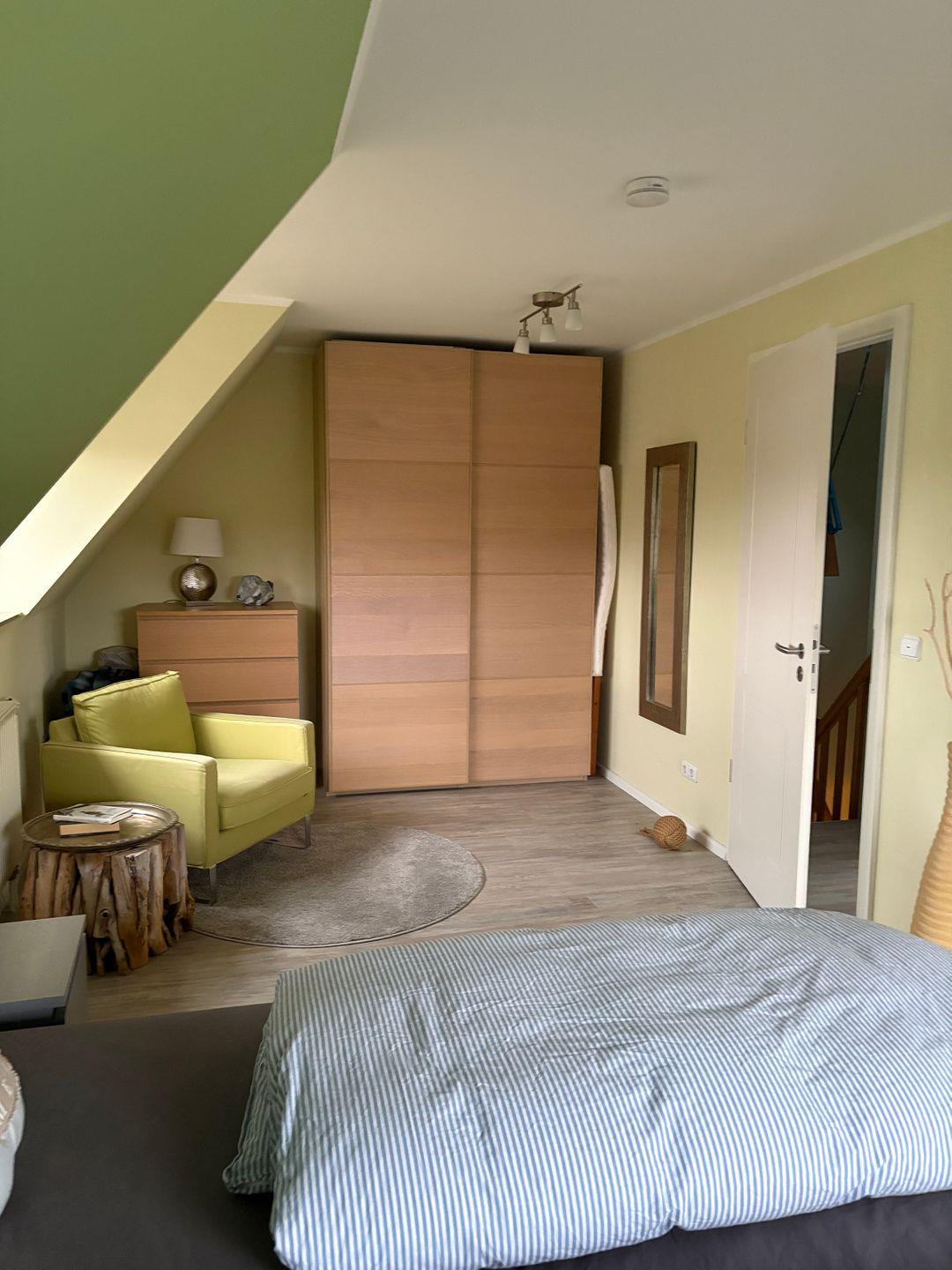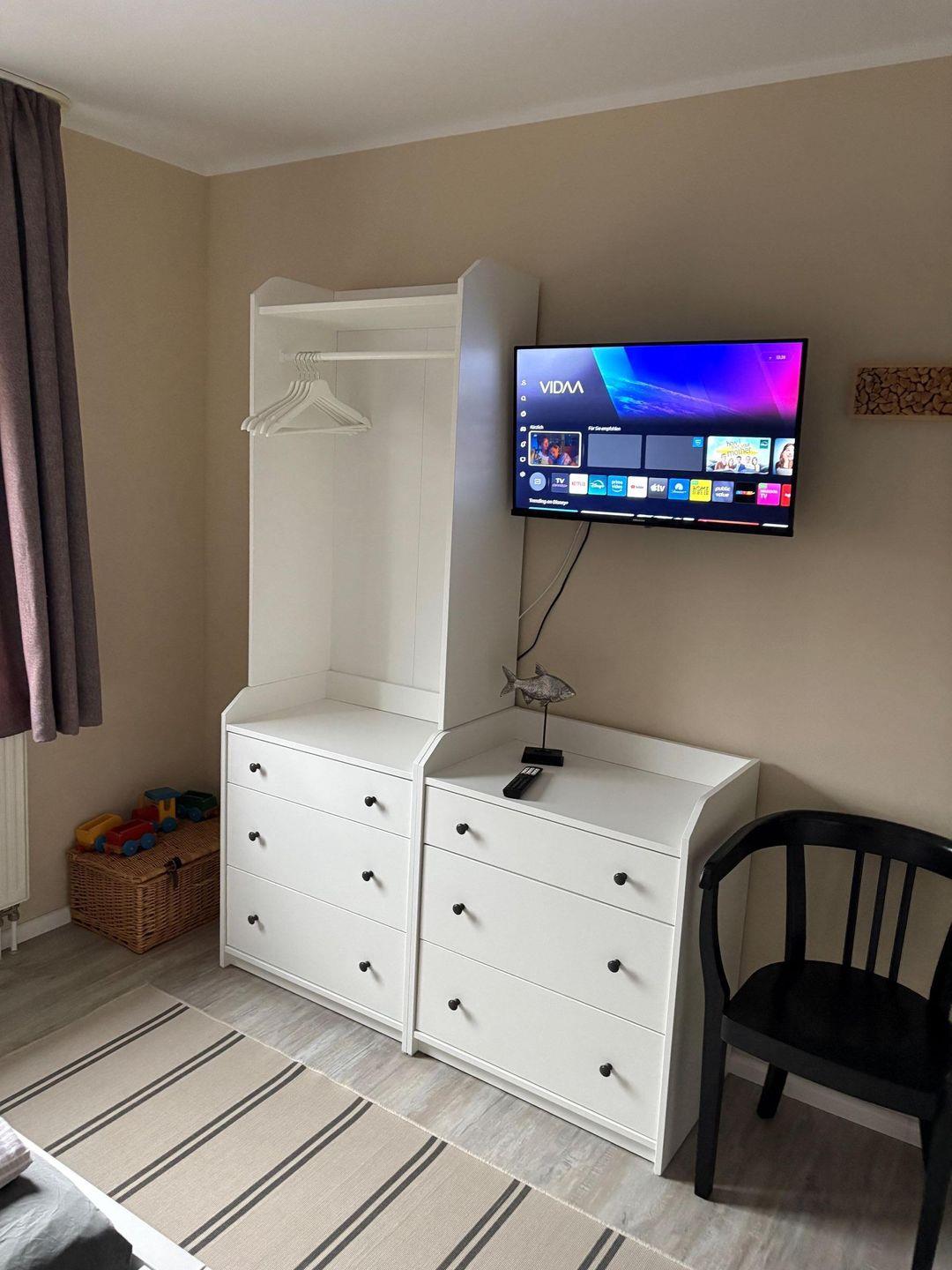 Das Haus verfügt über insgesamt drei Zimmer, darunter zwei separate Schlafzimmer. Damit finden sowohl Erwachsene als auch Kinder oder Babys ausreichend Platz. Für die jüngsten Gäste stehen ein Babybett und ein Kinderhochstuhl bereit, sodass auch Familien mit Kleinkindern gut aufgehoben sind. Im behaglichen Wohnzimmer sorgt die offen gestaltete Küche – ausgestattet mit modernen Geräten wie Induktionsherd, Backofen, Mikrowelle, Kühlschrank mit Gefrierfach, Spülmaschine, Senseo-Espressomaschine, klassischer Kaffeemaschine, Toaster und Wasserkocher – für ein angenehmes Ambiente und maximale Flexibilität bei der Selbstverpflegung.