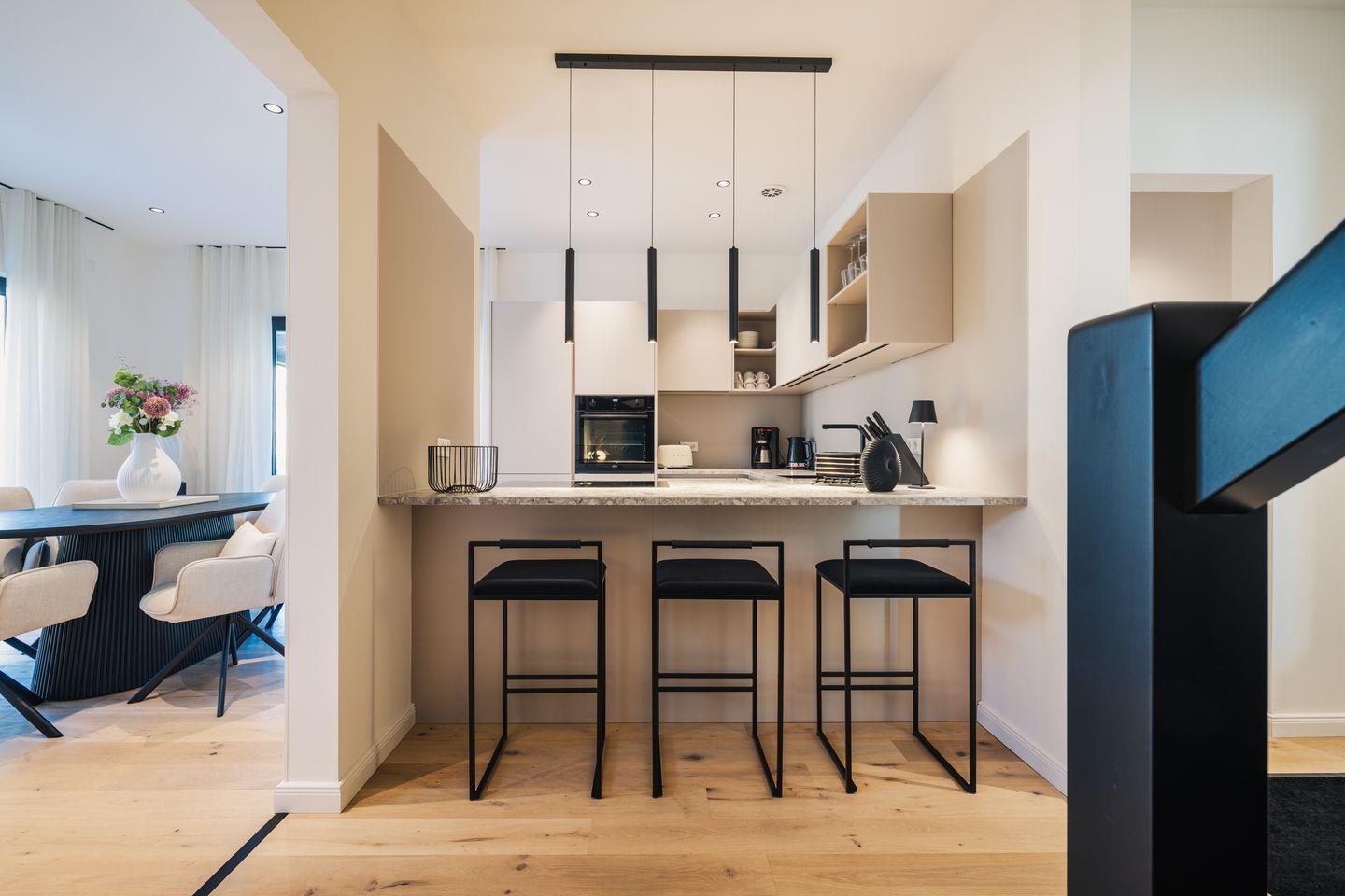 Wohnküche mit Induktionsherd und großzügigem Essbereich ist voll ausgestattet