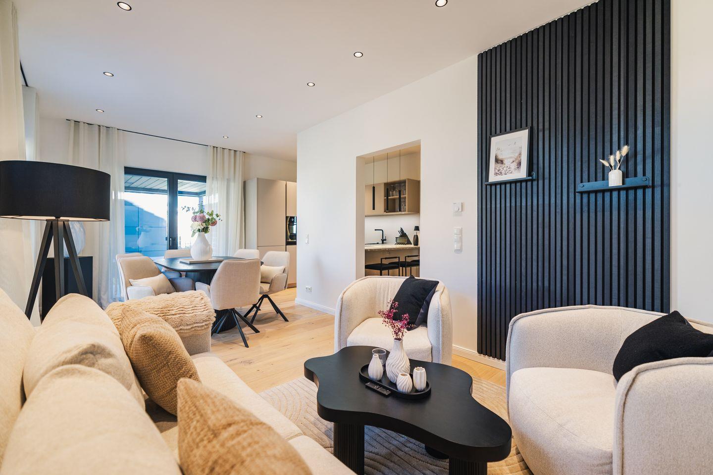 Erleben Sie im „Strandgeflüster Deluxe“ eine perfekte Symbiose aus puristischem Design, edlen Materialien und stilvoller Eleganz für Ihren High-End-Urlaub an der Ostsee.