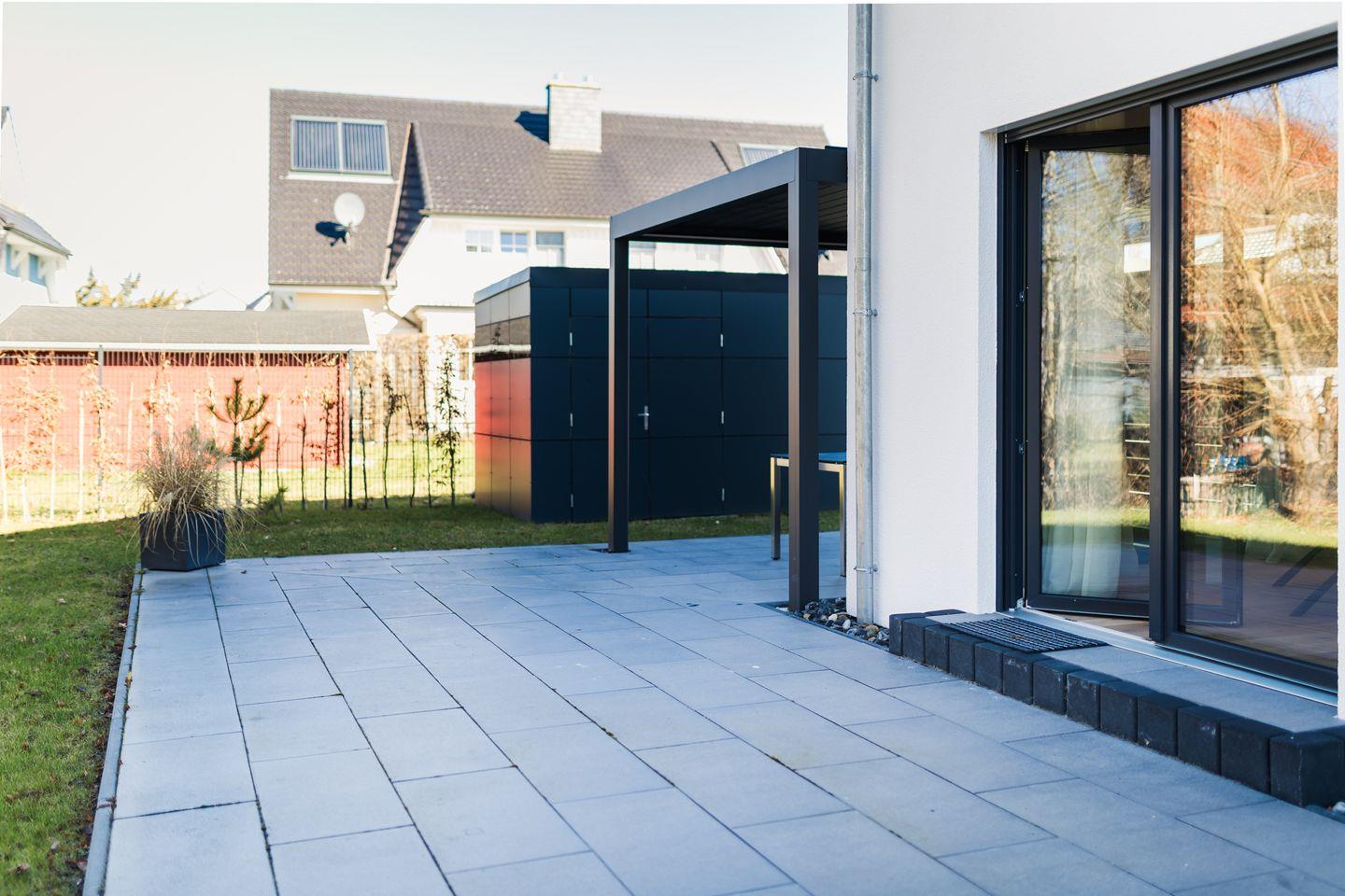 Terrasse schützt vor Wind und Wetter, während die offene Terrasse zum