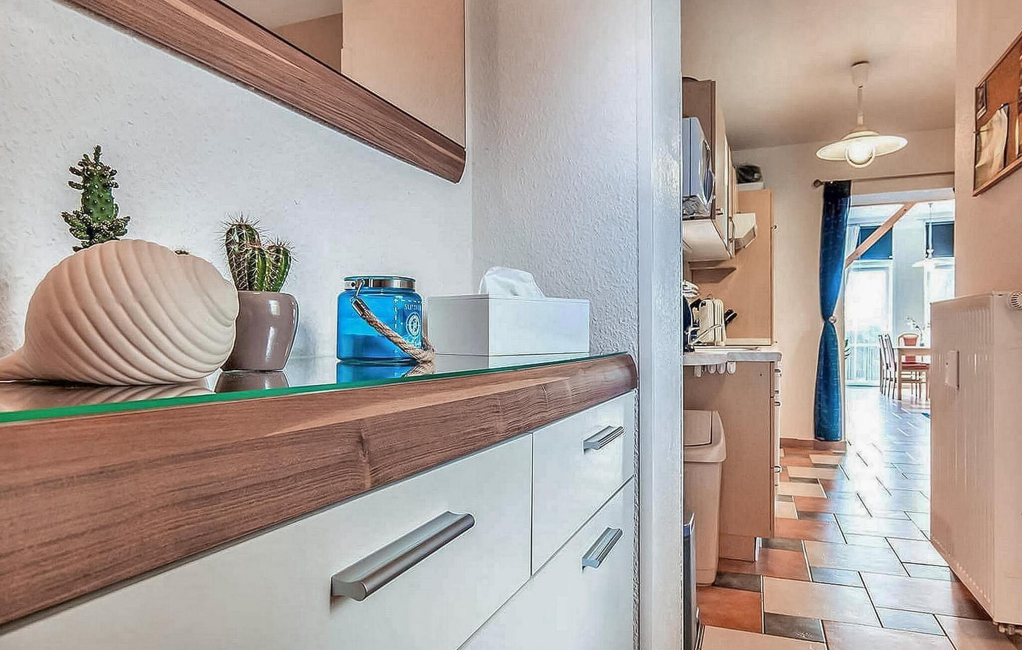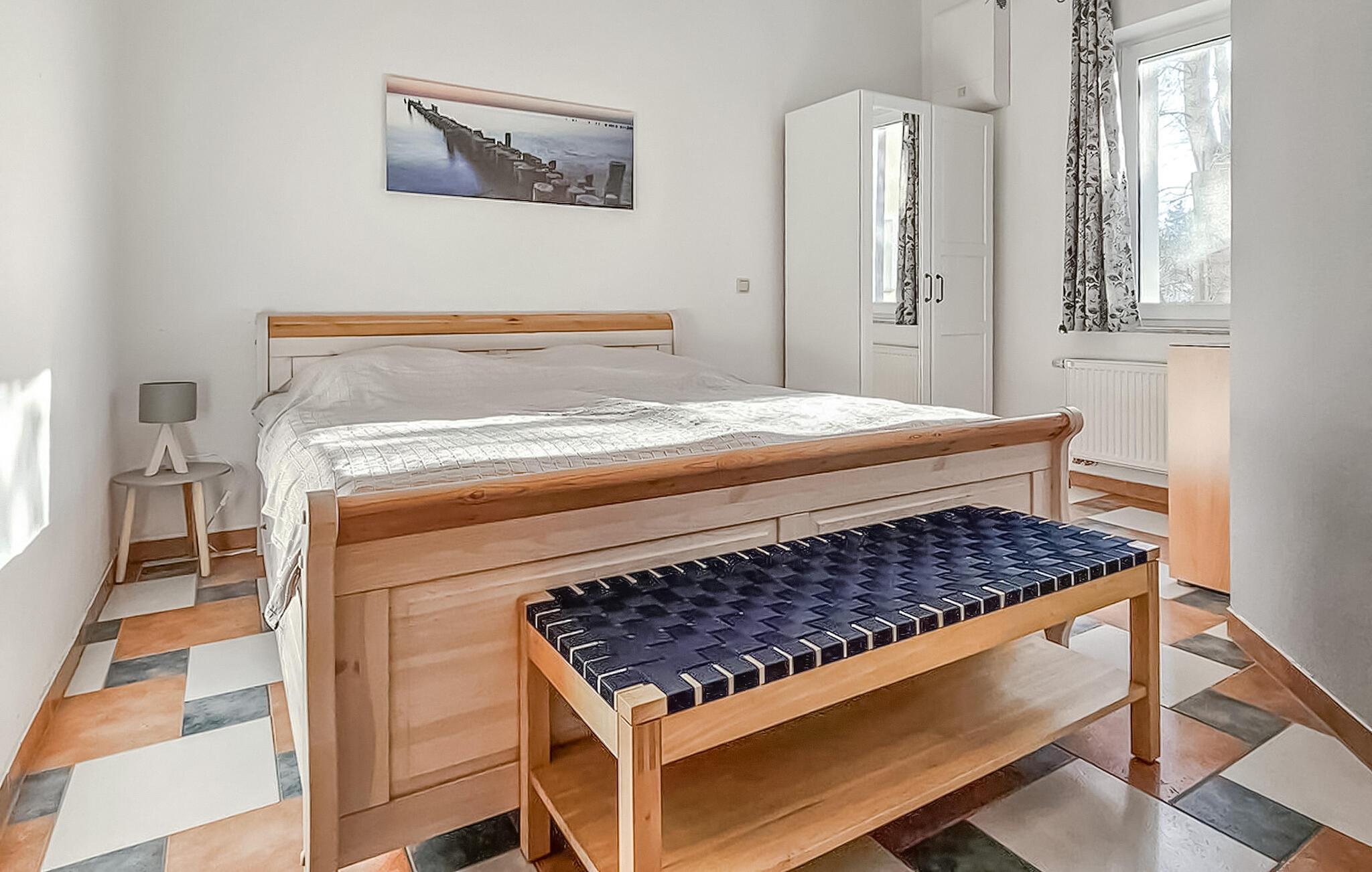 Ferielejligheden, der blev moderniseret i 2015, ligger i stueetagen af en ferievilla i lokal beliggenhed, ca 700 m fra Østersøstranden.Den er udstyret med stue (dobbelt sovesofa, polstrede møbler, spiseplads, fladskærms-tv, radio/CD, DVD), soveværelse (dobbeltseng), tekøkken (elkomfur med ovn, køleskab med fryser, opvaskemaskine, mikroovn, diverse køkkenmaskiner) og badeværelse med bruser/toilet . Lejligheden er centralt opvarmet. Der er en komfortabel siddeplads og grillplads, Wi-Fi, møbleret terrasse, parkeringsplads og et cykelrum til rådighed. To cykler kan også benyttes gratis. Til små børn kan barneseng, højstol og håndkærre stilles til rådighed efter forespørgsel.Den samlede pris inkluderer vand- og energiforbrug samt slutrengøring. Sengelinned og håndklæder kan medbringes eller lejes som en samlet linnedpakke. Zinnowitz er underlagt turistskat. Østersøferiestedet Zinnowitz med en bred sandstrand er en af de smukkeste badebyer på øen Usedom. Talrige restauranter, indkøbsmuligheder, surf- og sejlerskole samt tennisbaner og swimmingpool muliggør en afvekslende ferie. Spa-programmer finder sted om sommeren. Stedet har en mole med dykkerklokke og cykelstier.