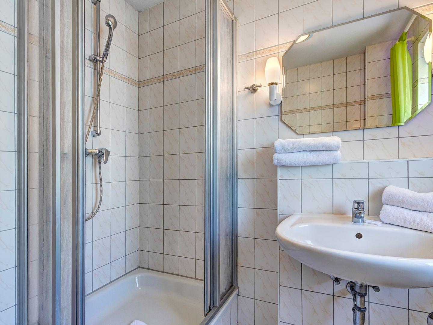 Das Schlafzimmer mit komfortablem Doppelbett lädt zu erholsamen Nächten ein, während das moderne Tageslichtbad mit Dusche für einen angenehmen Start in den Tag sorgt.