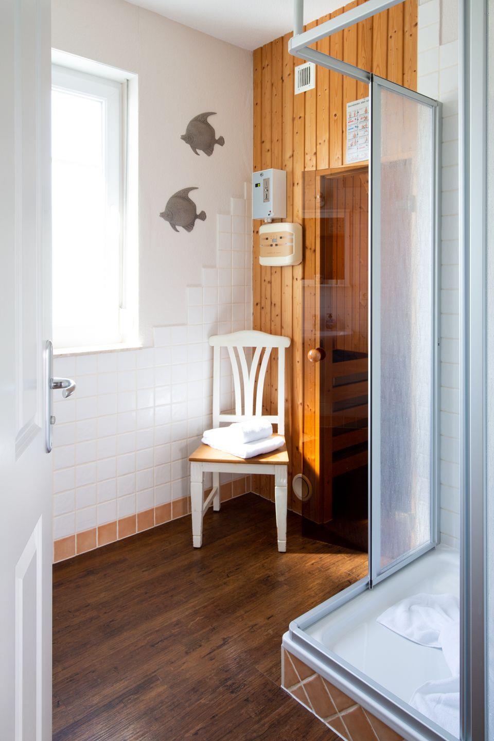 An warmen Sommerabenden lädt die überdachte Terrasse mit Terrassenkamin zum Verweilen ein. Ein besonderes Highlight ist die hauseigene Sauna, die gegen eine geringe Gebühr genutzt werden kann (Münzapparat).