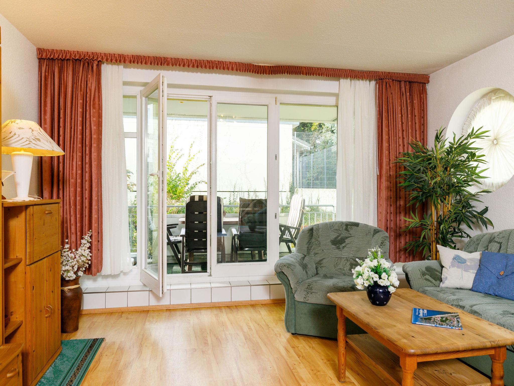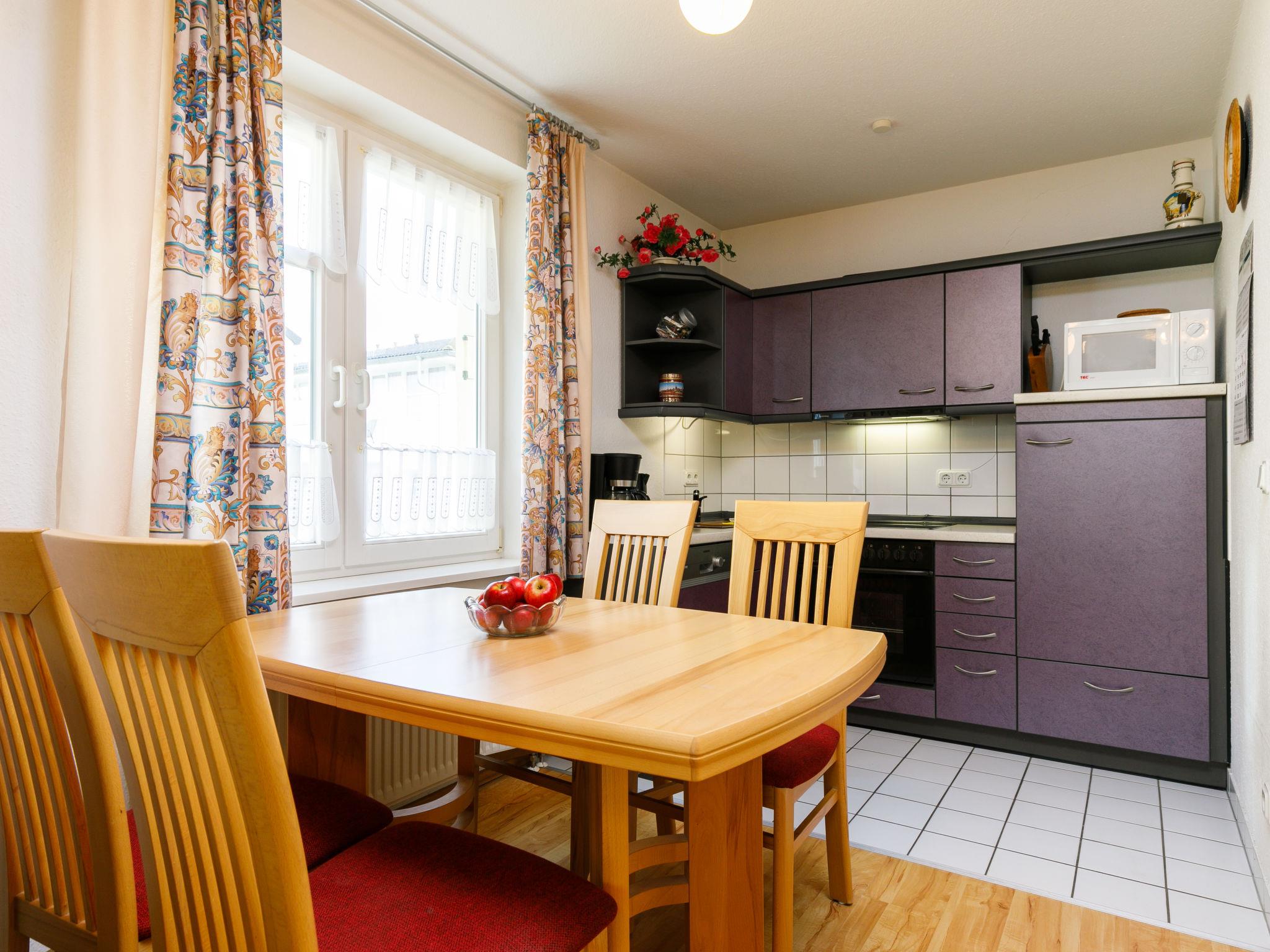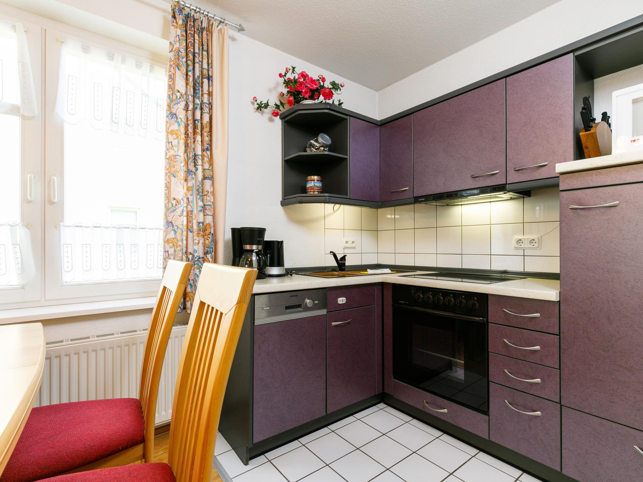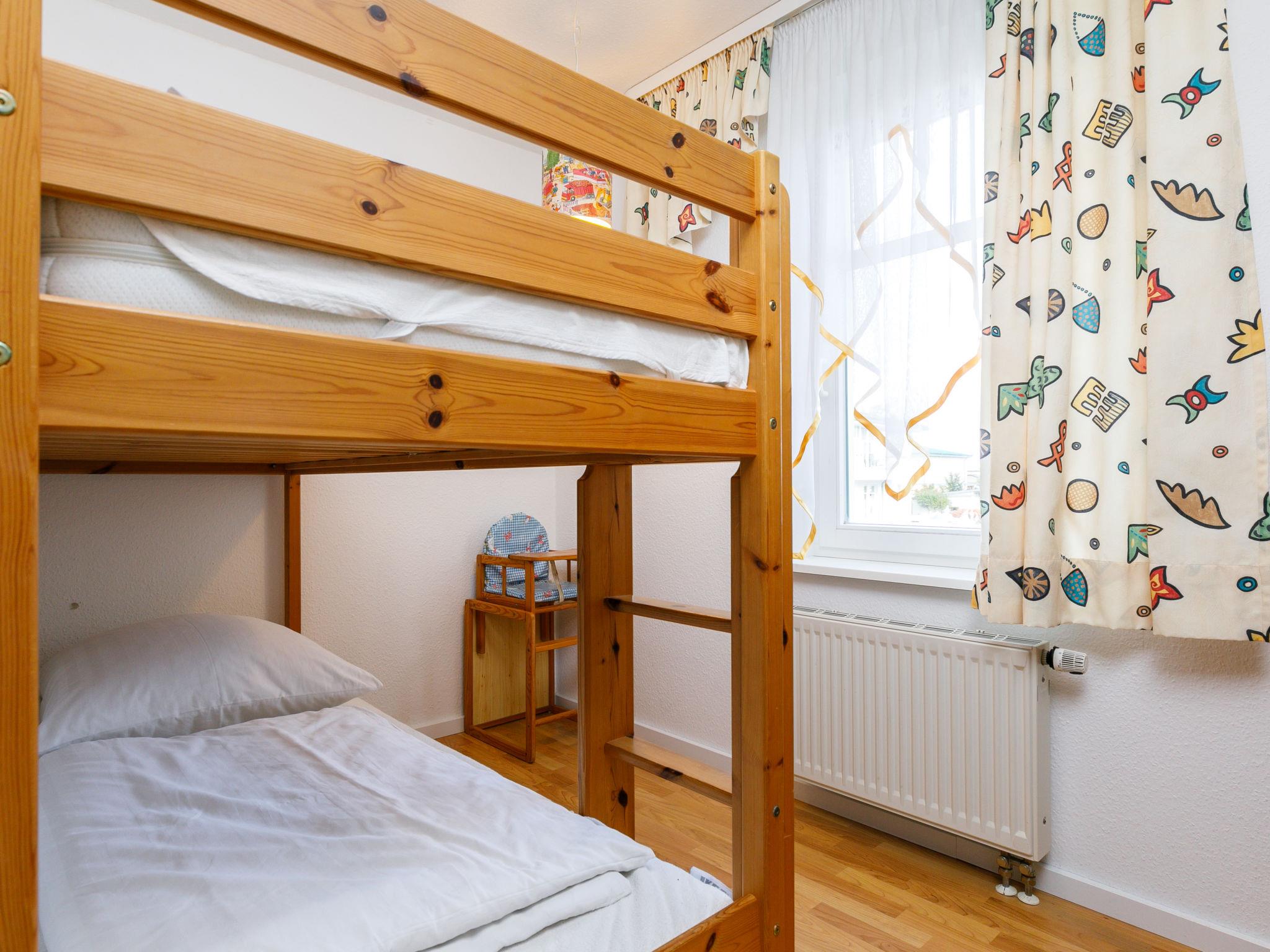 "Dünenresidenz 6", 3-room apartment 65 m2 on 1st floor. Beautiful and cosy furnishings: living/dining room with cable TV (flat screen), radio. Exit to the balcony. 1 room with 1 double bed. 1 room with 1 x 2 bunk beds. Kitchenette (oven, dishwasher, 4 ceramic glass hob hotplates, toaster, kettle, microwave, electric coffee machine). Shower/WC. Balcony. Balcony furniture. Facilities: washing machine, children's high chair, baby cot. Please note: non-smokers only. Smoke alarm.
