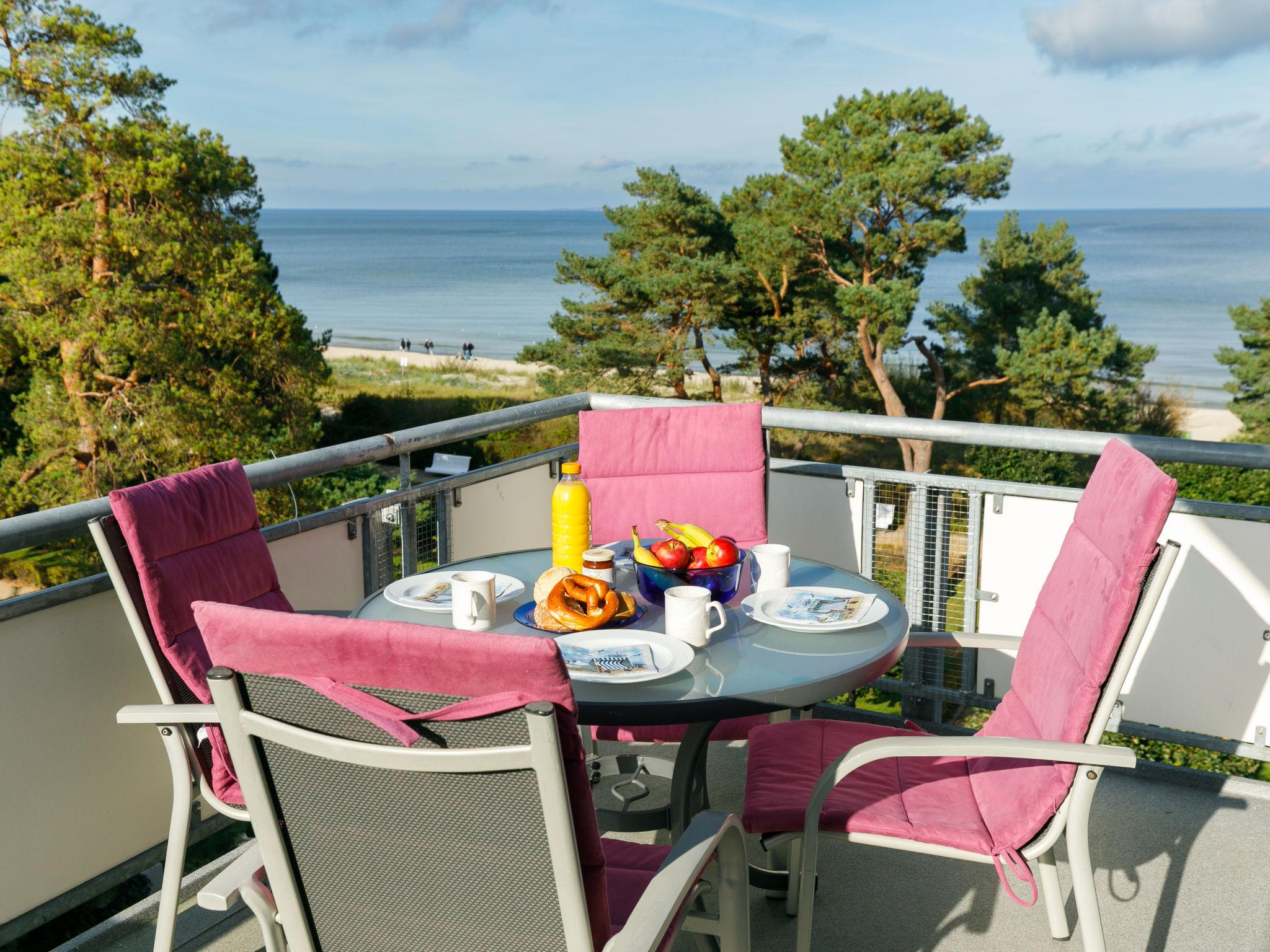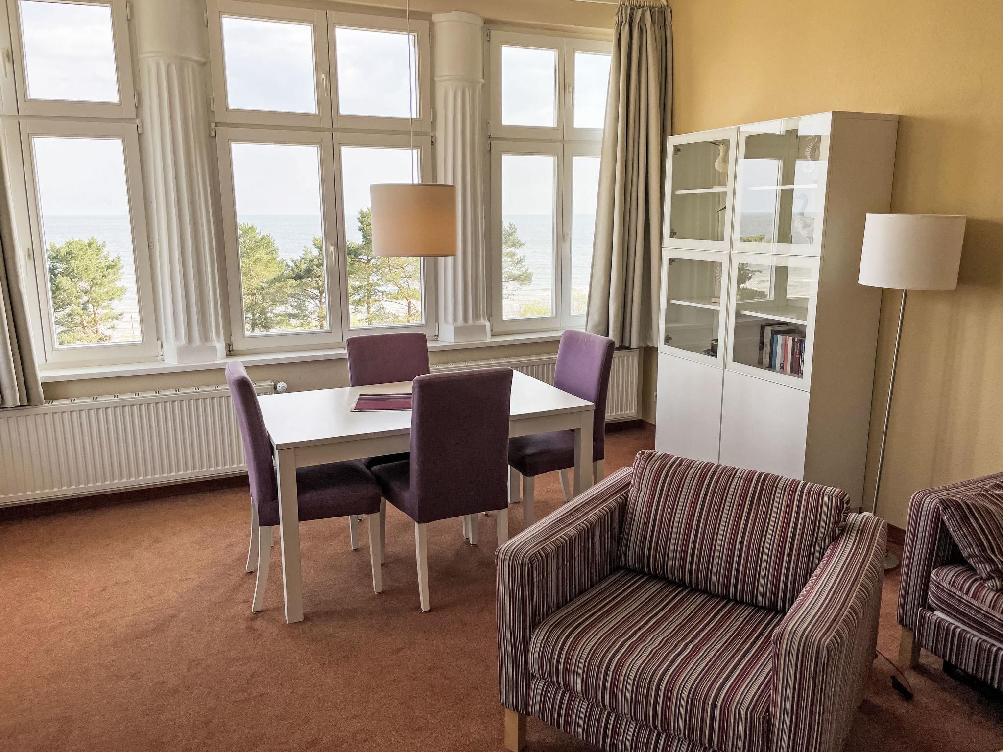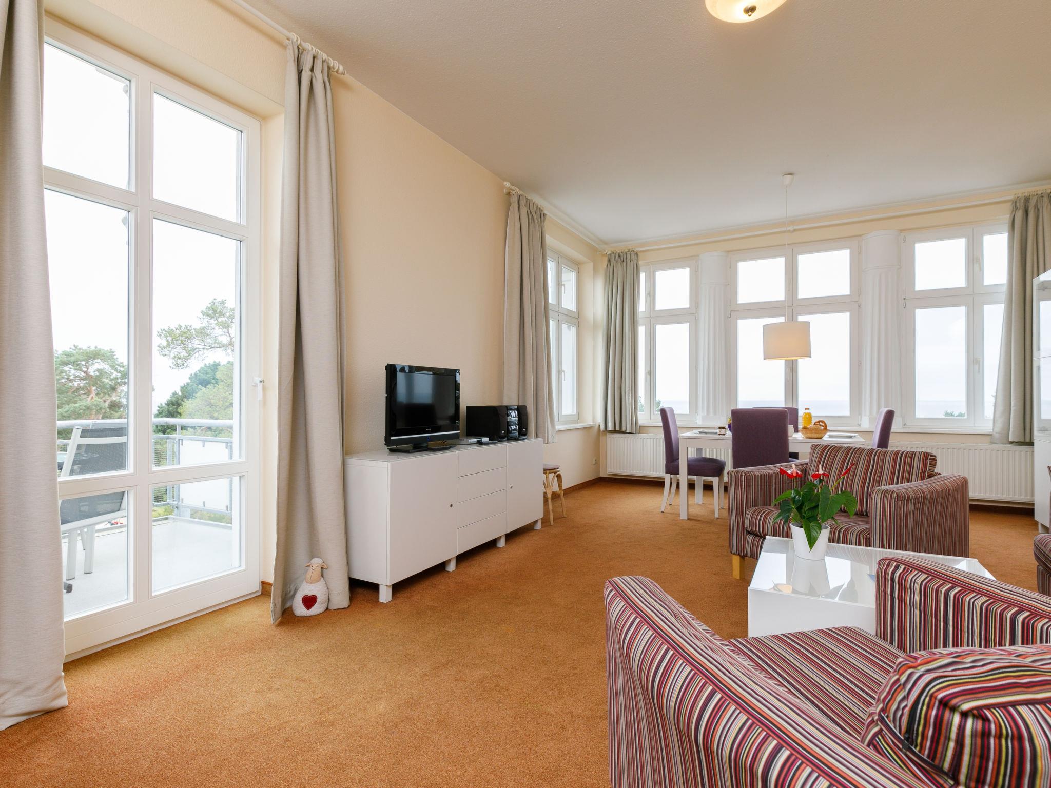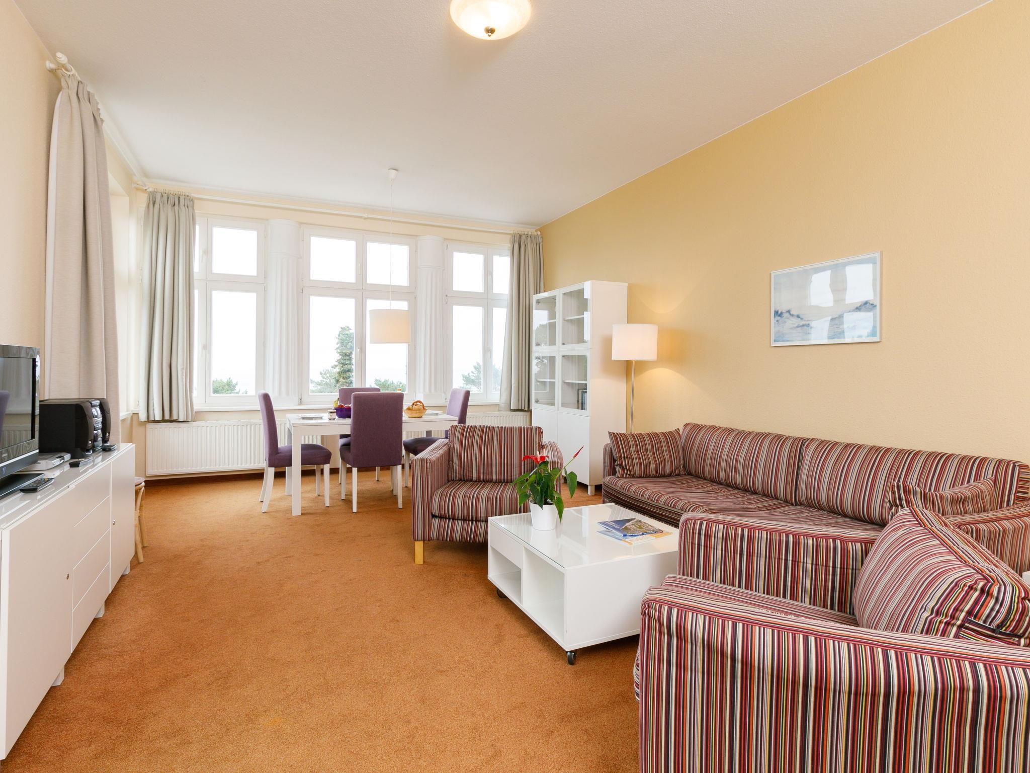 "App.13 Zinnowitzer Hof", 2-room apartment 63 m2 on 3rd floor. Beautiful and cosy furnishings: living/dining room with 1 sofabed and cable TV (flat screen). Exit to the balcony. 1 room with 1 double bed. Kitchenette (4 hot plates, oven, dishwasher, toaster, kettle, microwave, electric coffee machine). Bath/WC. Balcony. Balcony furniture. Beautiful view of the sea. Facilities: children's high chair, baby cot, hair dryer. Parking (extra, 1 car). Please note: non-smokers only. Smoke alarm.