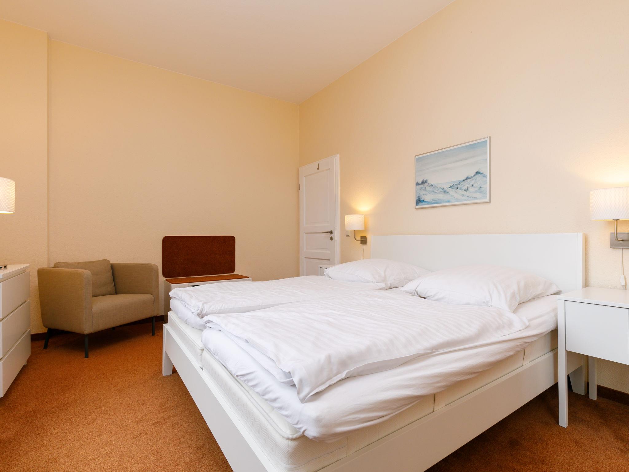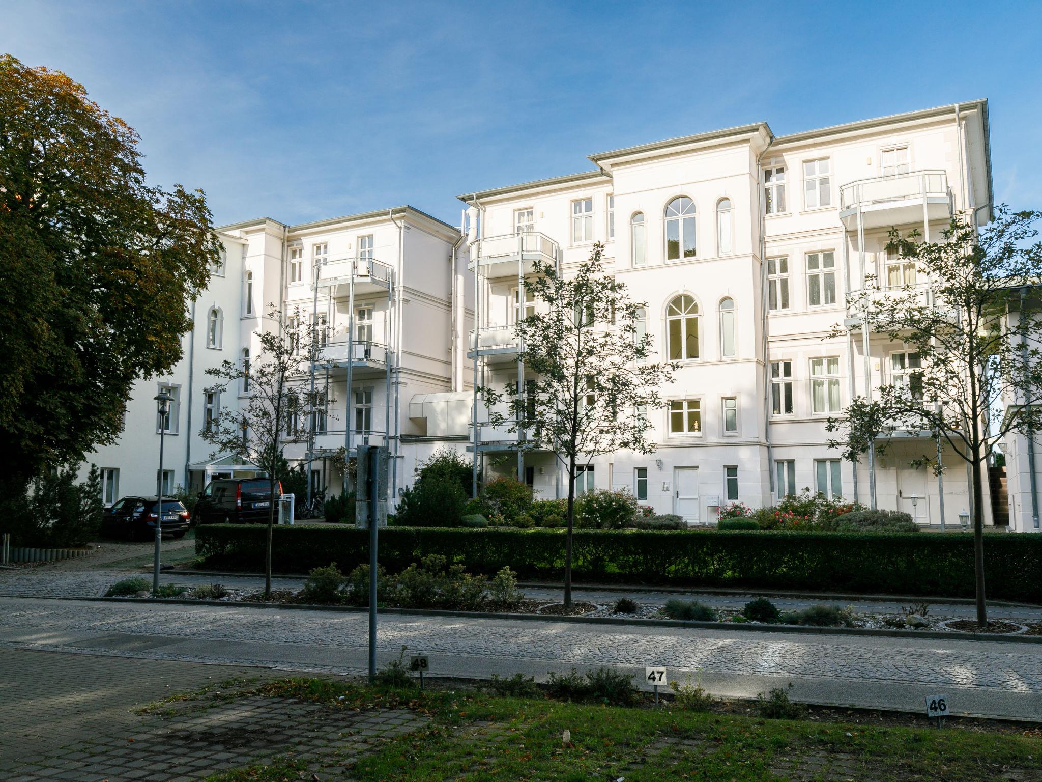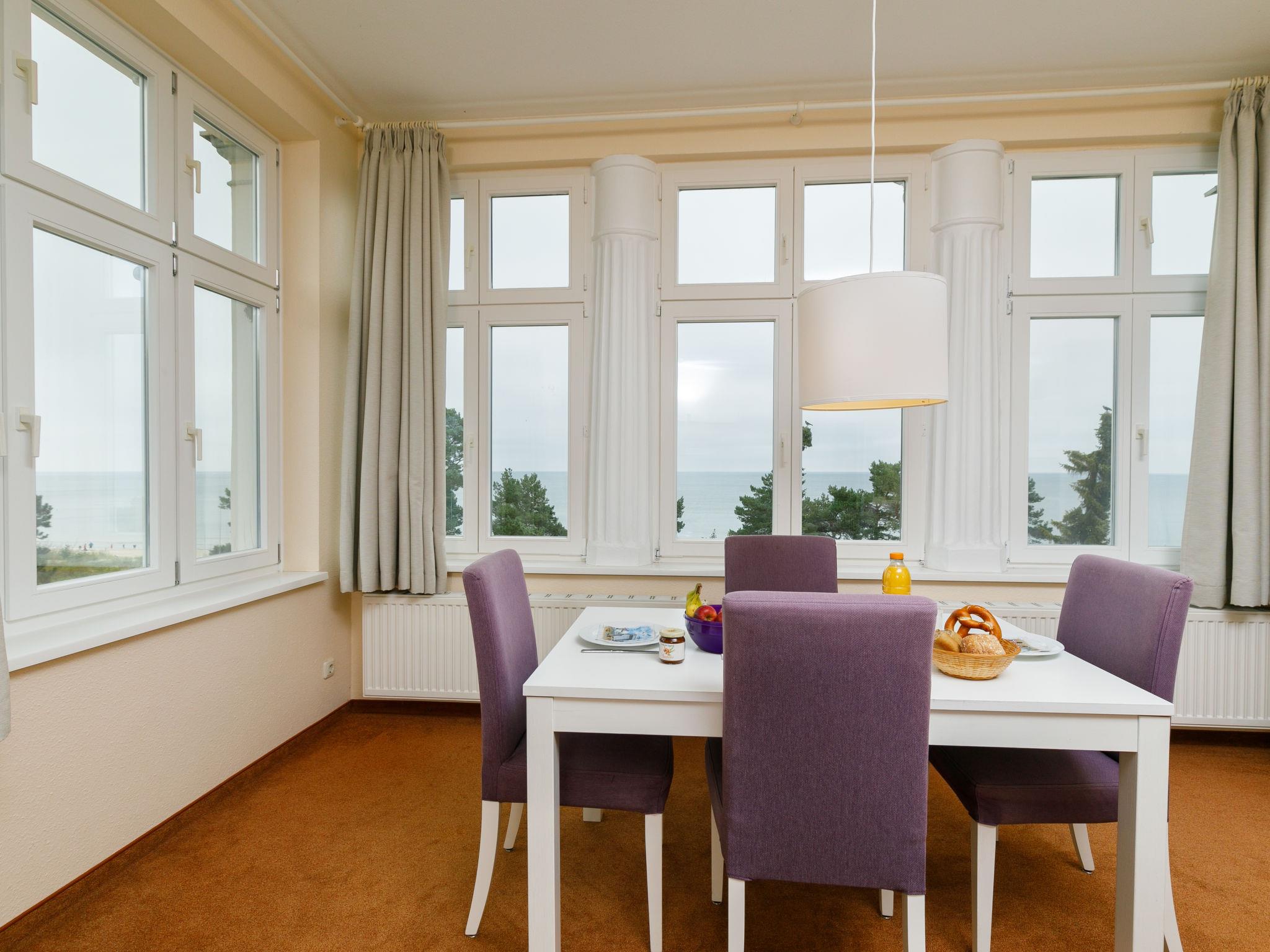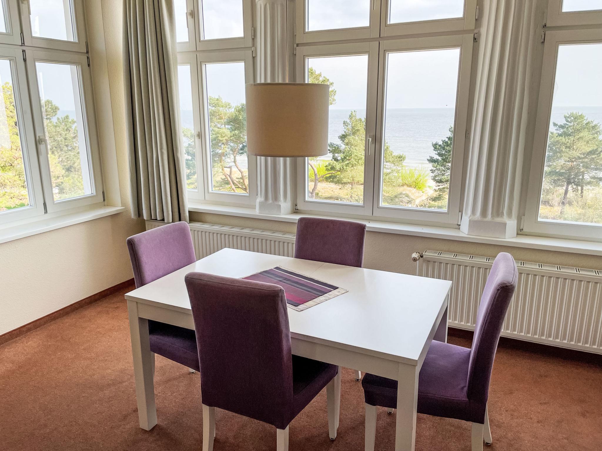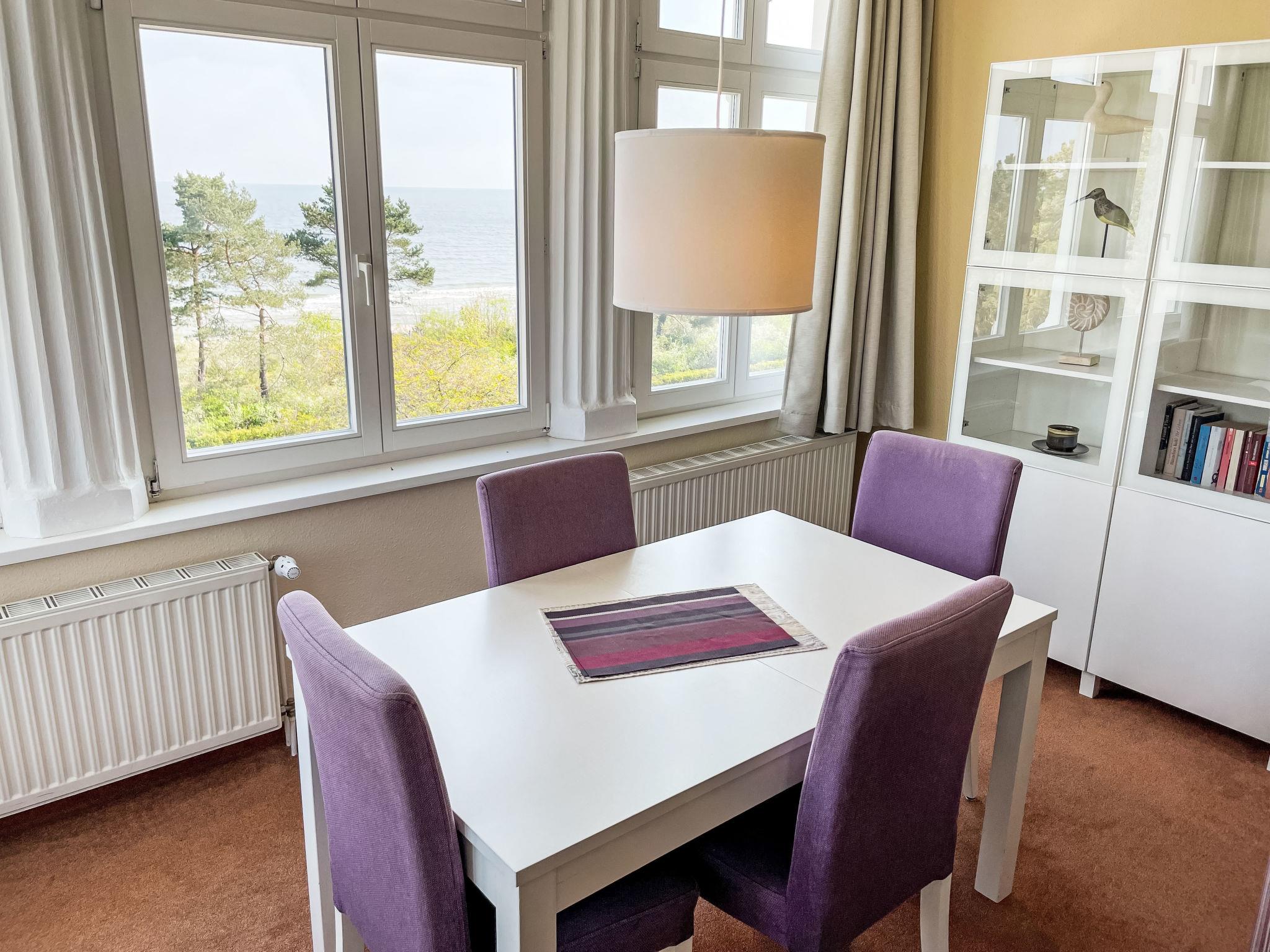 "App.13 Zinnowitzer Hof", 2-room apartment 63 m2 on 3rd floor. Beautiful and cosy furnishings: living/dining room with 1 sofabed and cable TV (flat screen). Exit to the balcony. 1 room with 1 double bed. Kitchenette (4 hot plates, oven, dishwasher, toaster, kettle, microwave, electric coffee machine). Bath/WC. Balcony. Balcony furniture. Beautiful view of the sea. Facilities: children's high chair, baby cot, hair dryer. Parking (extra, 1 car). Please note: non-smokers only. Smoke alarm.