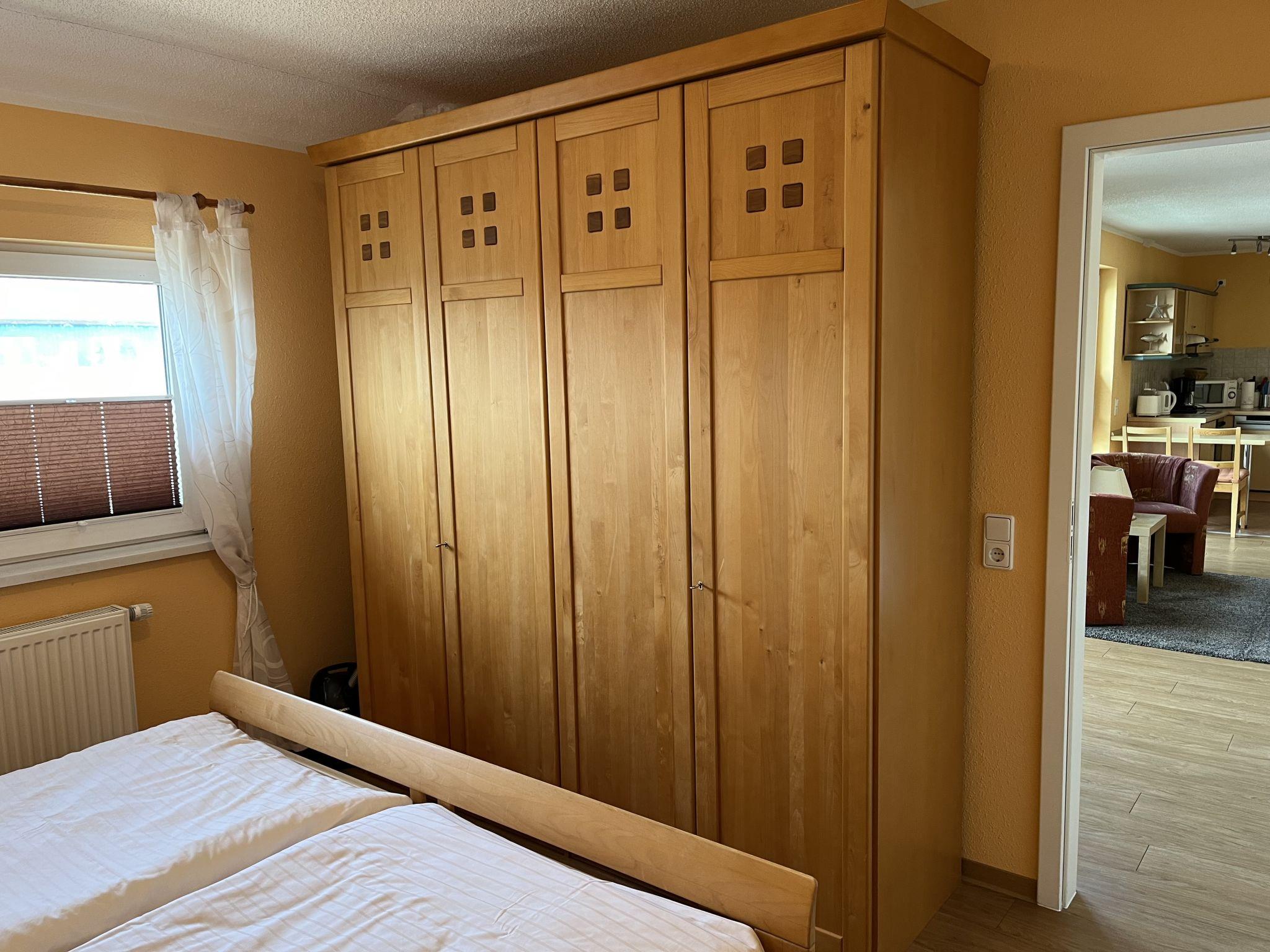 "Waterkant", 2-room apartment 57 m2 on 4th floor. Spacious and bright, cosy furnishings: living/dining room with 1 double sofabed (160 cm, length 200 cm), dining table and cable TV (flat screen), CD-player and hi-fi system. Exit to the balcony. 1 room with 1 double bed (180 cm, length 200 cm). Kitchenette (oven, dishwasher, 4 ceramic glass hob hotplates, toaster, kettle, microwave, electric coffee machine) with small dining table. Shower/WC. Heating. Large balcony 15 m2. Balcony furniture. View of the resort and the forest. Facilities: iron, baby cot for up to 3 year olds, hair dryer. Internet (WiFi). Parking space n 34 (1 car) at the house. Please note: smoke alarm.