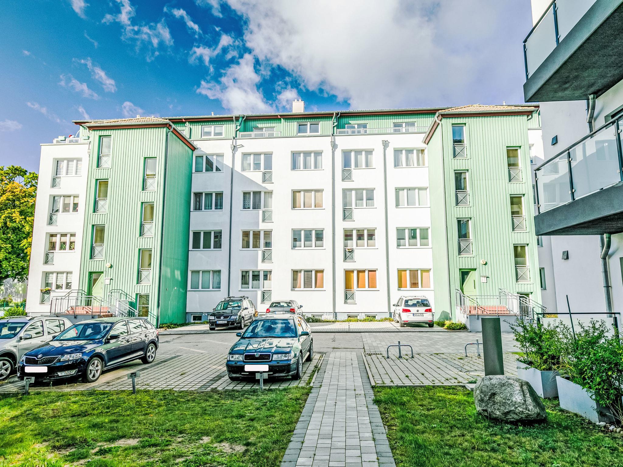 Apartment house, 4 storeys. In the resort 500 m from the centre of Zinnowitz, 100 m from the sea, from the beach. In the house: lift, storage room for bicycles, central heating system. Parking at the house. Supermarket 650 m, bakery 270 m, café 270 m, bus stop 110 m, railway station 1 km, sandy beach 100 m, thermal baths "Bernsteintherme" 240 m. Marina 2.6 km, golf course (18 hole) 25 km, surf school 240 m, tennis 750 m, minigolf. Please note: lift to 3rd floor.