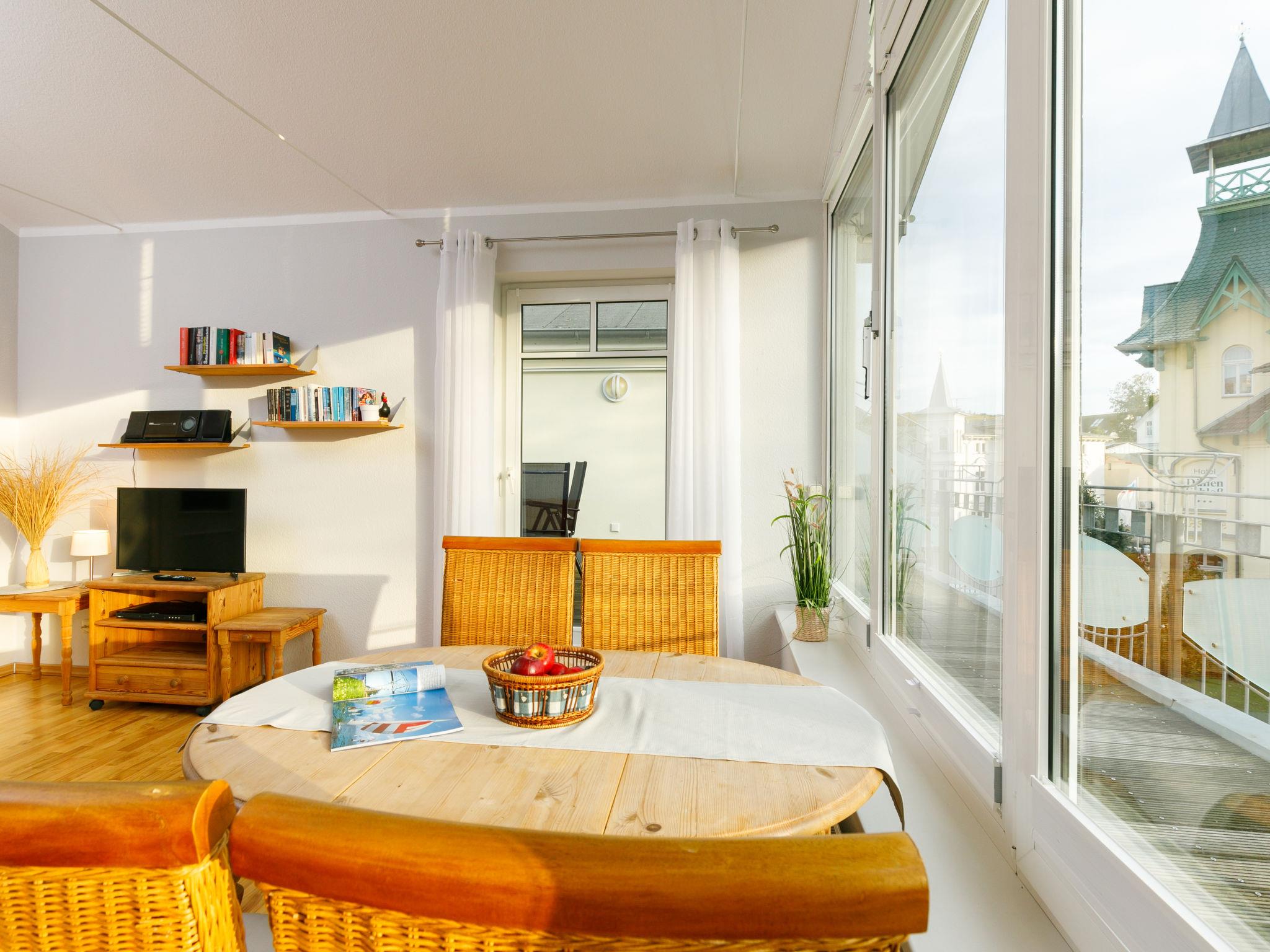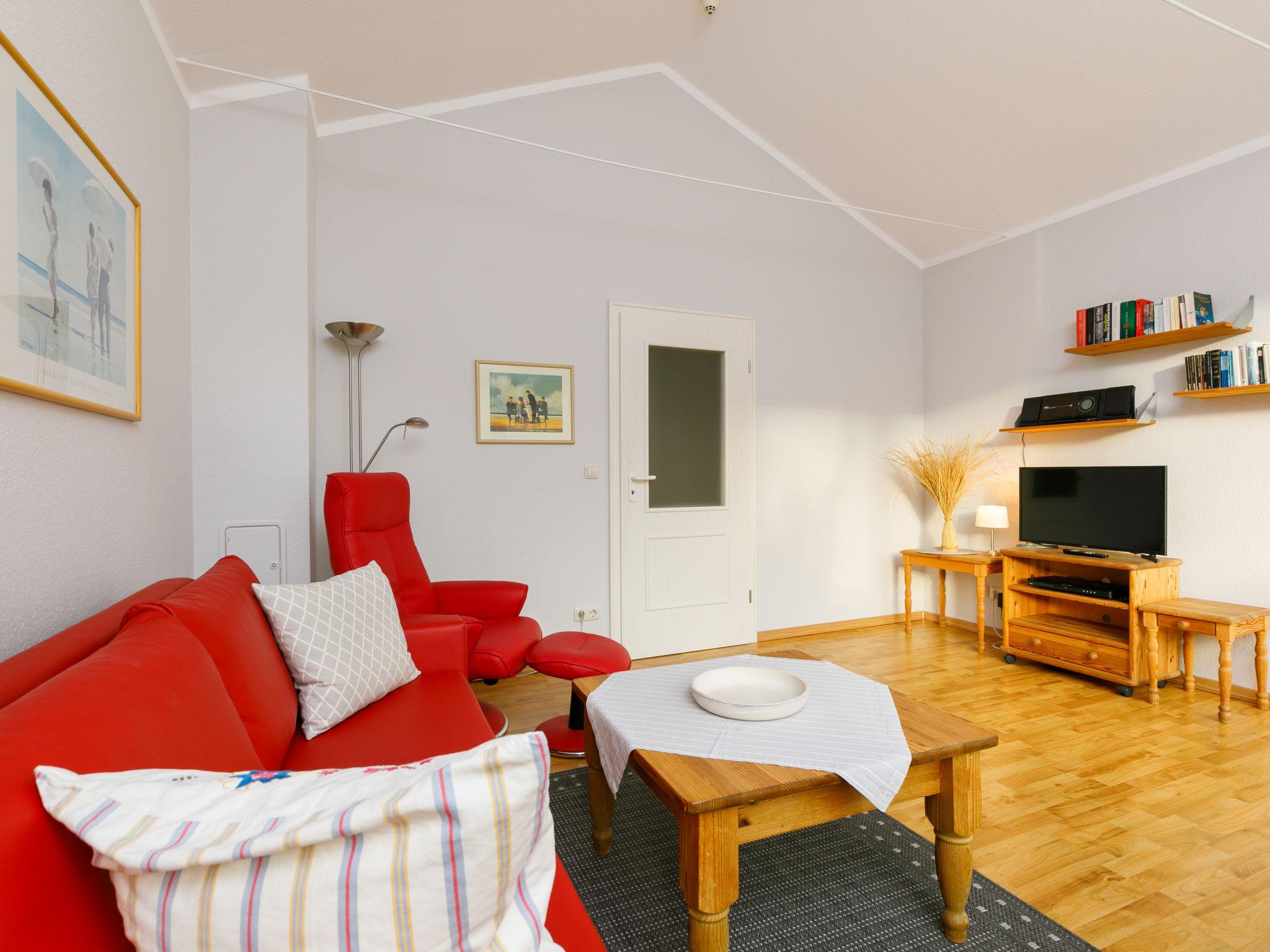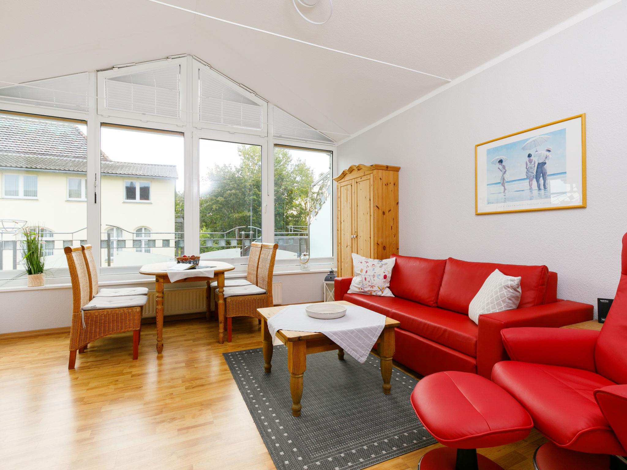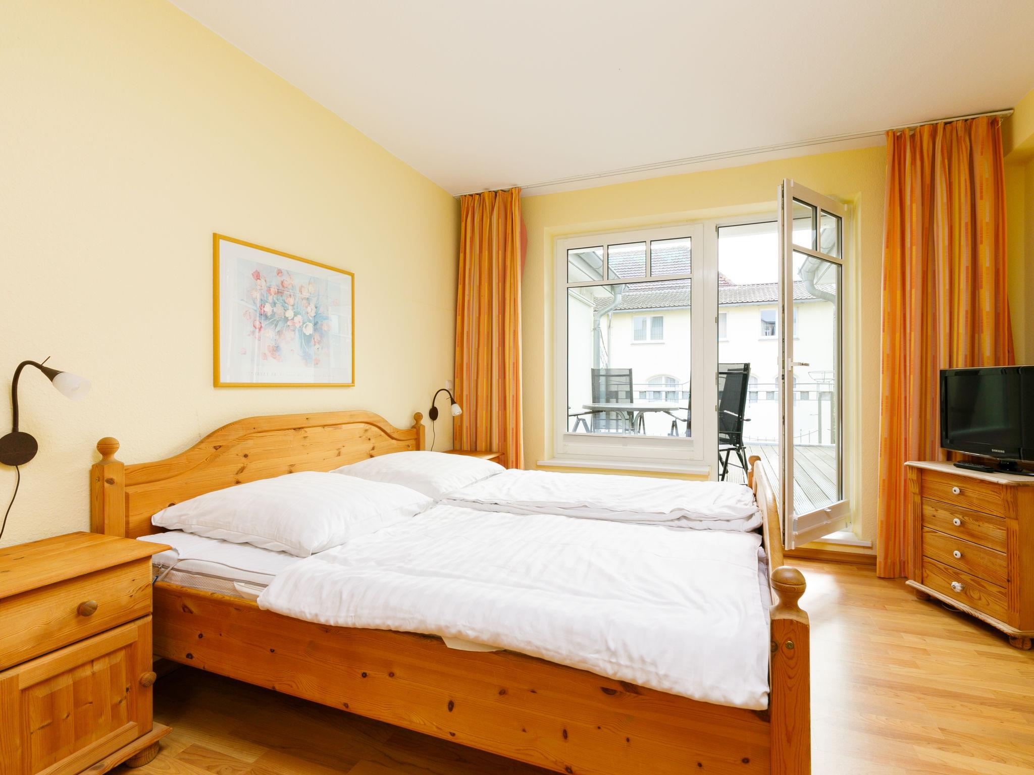 "Luise von Preußen (App. 205)", 2-room apartment 55 m2, on the top floor. Cosy furnishings: living/dining room with 1 double sofabed and cable TV (flat screen), radio and CD-player. Exit to the terrace. 1 room with 1 double bed and cable TV (flat screen). Exit to the terrace. Small kitchen (dishwasher, 2 ceramic glass hob hotplates, toaster, kettle, microwave, electric coffee machine). Bath/WC. Gas heating. Terrace. Terrace furniture. Facilities: children's high chair, baby cot, hair dryer. Internet (WiFi, free). Parking (1 car) at the house. Please note: non-smokers only. Smoke alarm.