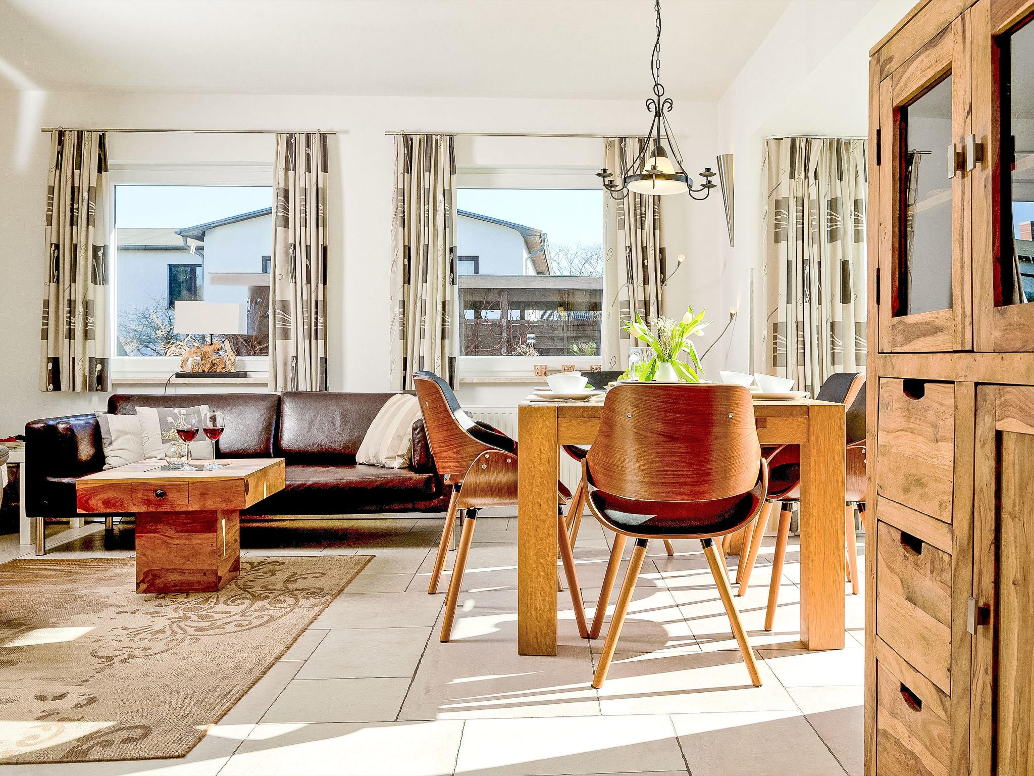 Zinnowitz: Modern semi-detached house "Fietje". In the resort 950 m from the centre of Zinnowitz, 900 m from the sea, 900 m from the beach. In the house: storage room for bicycles. Parking (for 2 cars) at the house. Grocery, supermarket 400 m, restaurant 350 m, bakery, café 400 m, bus stop 280 m, thermal baths "Bernsteintherme" 1 km. Tennis 1.5 km, minigolf 1.5 km.