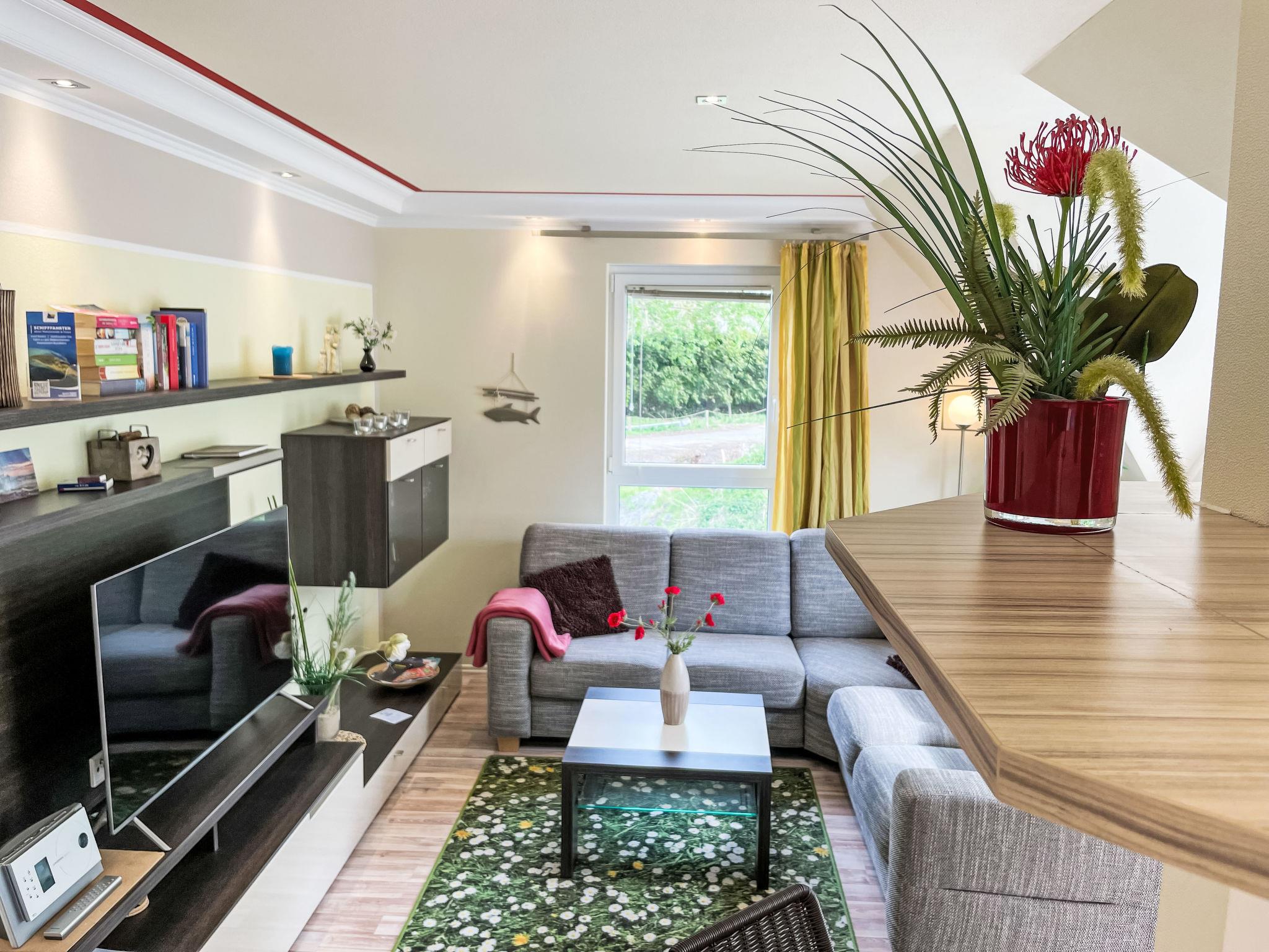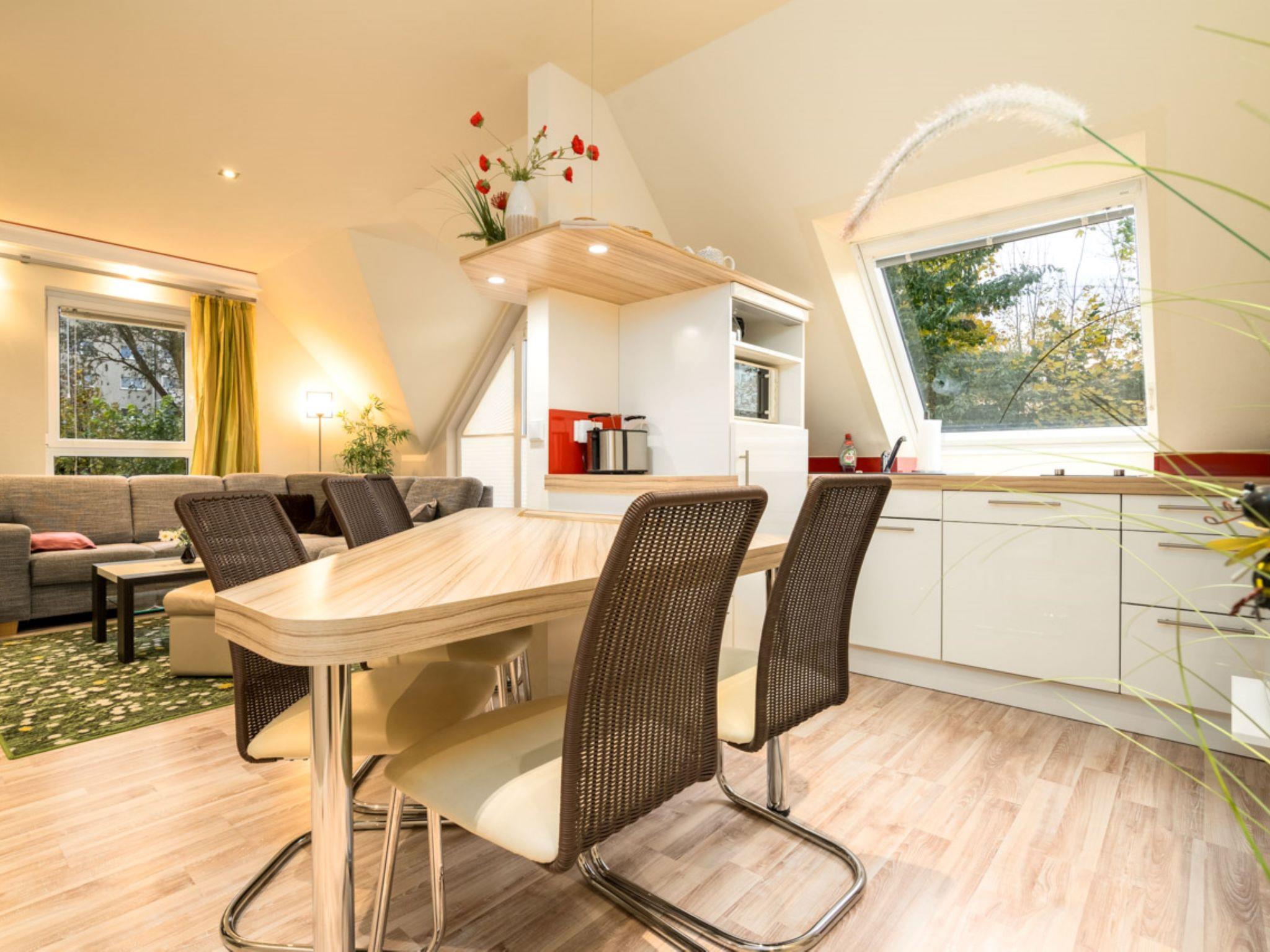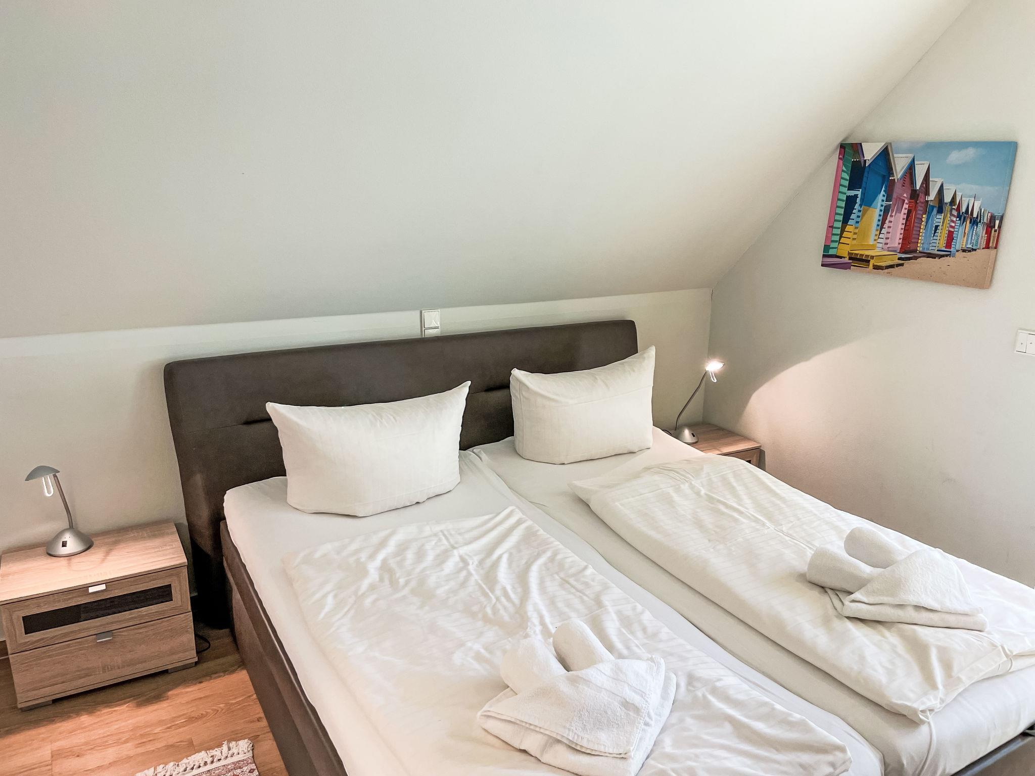 "Ludwig", 3-room apartment 86 m2 on 2 levels. With sloping ceilings, modern furnishings: living/dining room with satellite TV (flat screen), radio. Exit to the balcony. 1 room with 1 double bed (180 cm, length 200 cm). Open kitchen (2 hot plates, dishwasher, toaster, kettle, microwave, electric coffee machine). Shower/WC. Top floor: 1 room with 2 beds. Shower/WC. Balcony. Balcony furniture. Facilities: children's high chair, baby cot, hair dryer. Internet (WiFi, free). Parking (1 car) at the house. Please note: non-smokers only. Smoke alarm.