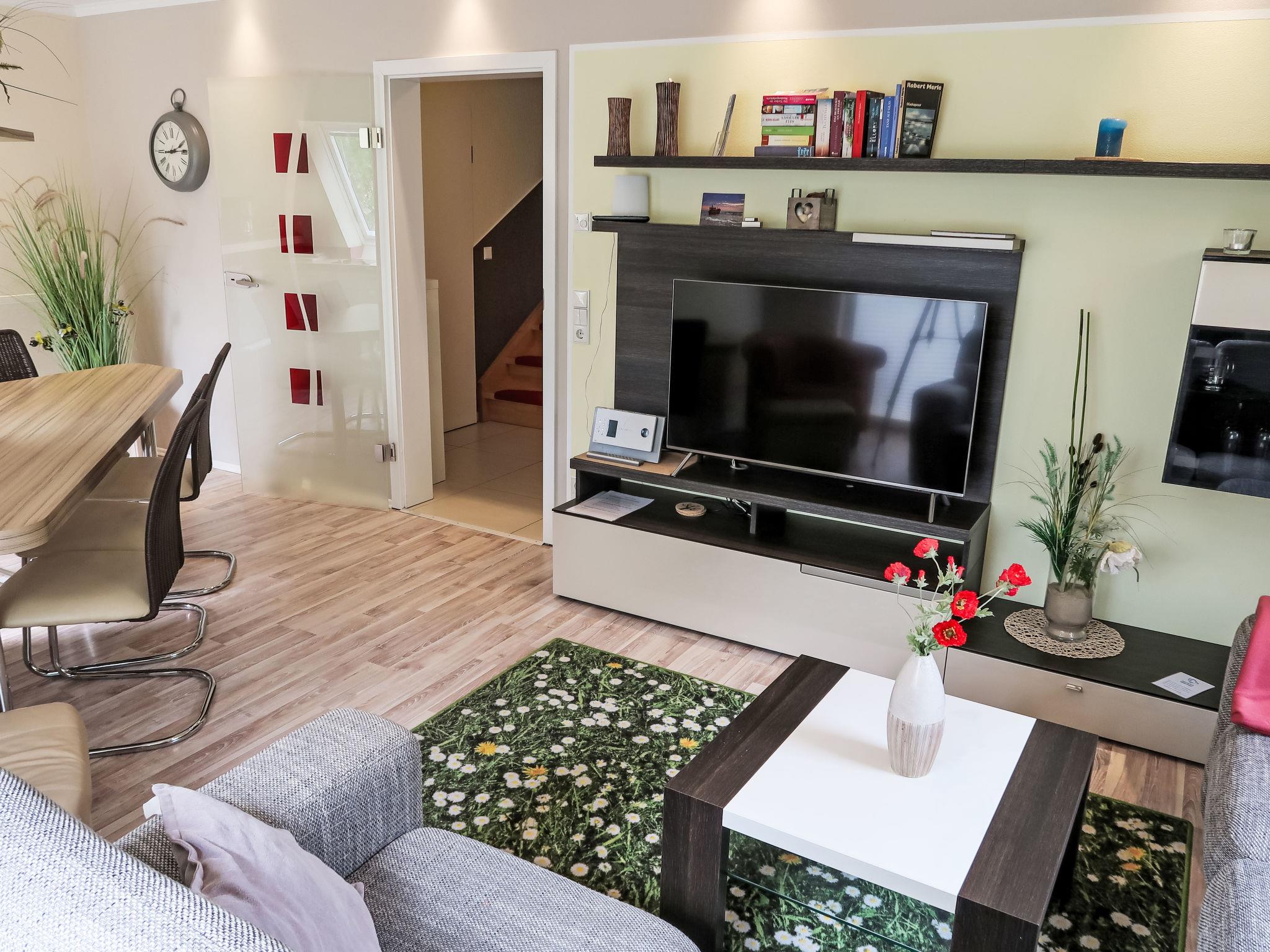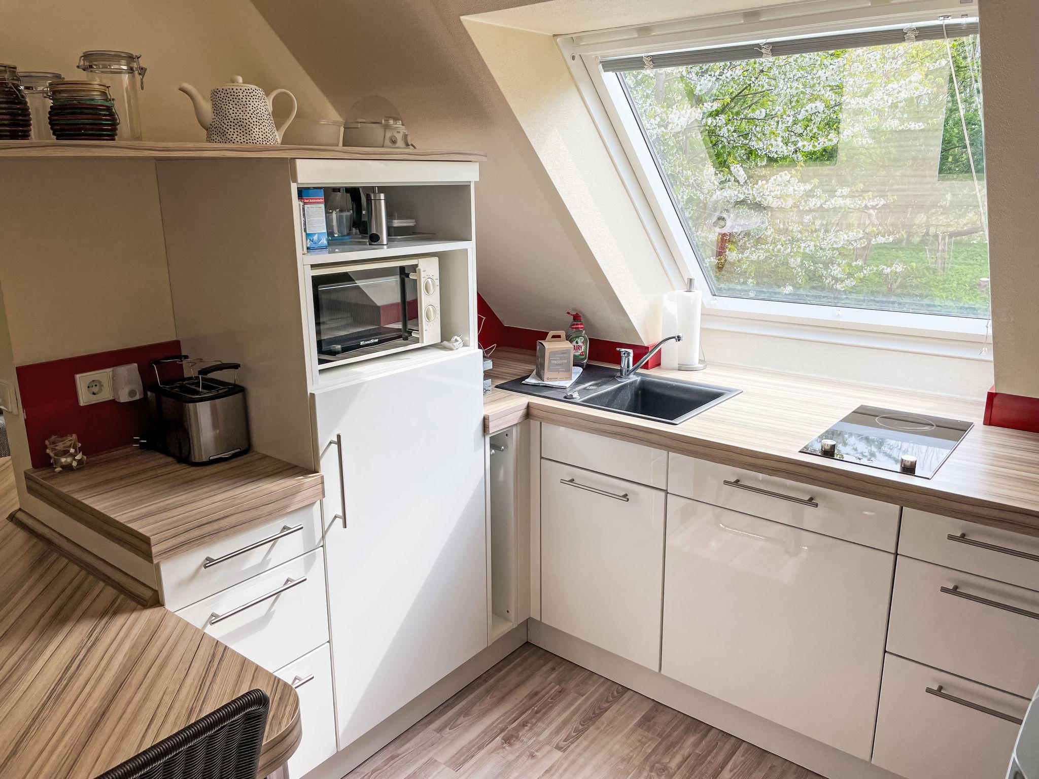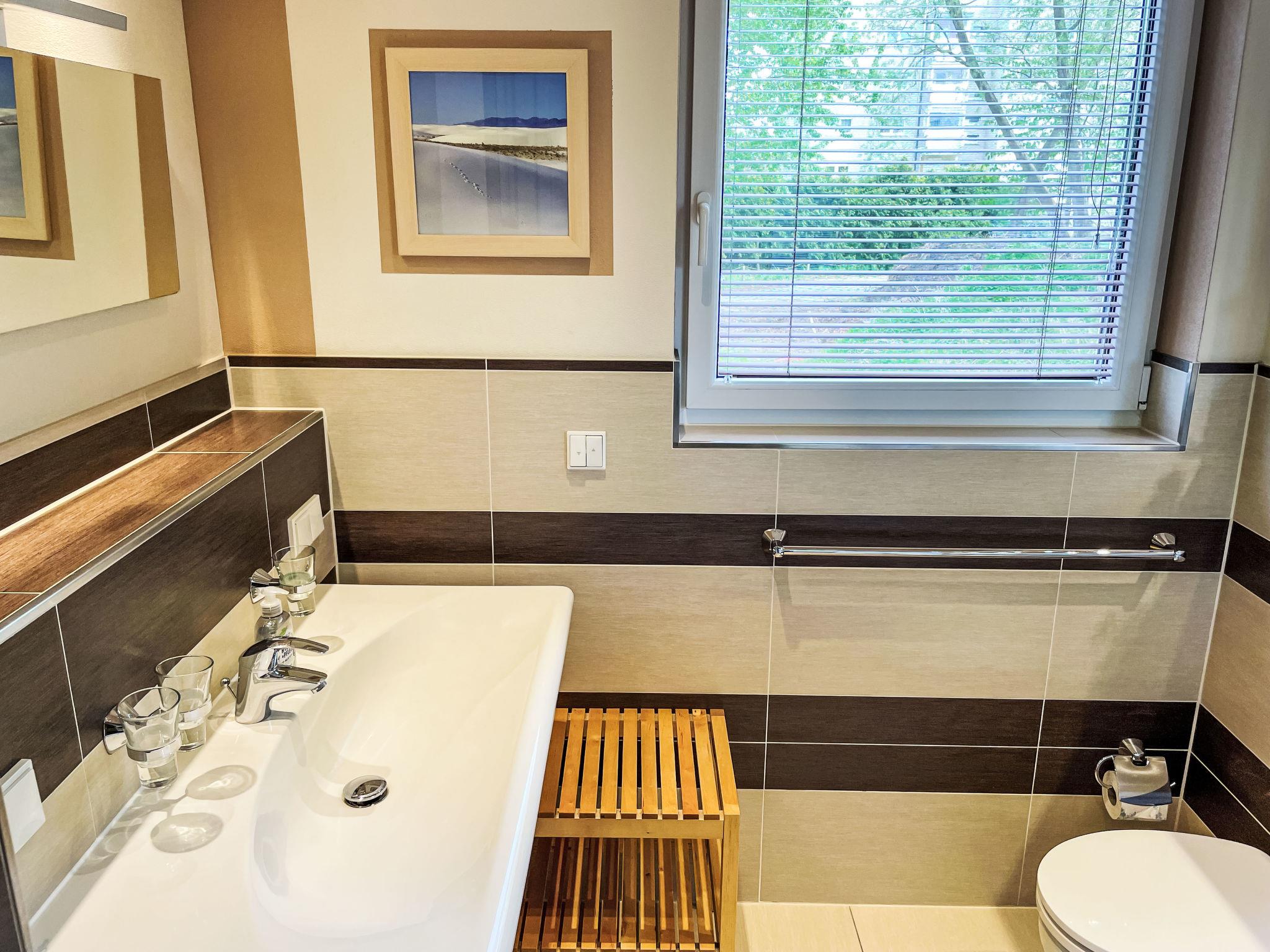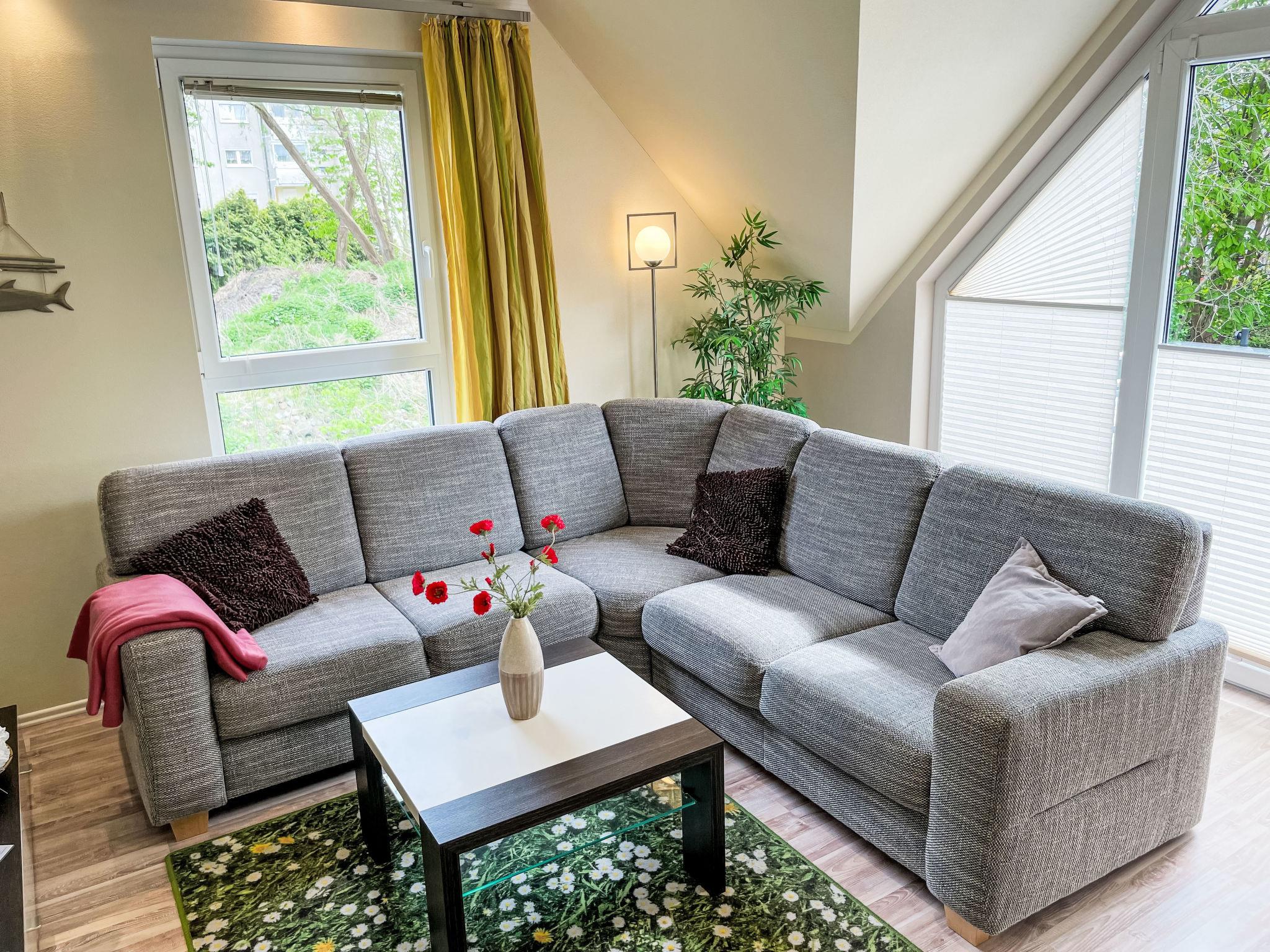 "Ludwig", 3-room apartment 86 m2 on 2 levels. With sloping ceilings, modern furnishings: living/dining room with satellite TV (flat screen), radio. Exit to the balcony. 1 room with 1 double bed (180 cm, length 200 cm). Open kitchen (2 hot plates, dishwasher, toaster, kettle, microwave, electric coffee machine). Shower/WC. Top floor: 1 room with 2 beds. Shower/WC. Balcony. Balcony furniture. Facilities: children's high chair, baby cot, hair dryer. Internet (WiFi, free). Parking (1 car) at the house. Please note: non-smokers only. Smoke alarm.