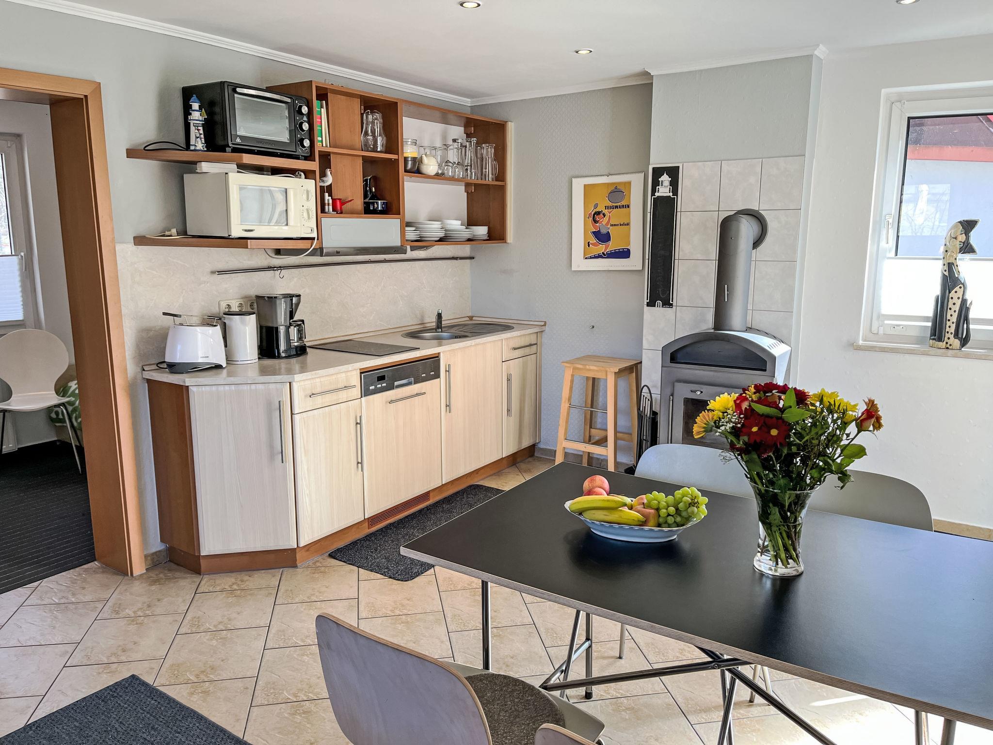 "Dat Huus", 3-room bungalow 40 m2. Object suitable for 5 adults. Cosy furnishings: living/dining room with 1 sofabed (120 cm, length 200 cm), Scandinavian wood stove and satellite TV (flat screen). 1 room with 1 double bed (180 cm, length 200 cm). 1 room with 1 double bed (180 cm, length 200 cm). Open kitchen (dishwasher, 2 ceramic glass hob hotplates, toaster, kettle, microwave, electric coffee machine) with dining table. Shower/WC. Small terrace. Terrace furniture. Facilities: children's high chair, baby cot for up to 3 year olds. Parking (1 car). Please note: suitable for families. Non-smoking house. Maximum 2 pets/ dogs allowed. Smoke alarm.