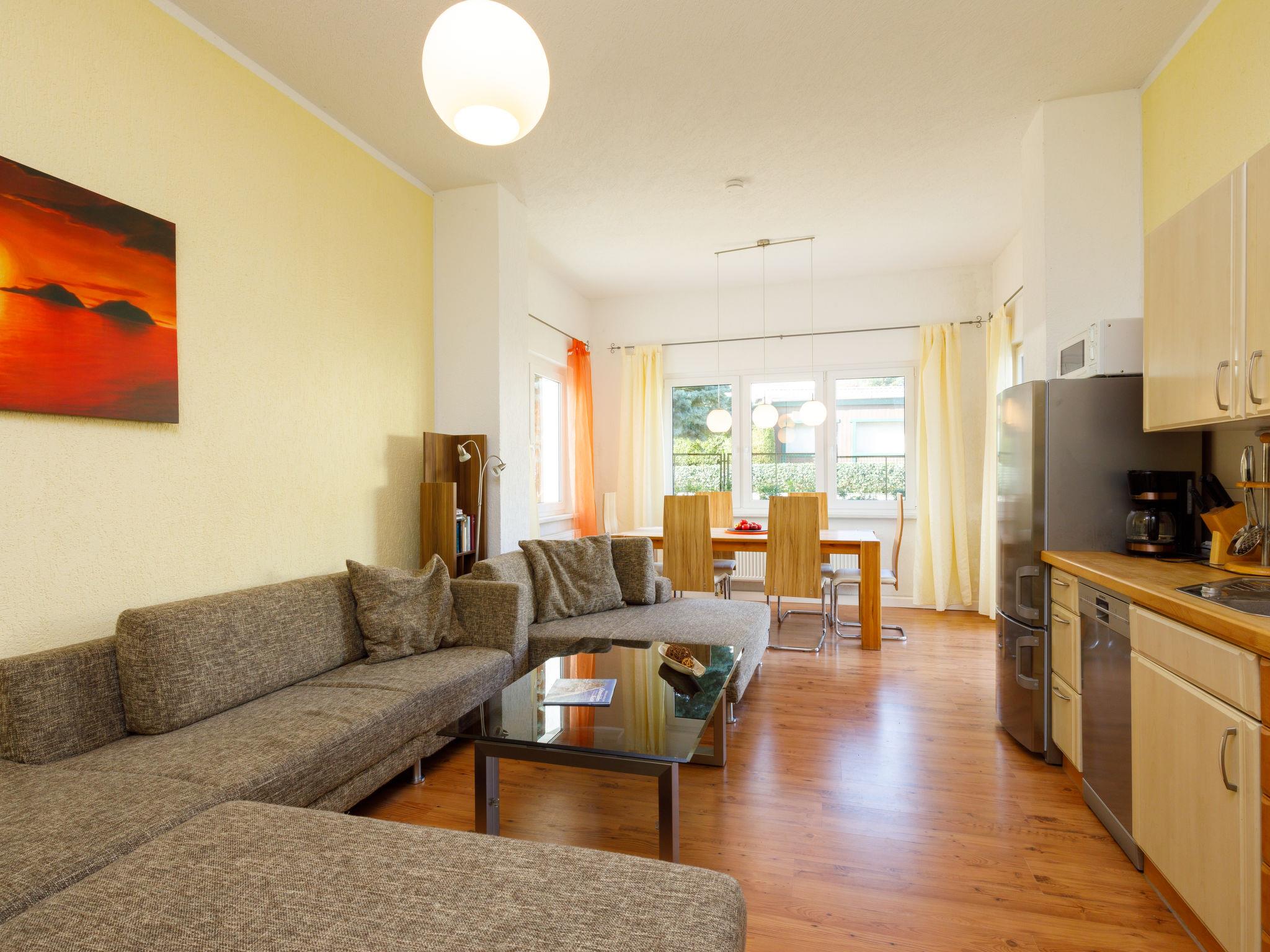 "Muschel", 3-room apartment 70 m2, on the ground floor. Modern furnishings: living/dining room with 1 sofabed and satellite TV (flat screen). Exit to the terrace. 1 room with 1 double bed. 1 room with 2 beds. Open kitchen (oven, dishwasher, 4 ceramic glass hob hotplates, toaster, kettle, microwave, electric coffee machine). Shower/WC. Terrace. Terrace furniture. Facilities: children's high chair, baby cot, baby changing unit. Internet (WiFi). Parking (1 car) at the house. Please note: non-smokers only. Smoke alarm.