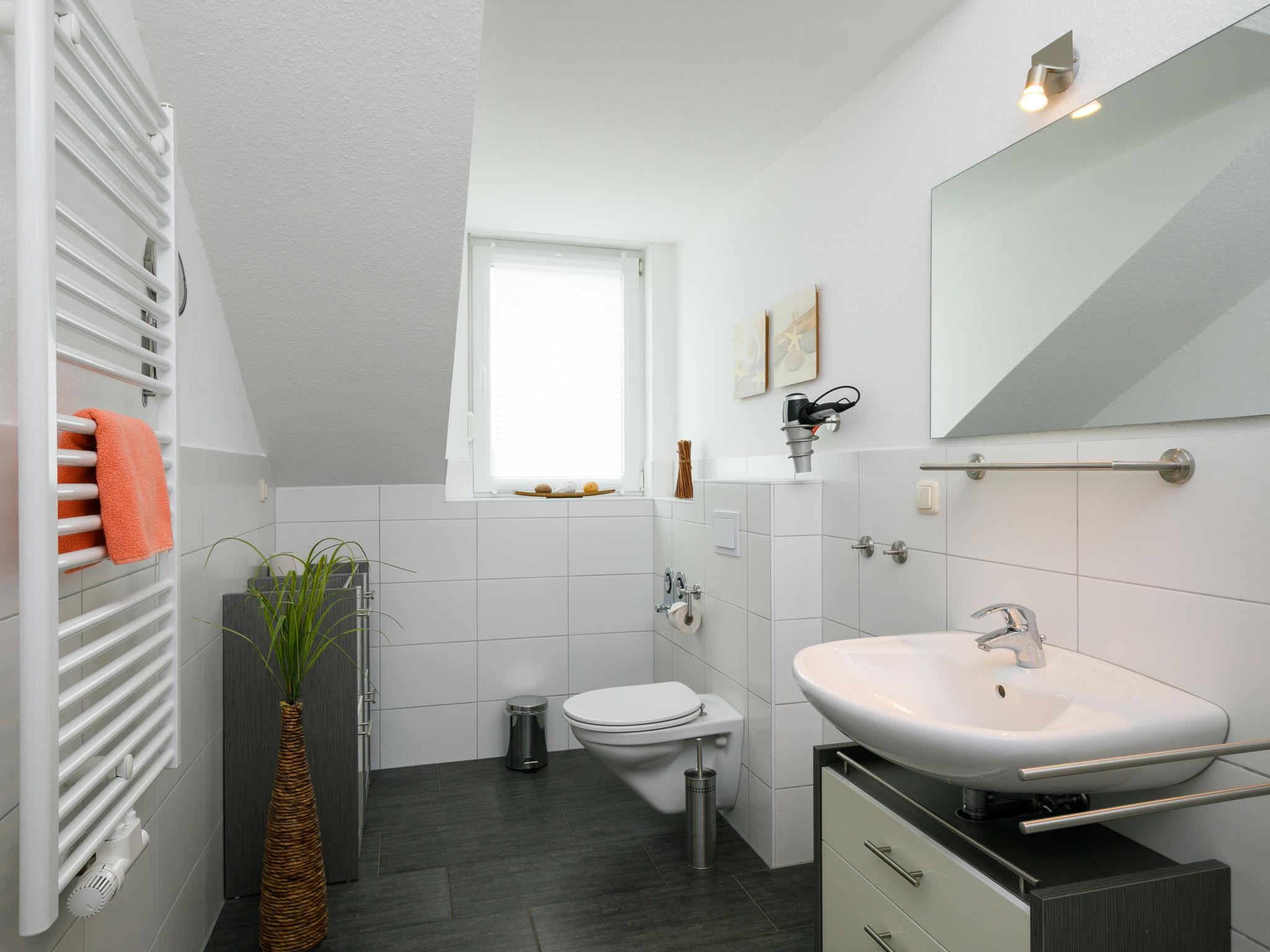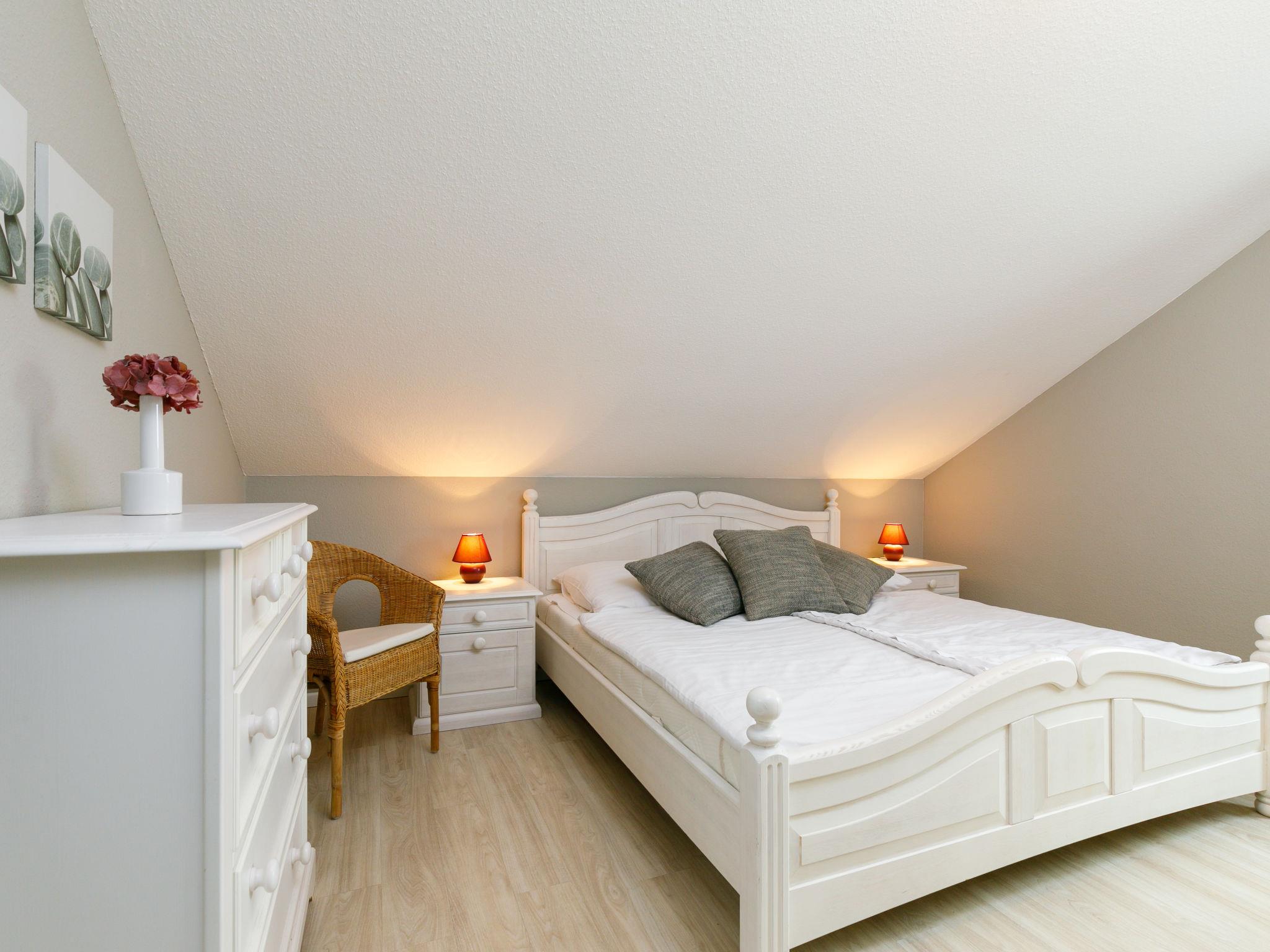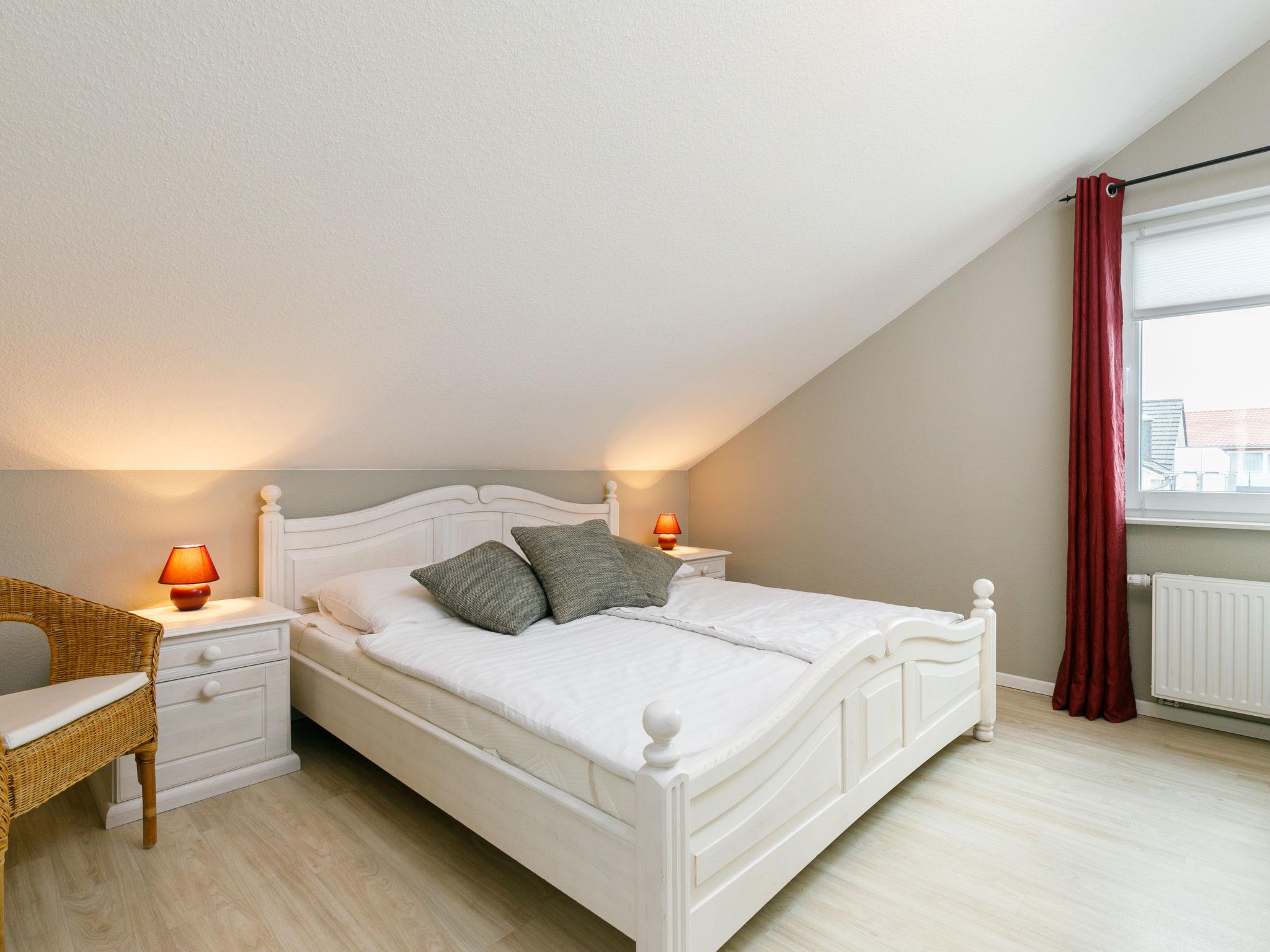 "Rollmops", 2-room apartment 59 m2, on the top floor. With sloping ceilings: living/dining room with cable TV (flat screen), radio. Exit to the balcony. 1 room with 1 double bed. Kitchenette (oven, dishwasher, 4 ceramic glass hob hotplates, toaster, kettle, electric coffee machine). Shower/WC. Balcony. Balcony furniture. Facilities: Internet (WiFi, free). Parking (1 car) at the house. Please note: non-smokers only. Smoke alarm.