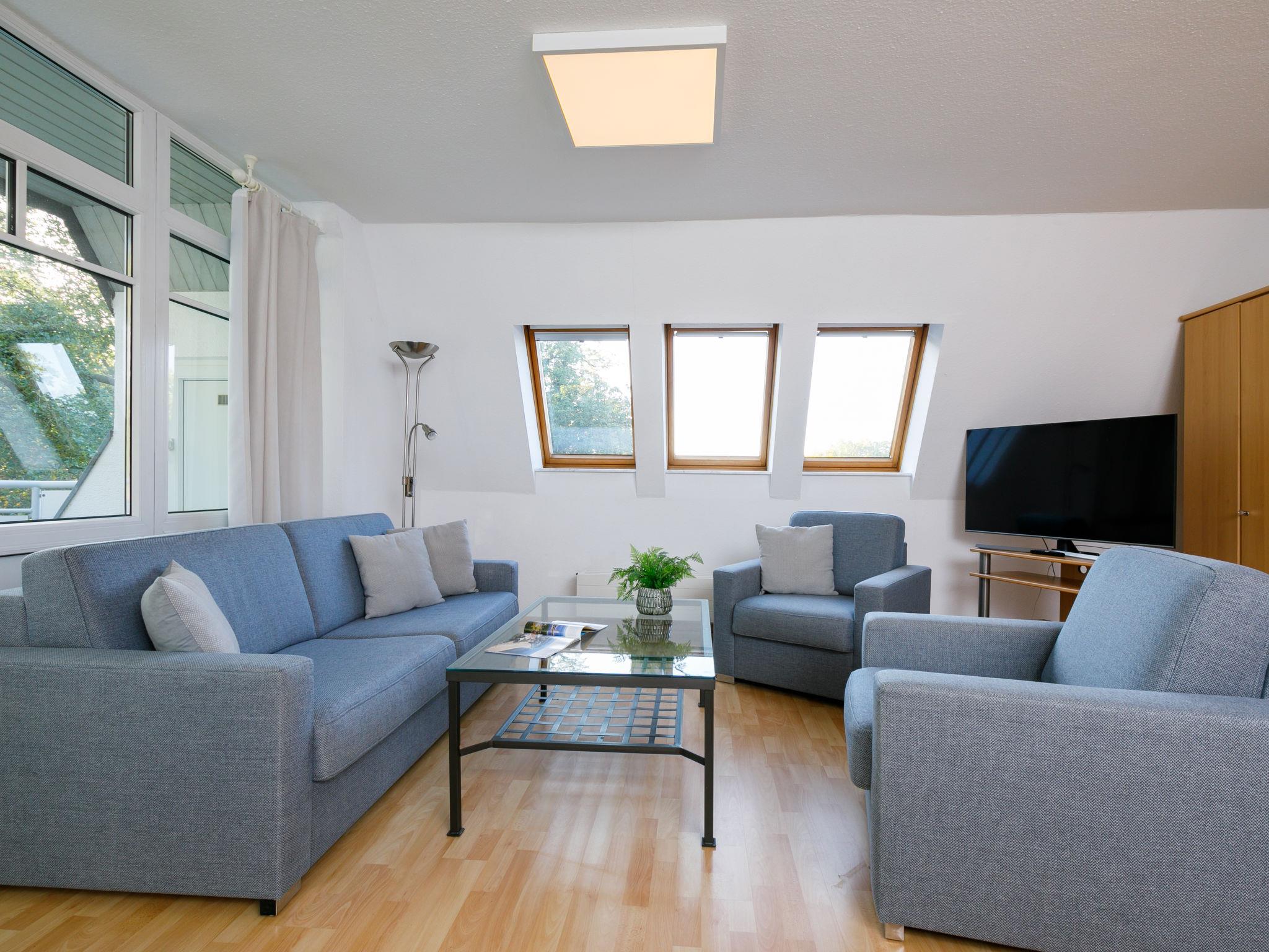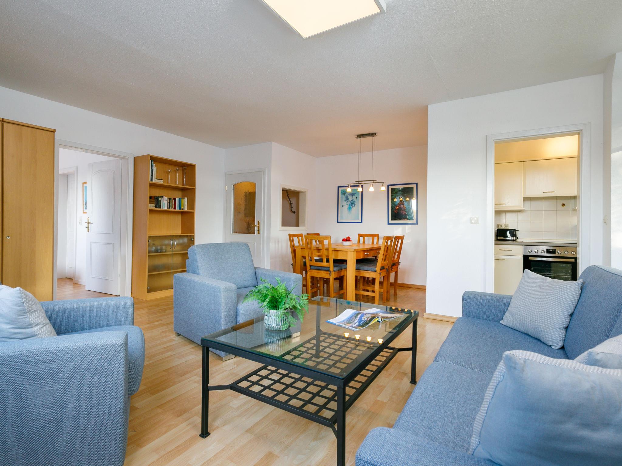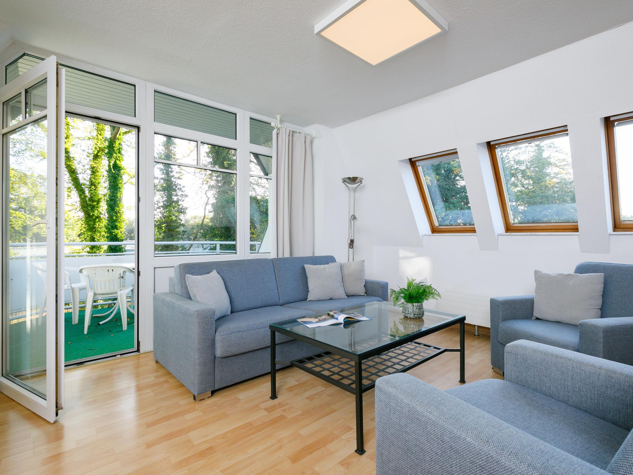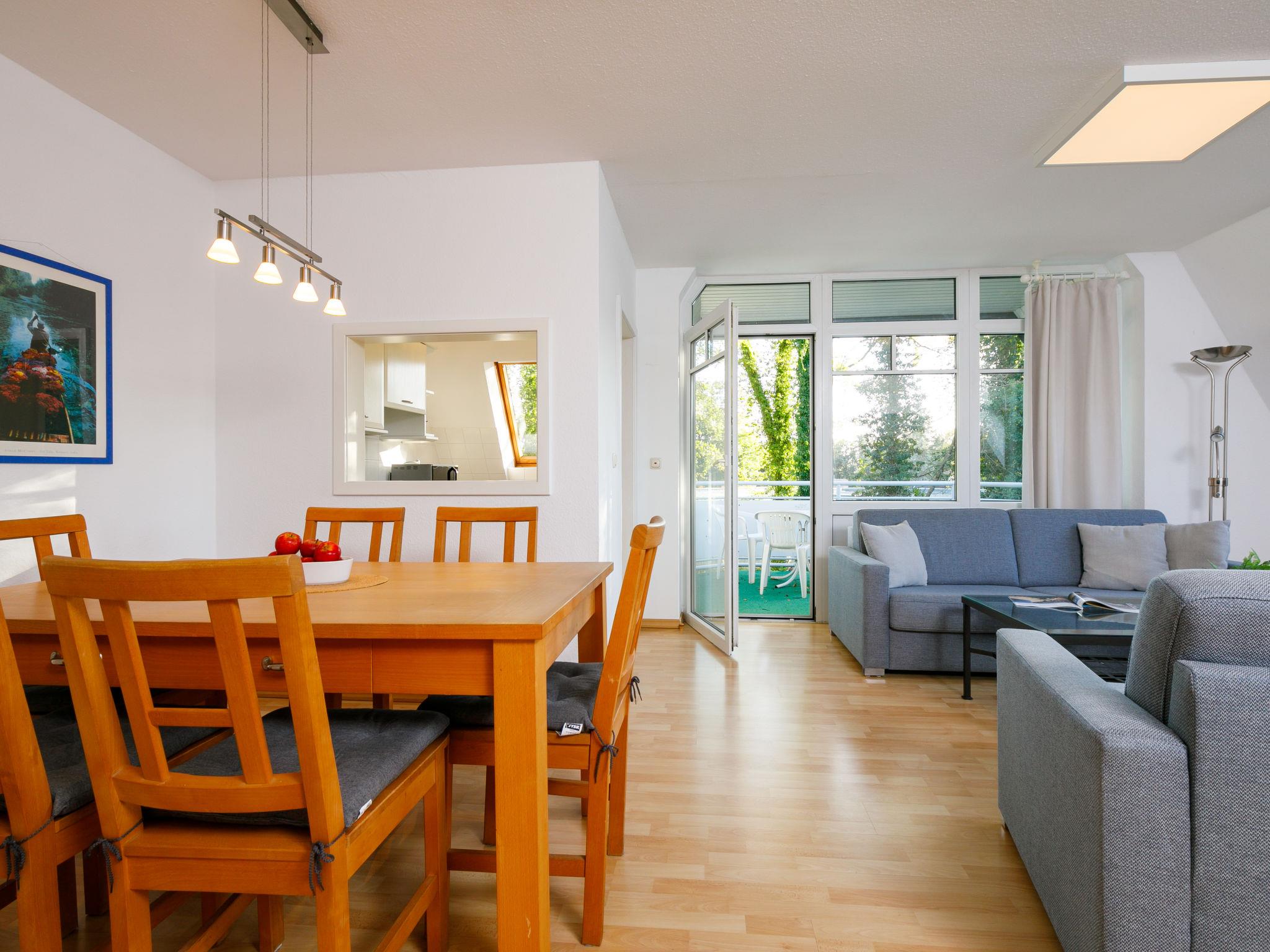 "Osenberg", 2-room apartment 56 m2, on the top floor. Beautiful furnishings: living/dining room with 1 double sofabed and cable TV (flat screen). Exit to the balcony. 1 room with 1 double bed. Open kitchen (oven, dishwasher, 4 ceramic glass hob hotplates, toaster, kettle, microwave, electric coffee machine). Shower, sep. WC. Balcony. Balcony furniture. Facilities: children's high chair, baby cot. Internet (WiFi, free). Parking (1 car) at the house. Please note: non-smokers only. Maximum 2 pets/ dogs allowed. Smoke alarm.