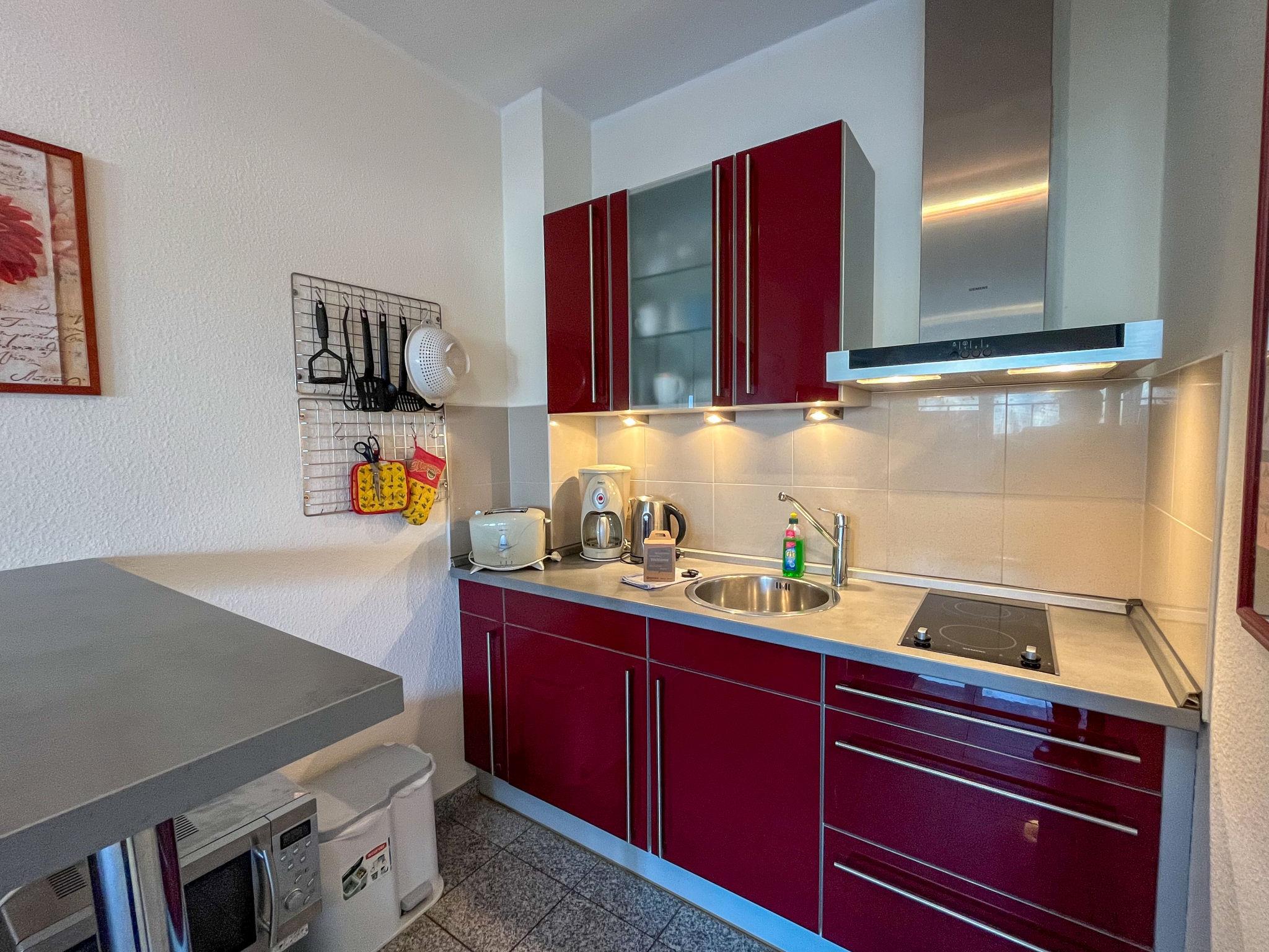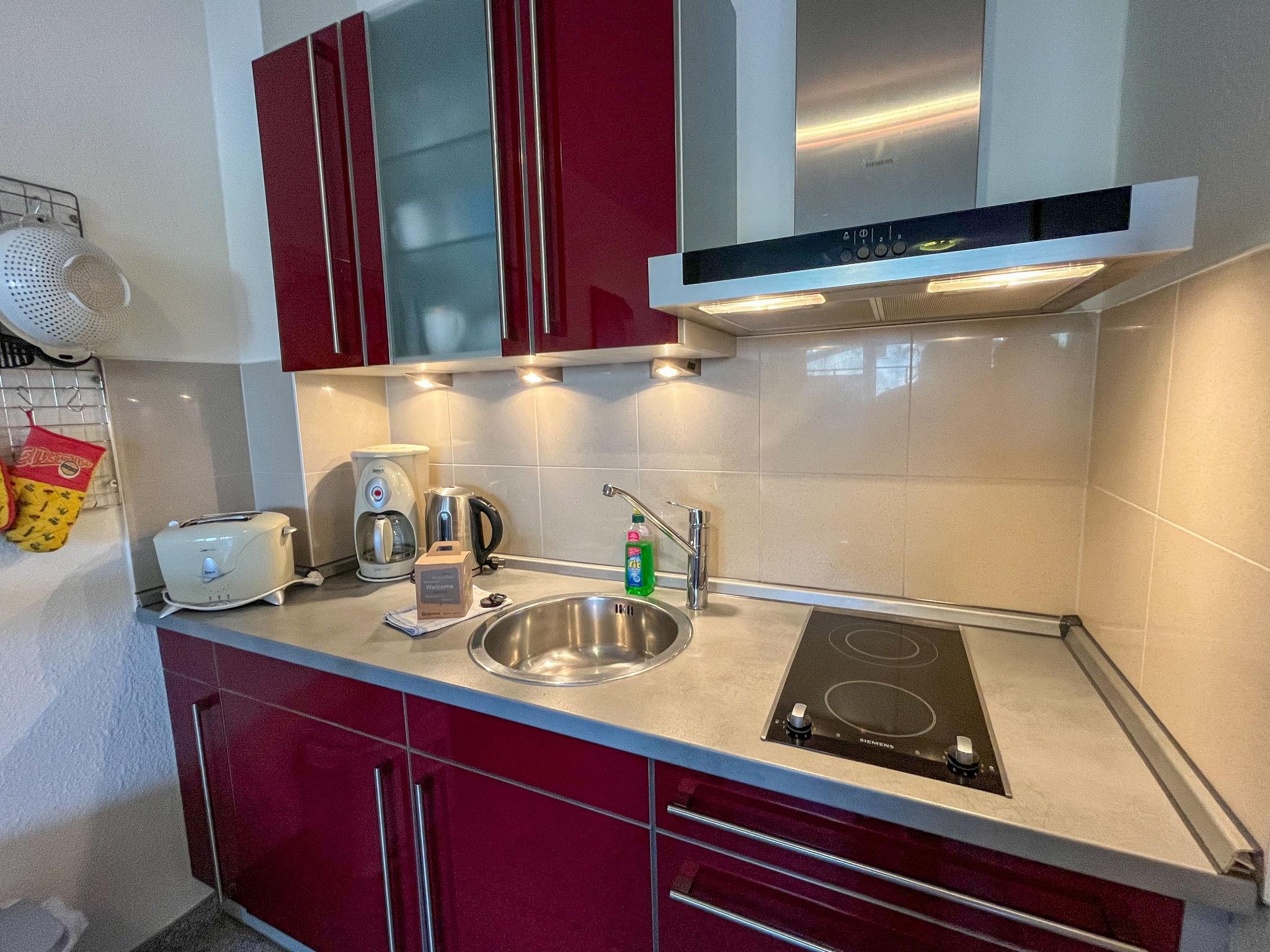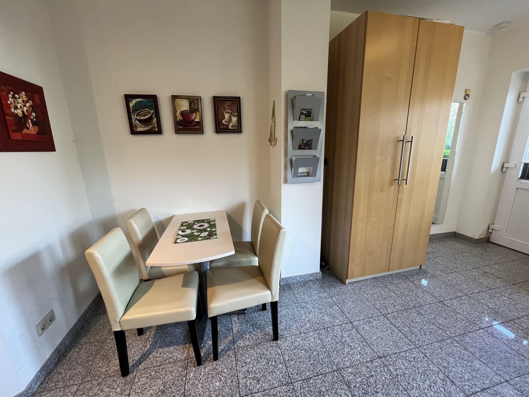 "Rudolph", 1-room apartment 39 m2, on the ground floor. Modern and tasteful furnishings: living/dining room with 2 sofabeds, dining table and cable TV (flat screen), radio. Exit to the terrace. Kitchenette (2 hot plates, toaster, kettle, microwave, electric coffee machine). Shower/WC. Large terrace. Terrace furniture. Facilities: children's high chair, baby cot. Parking (1 car) at the house. Please note: non-smokers only. Maximum 1 pet/ dog allowed. Smoke alarm.