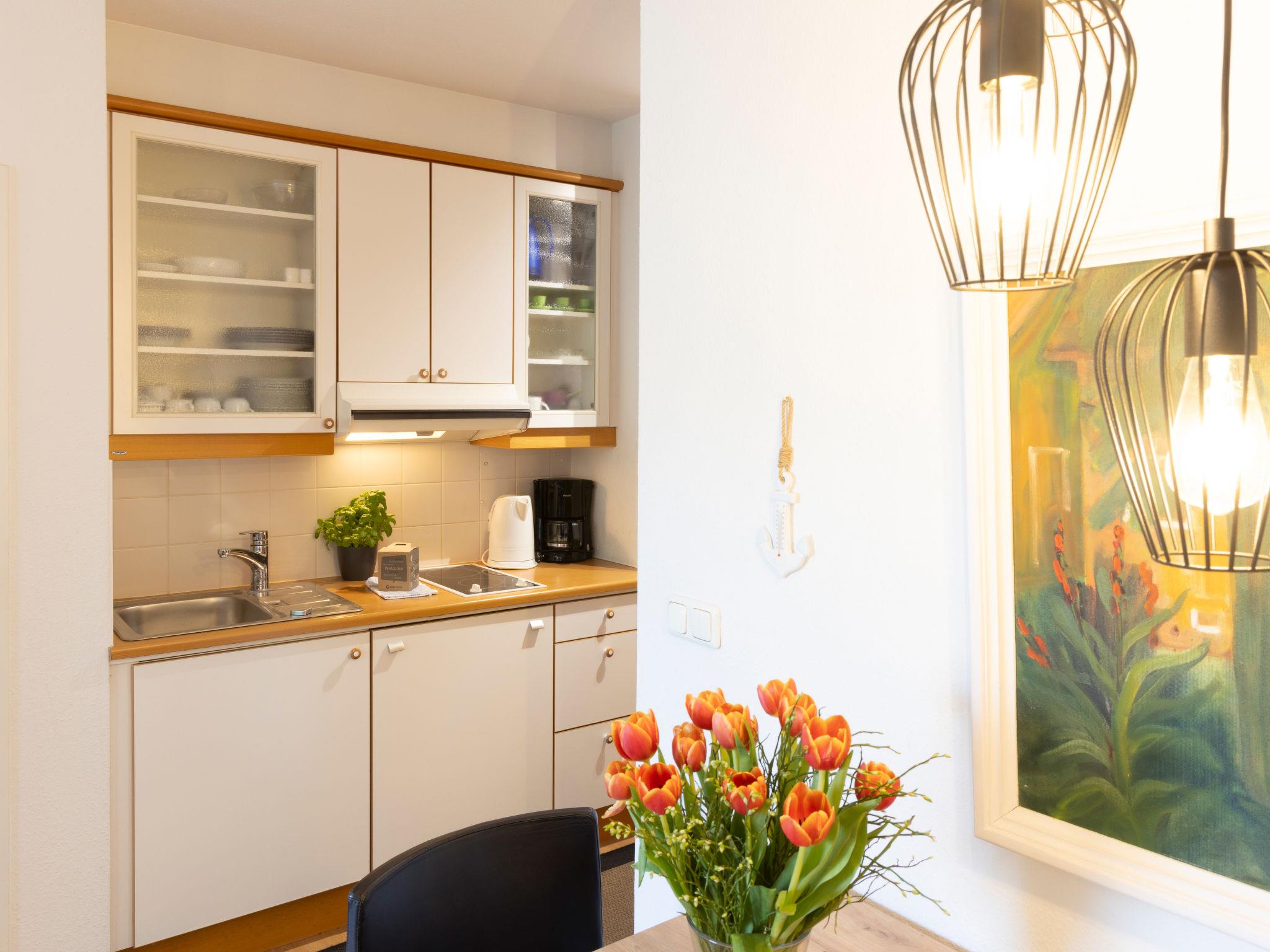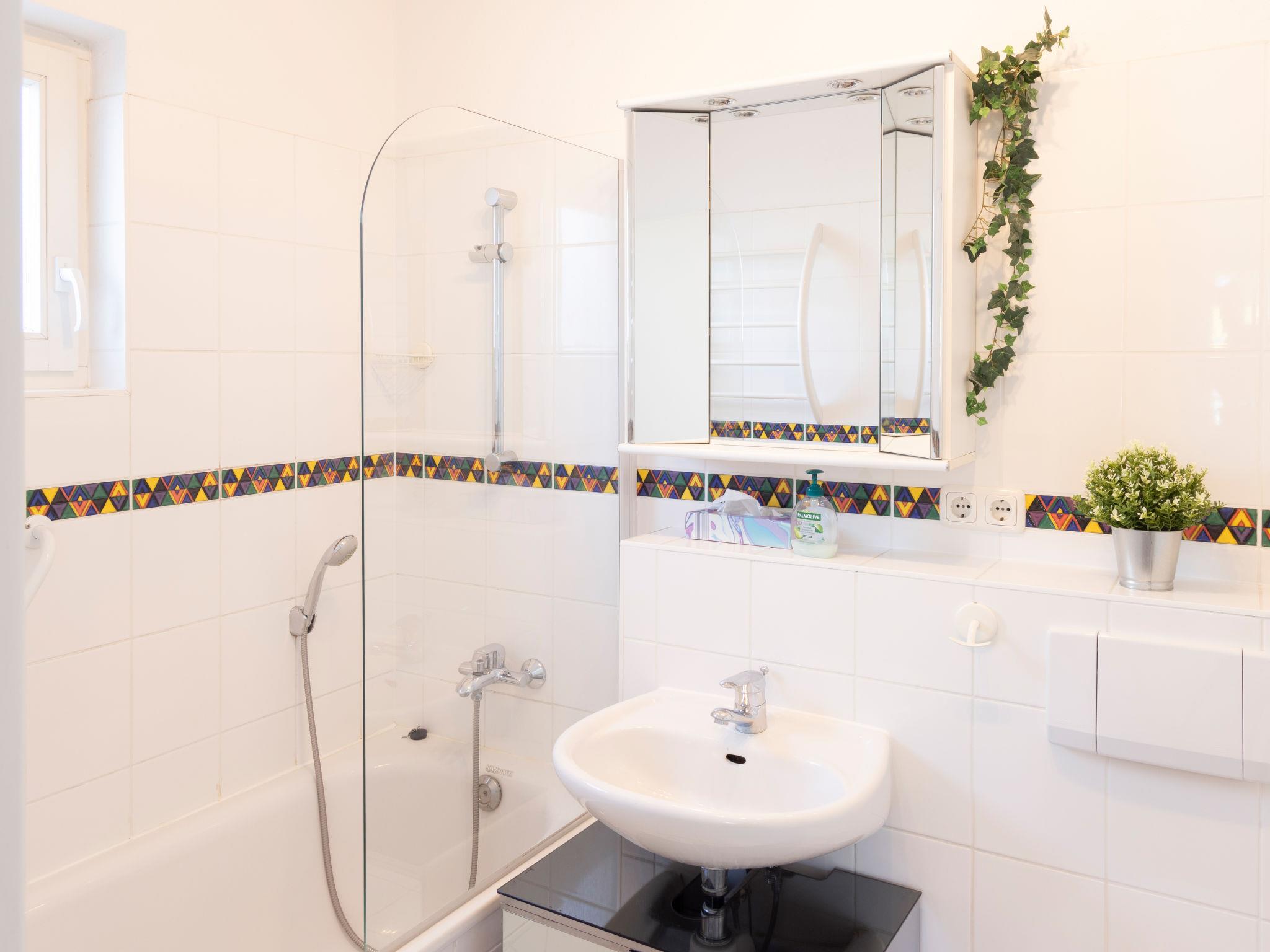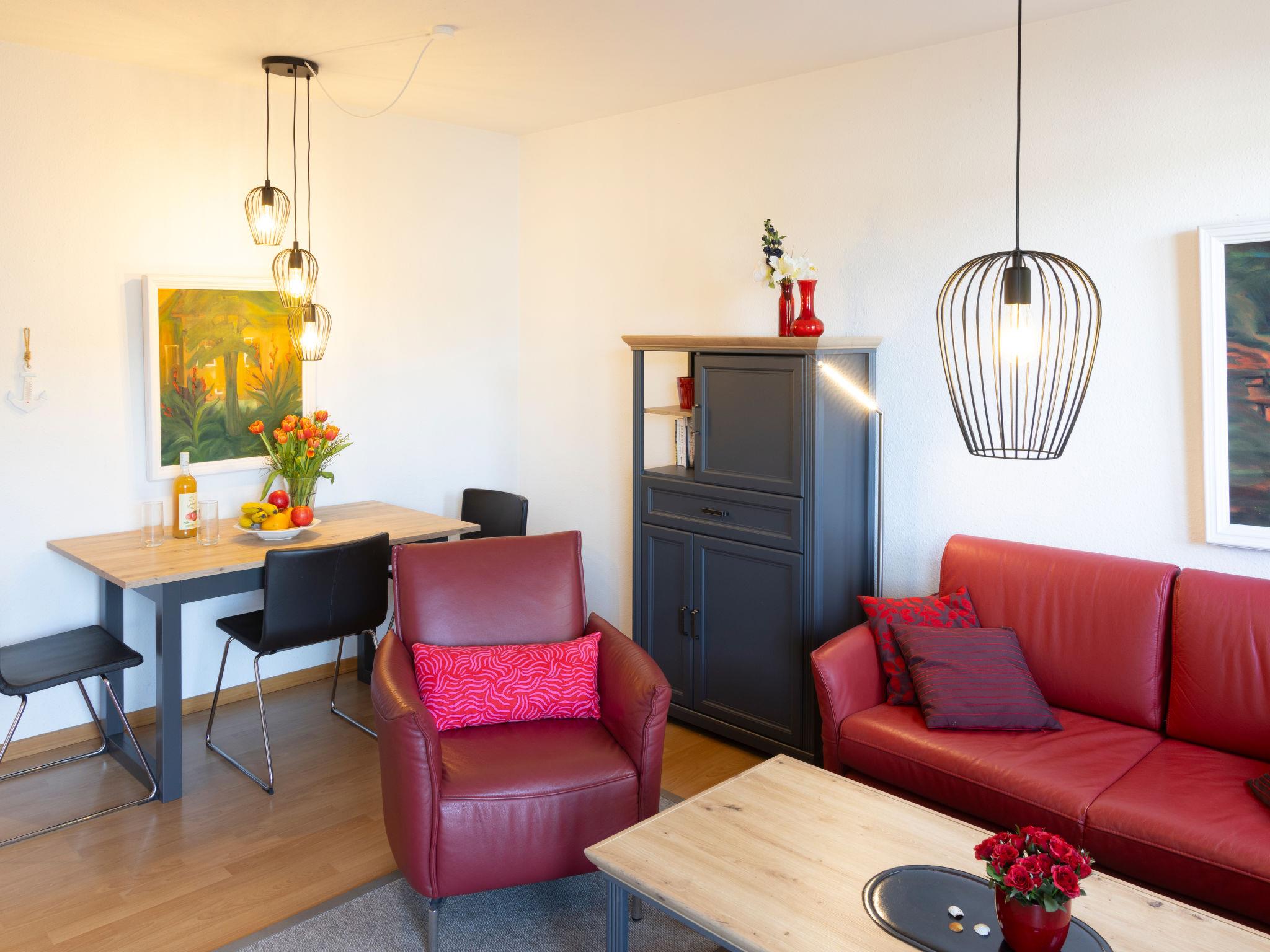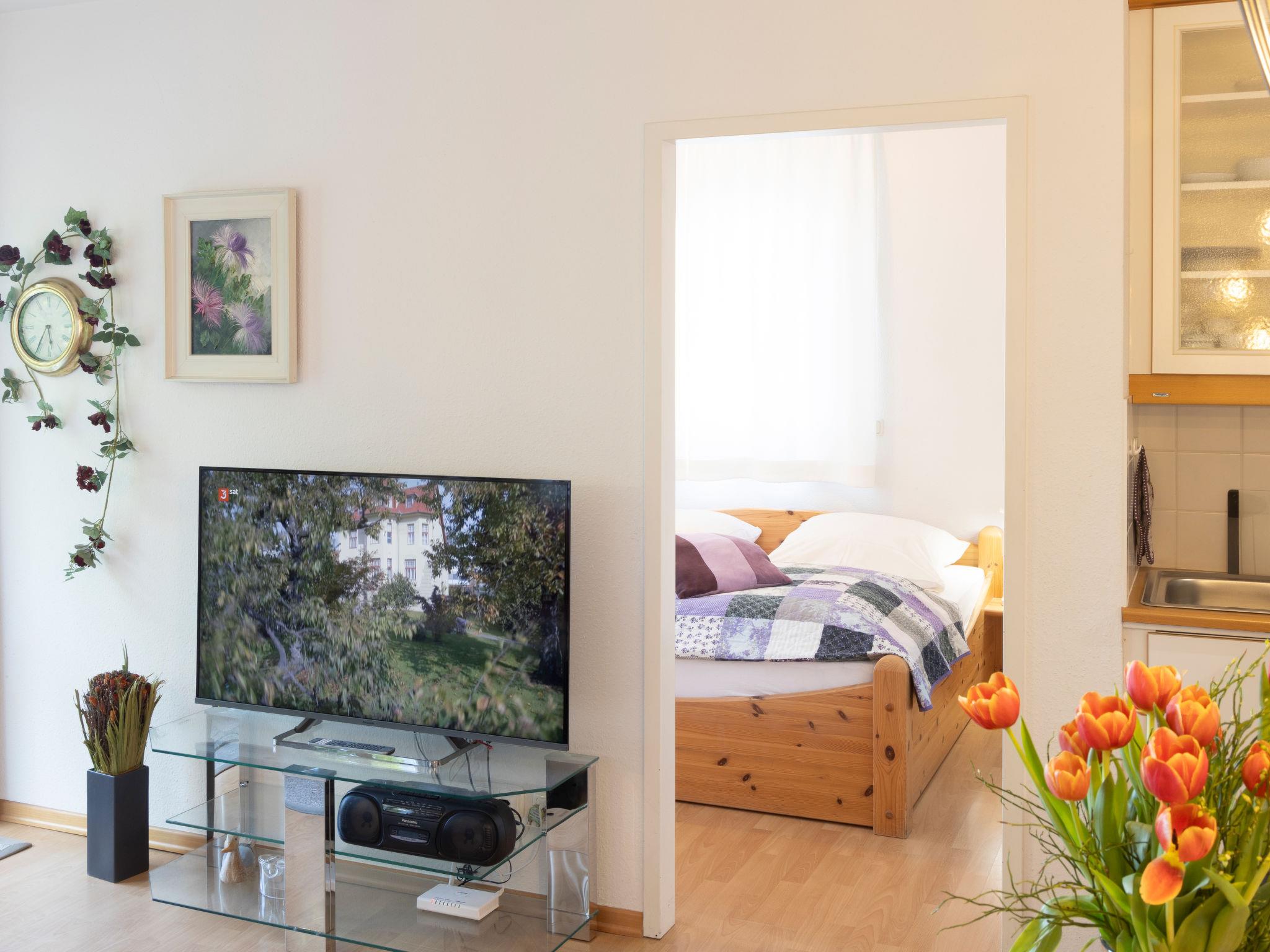"Parkresidenz Sanssoucis (App. 29)", 2-room apartment 47 m2 on 1st floor. Cosy furnishings: living/dining room with 1 sofabed and satellite TV (flat screen), radio. Exit to the balcony. 1 room with 1 double bed. Kitchenette (oven, dishwasher, 2 ceramic glass hob hotplates, toaster, kettle, microwave, electric coffee machine). Bath/WC. Balcony. Balcony furniture. Facilities: children's high chair, baby cot. Internet (WiFi, free). Parking (1 car) at the house. Please note: non-smokers only. Smoke alarm.