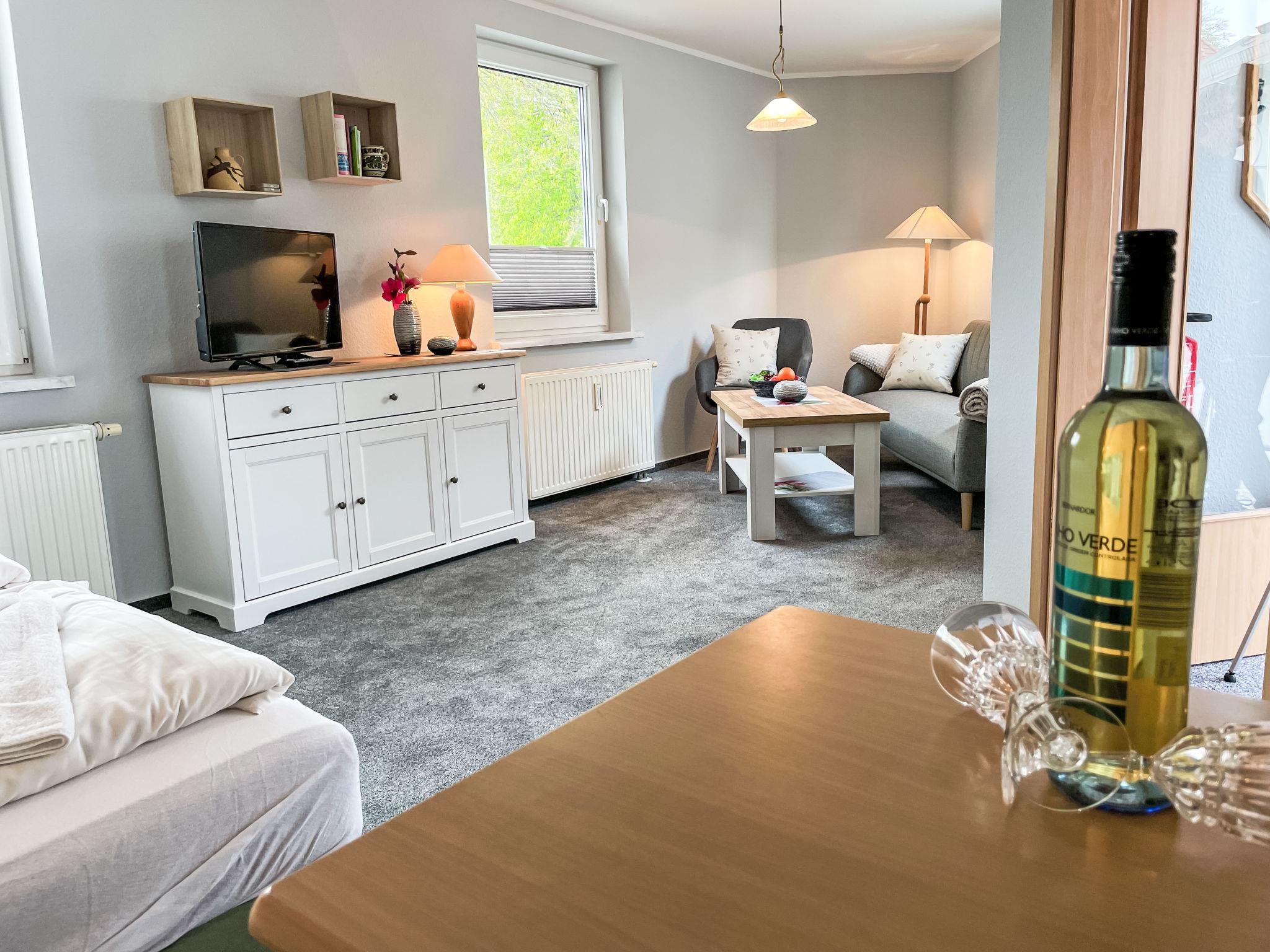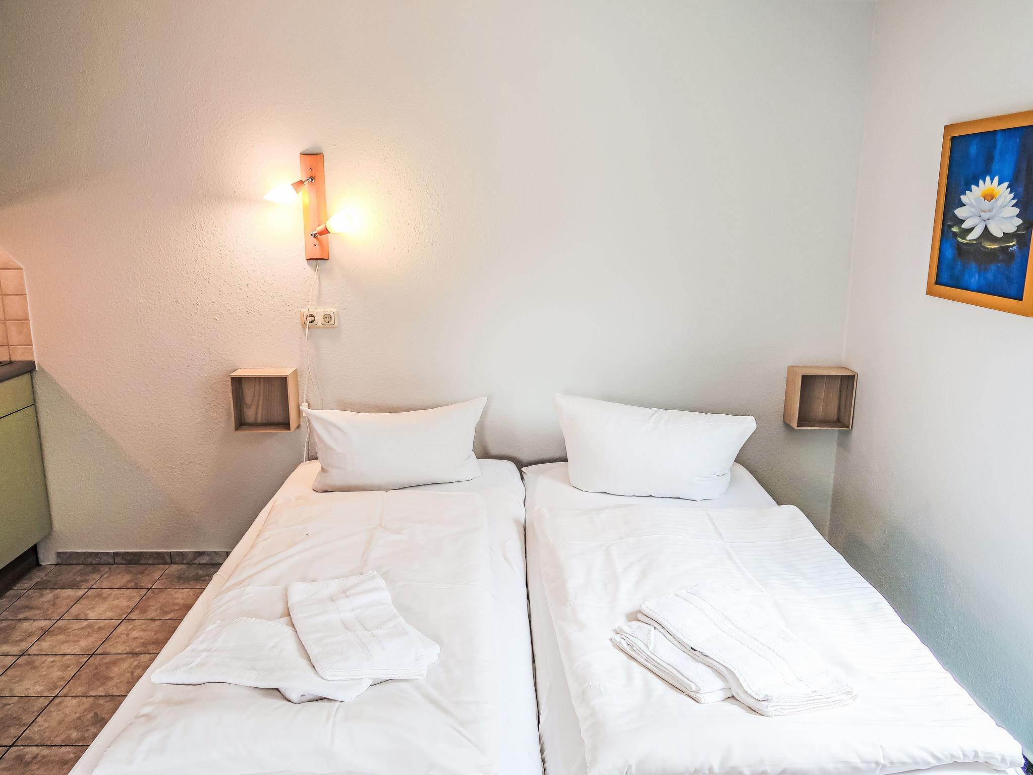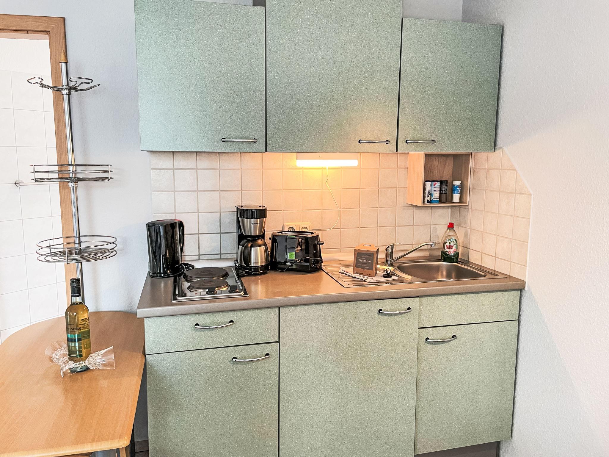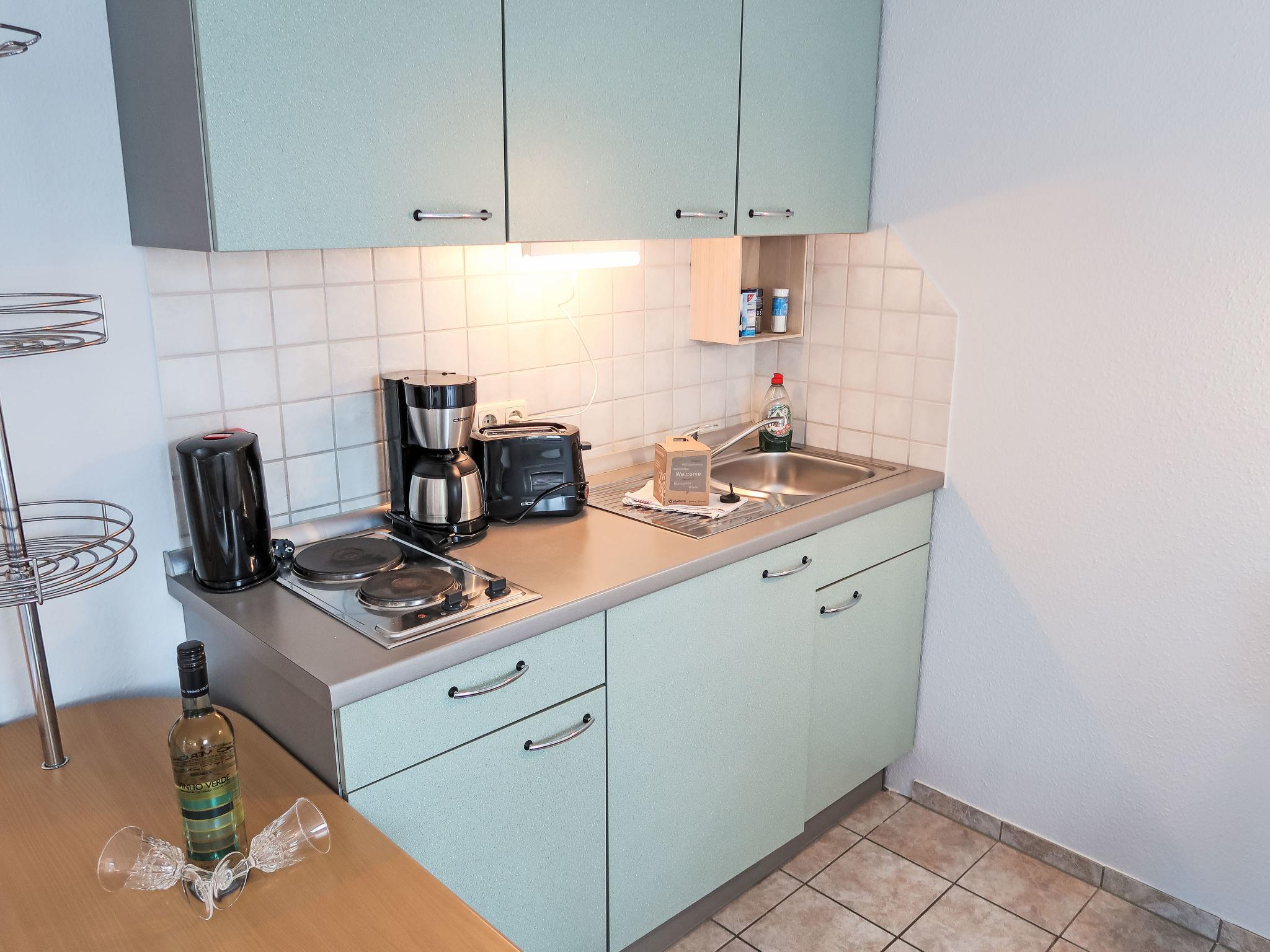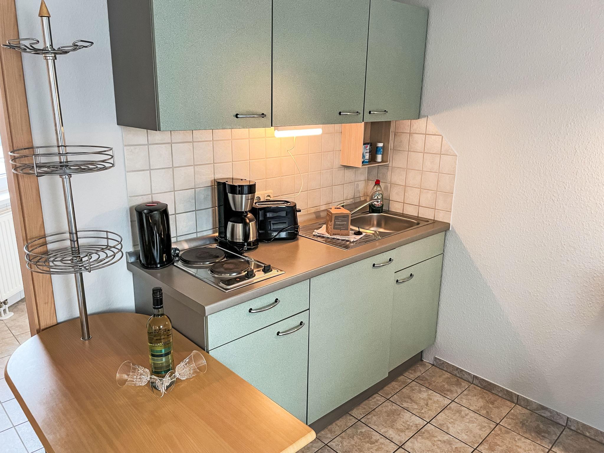 "Lisa", 1-room apartment 35 m2, on the upper floor. Living/sleeping room with 1 double bed and cable TV (flat screen), radio. Small kitchenette (2 hot plates, toaster, kettle, electric coffee machine). Shower/WC. Heating. Parking (1 car). Please note: non-smokers only. Smoke alarm. The apartment can be reached via an external staircase.