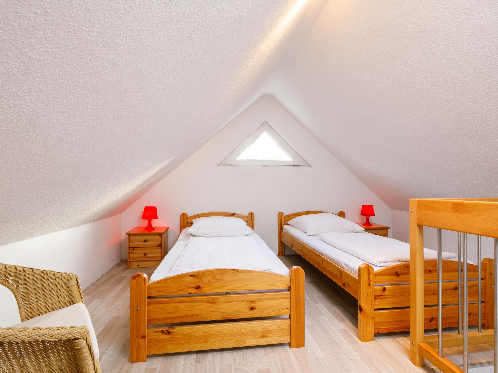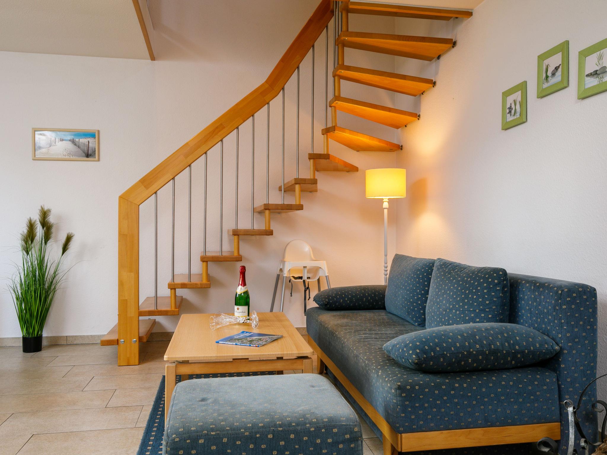 2-room apartment 69 m2 on 2 levels, on the ground floor. Cosy furnishings: living/dining room with Scandinavian wood stove and satellite TV (flat screen), radio. Exit to the terrace. 1 room with 1 double bed. Kitchenette (oven, 4 ceramic glass hob hotplates, toaster, kettle, electric coffee machine). Shower/WC. Electric heating. Top floor: open gallery with sloping ceilings with 2 beds. Terrace. Terrace furniture. Facilities: children's high chair, baby cot, logs (extra). Parking (1 car). Please note: non-smoking house. Smoke alarm. Instead of an enclosed bedroom, some sleeping areas are located in an open-plan area (gallery, alcove, etc.).