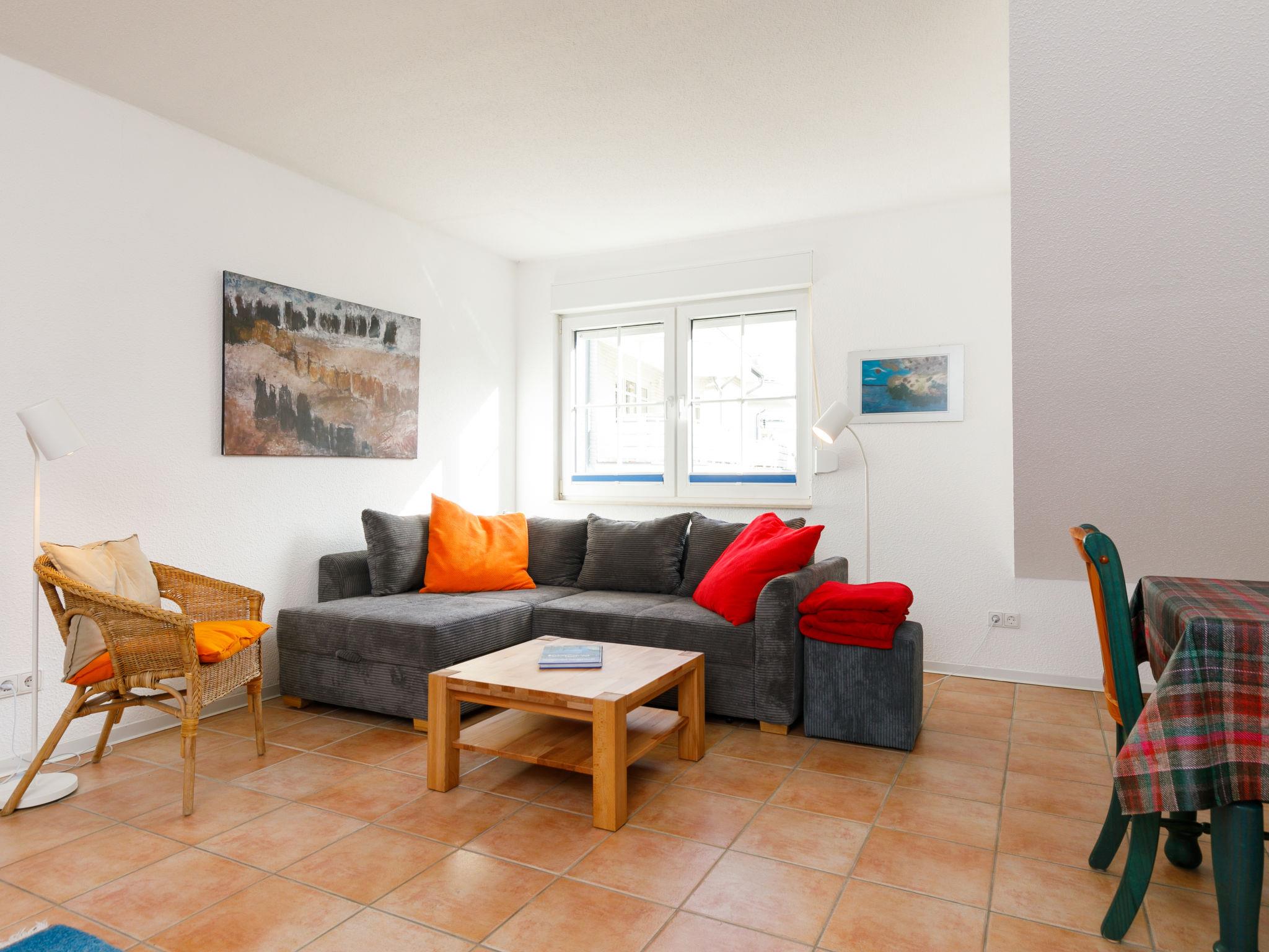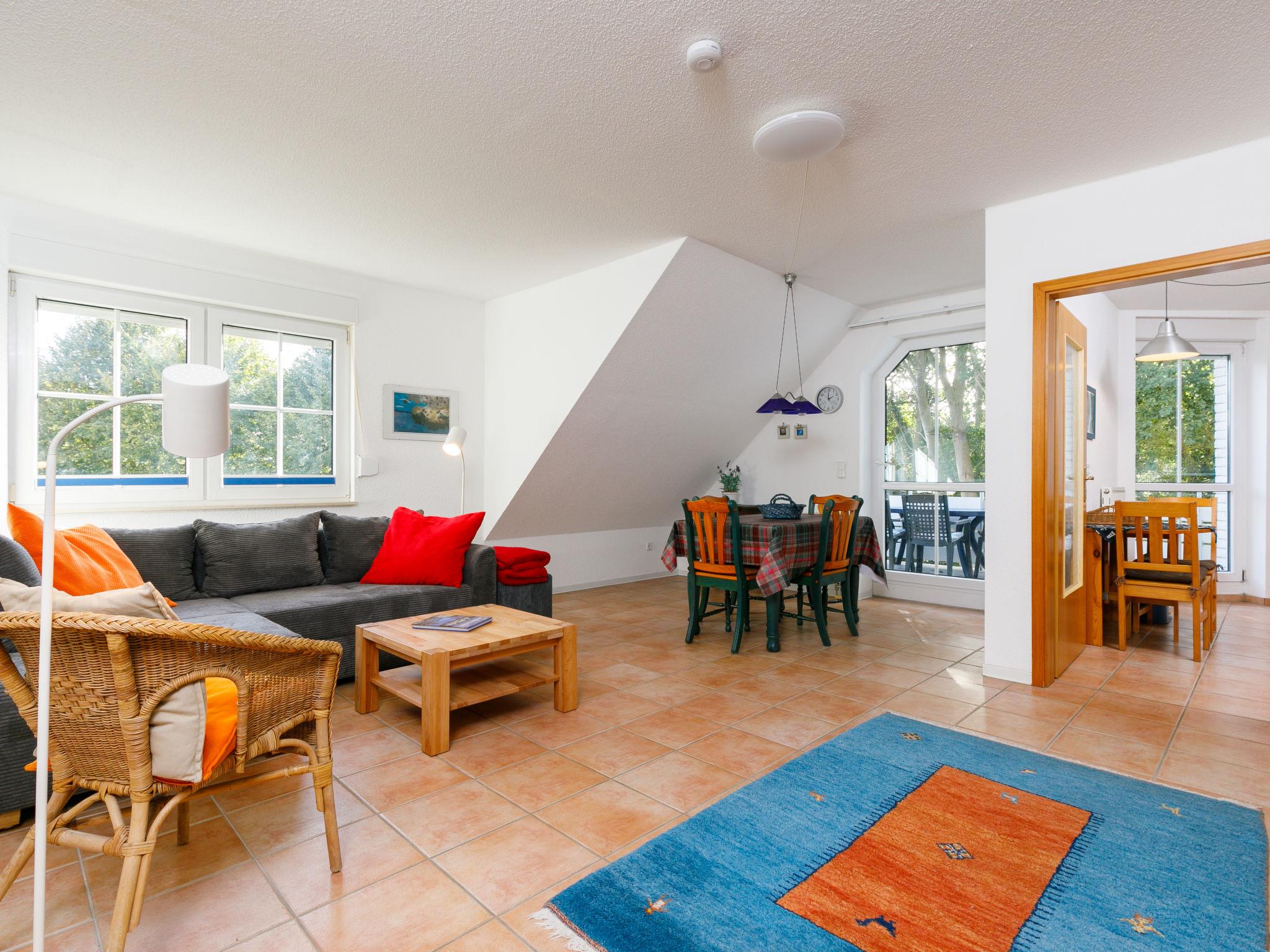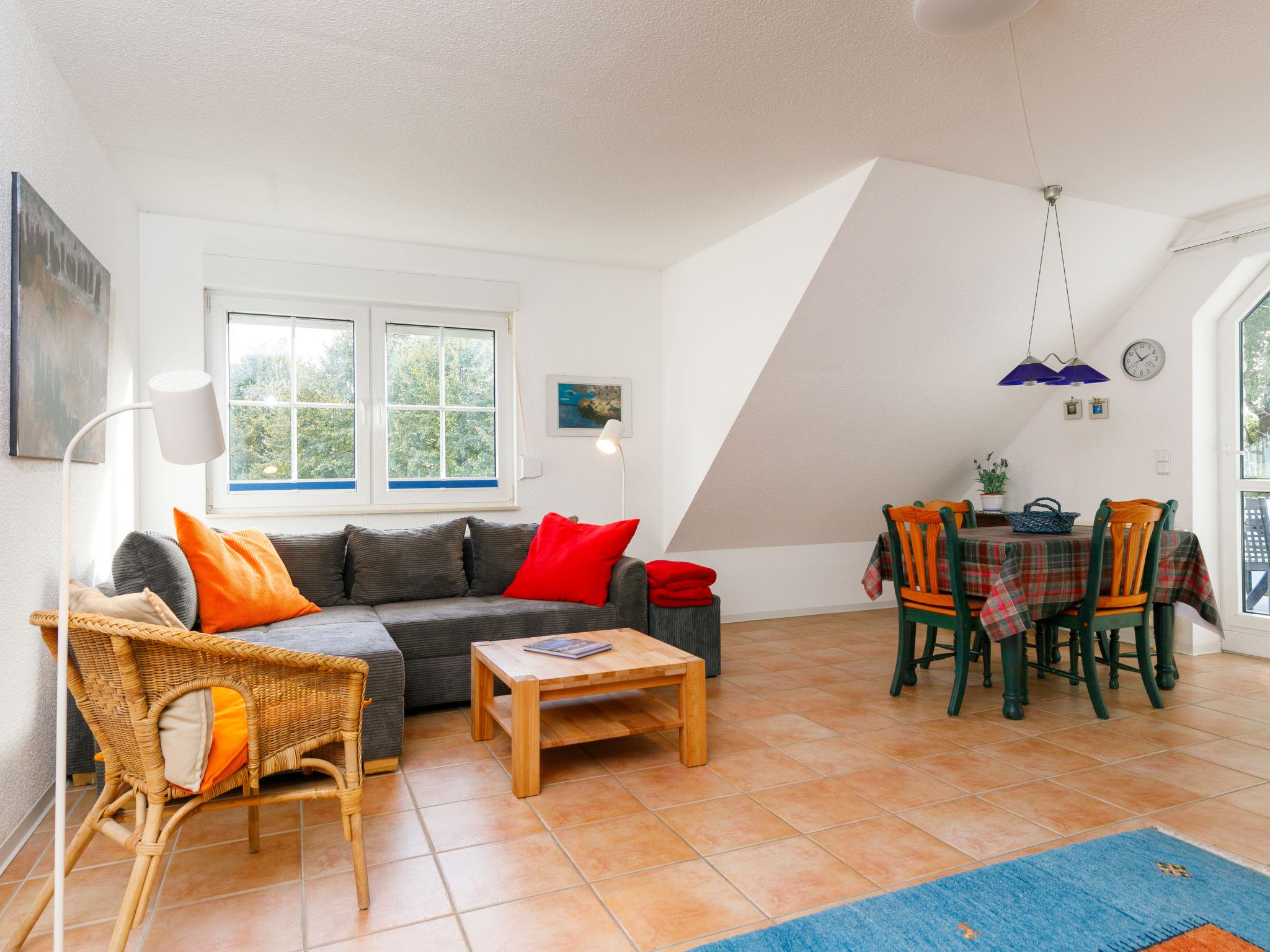 "Pappelblick (App.4)", 2-room apartment 69 m2 on 1st floor. With sloping ceilings, cosy furnishings: living room with 1 double sofabed and satellite TV (flat screen), radio. Exit to the balcony. 1 room with 1 double bed. Kitchen (oven, 4 ceramic glass hob hotplates, toaster, kettle, microwave, electric coffee machine) with dining table. Exit to the balcony. Bath/shower/WC. Balcony. Balcony furniture. Parking (1 car). Please note: non-smokers only. Smoke alarm.