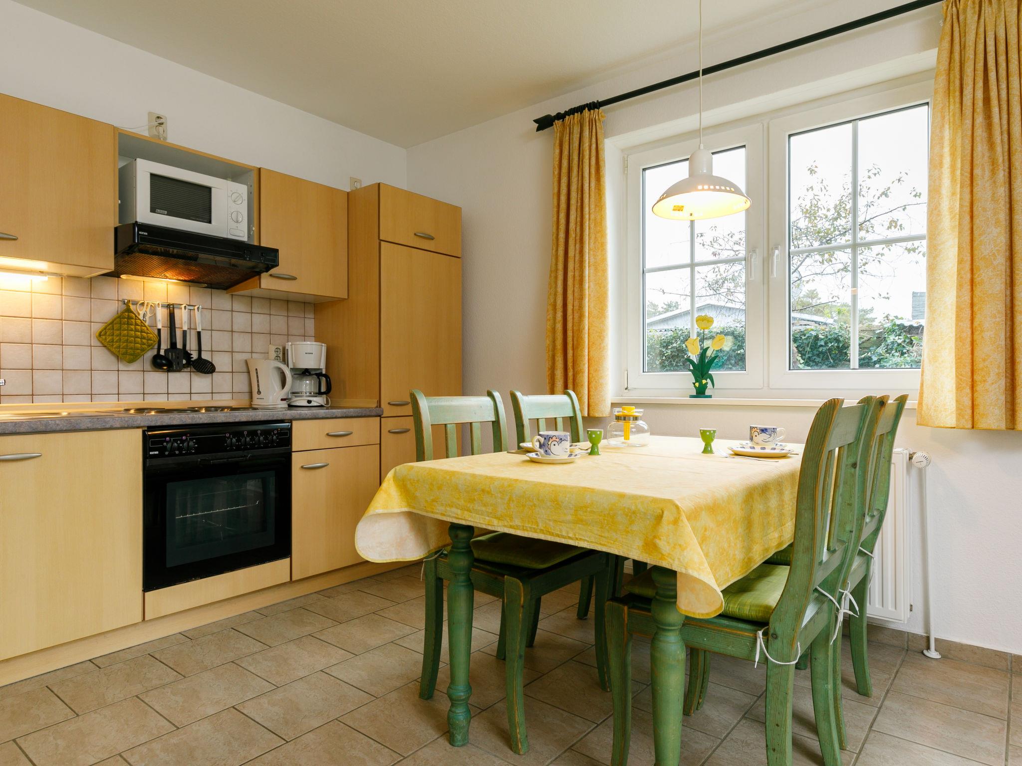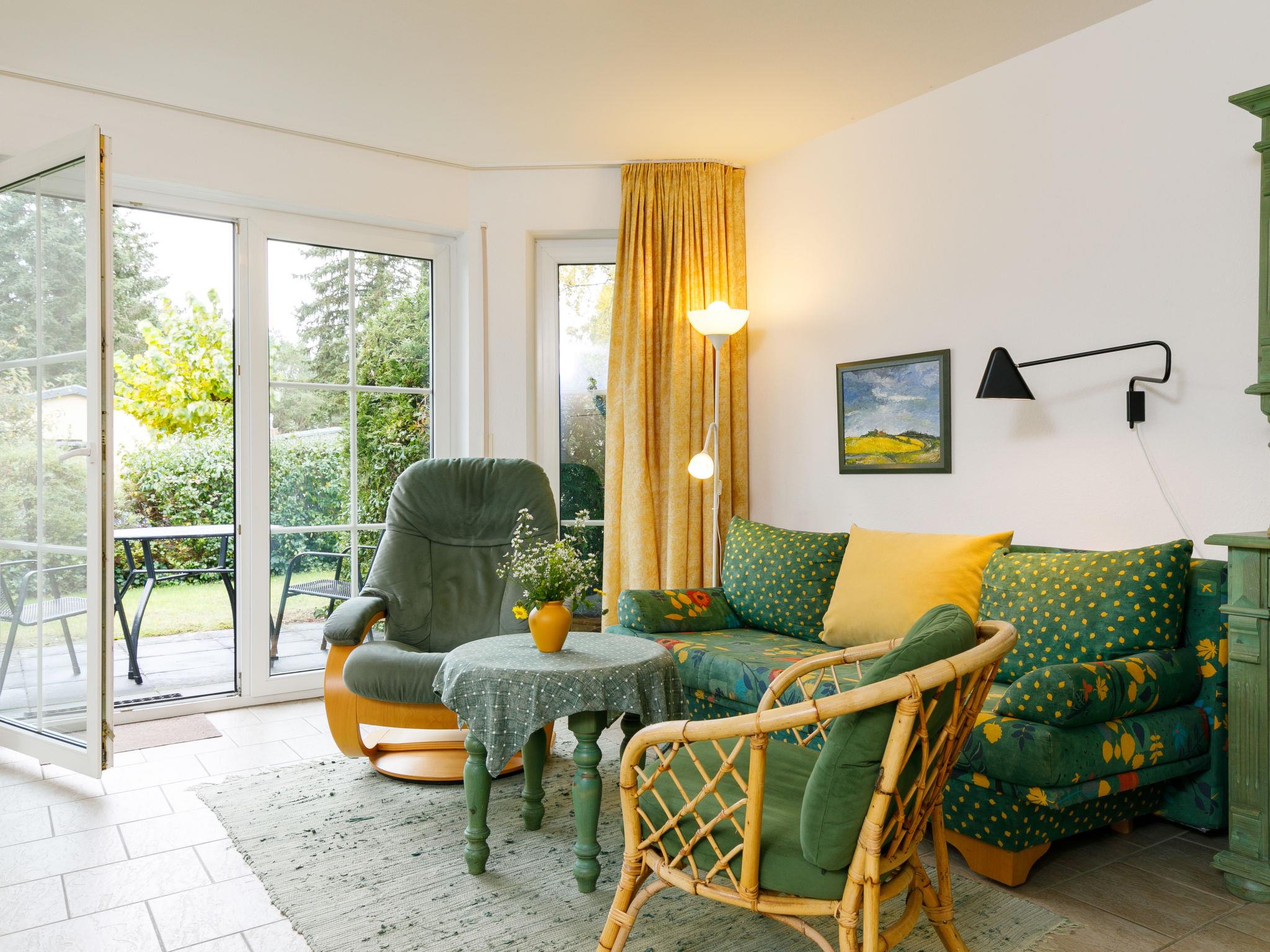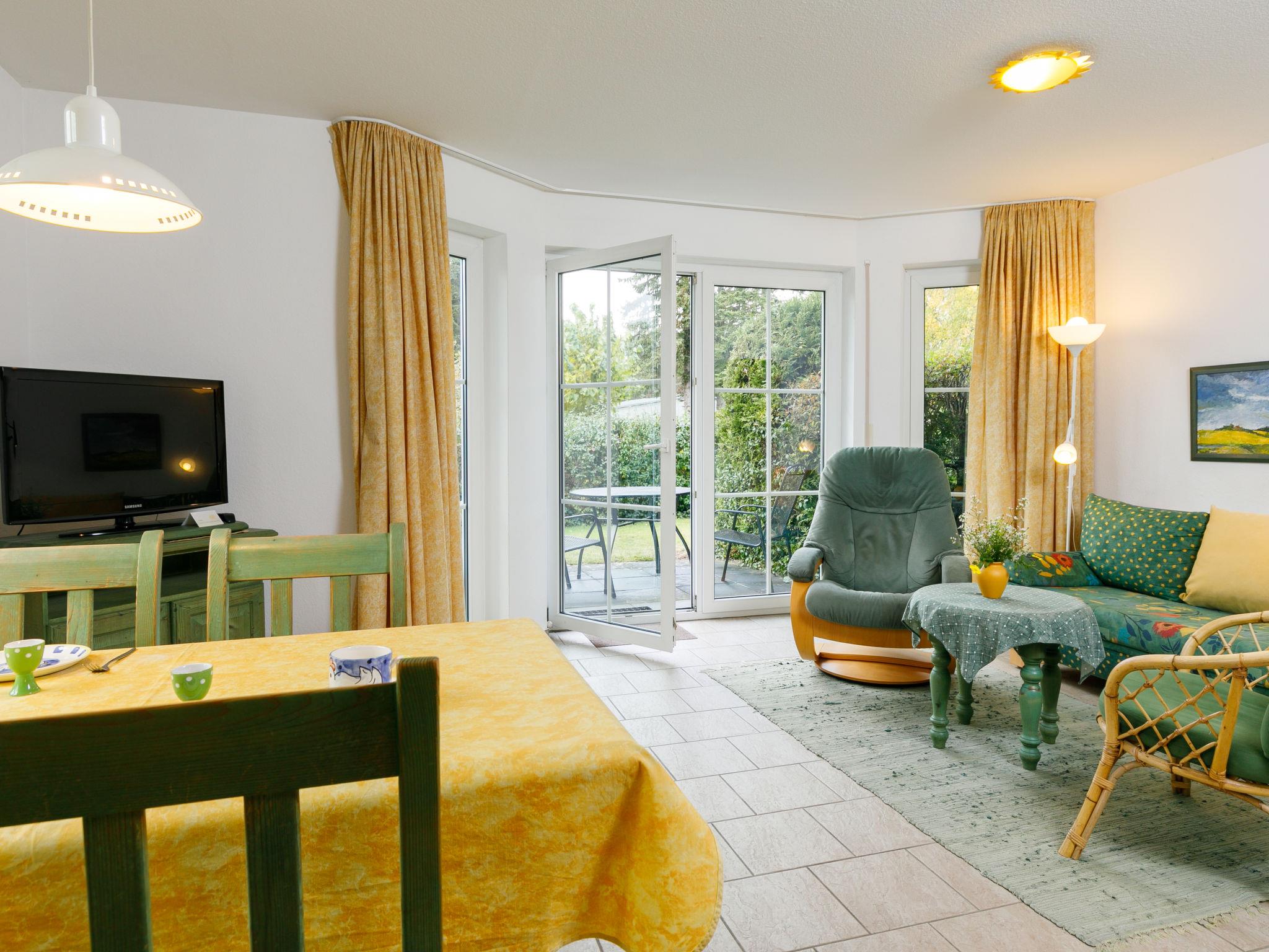 "Eickhus Grüne Wohnung", 2-room apartment 50 m2, on the ground floor. Spacious and bright, comfortable and cosy furnishings: large living/dining room with dining table, satellite TV and radio. Exit to the terrace. 1 double bedroom with 1 double bed (160 cm, length 200 cm). Kitchen-/living room (4 hot plates, oven, toaster, kettle). Shower/WC. Gas heating, underfloor heating. Natural stone floors, carpet. Terrace. Terrace furniture. Facilities: Internet (WiFi, free). Parking. Please note: smoke alarm. E-bikes can be charged free of charge in the bicycle room.