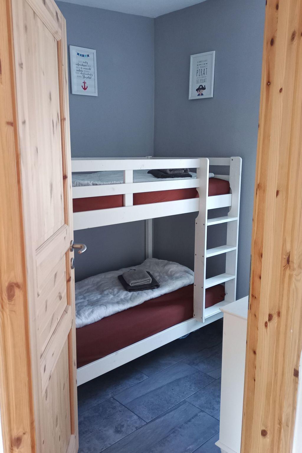 The holiday flat is small but nice, so it offers a maximum of two adults and two children (or one adult and three children) a cosy home for a great Baltic Sea holiday! In the living room, you can lounge on the sofa (and watch TV), play games or eat the food you have prepared in the kitchen. In addition to the cooker, kettle, mini oven, toaster and coffee machine, the most important kitchen utensils are available for kitchen magic. (Of course, there are also two bunks for sleeping on holiday. The grown-ups sleep in the 1.60 metre wide double bed and the little ones have to work out where to sleep first, as they sleep in the bunk bed in the children's bedroom. Unfortunately, there is no room for a cot, but we are happy to provide a safety rail for the bunk bed as an alternative. Last but not least, there is a small bathroom with shower, WC and washbasin. A hairdryer and towels are of course available.