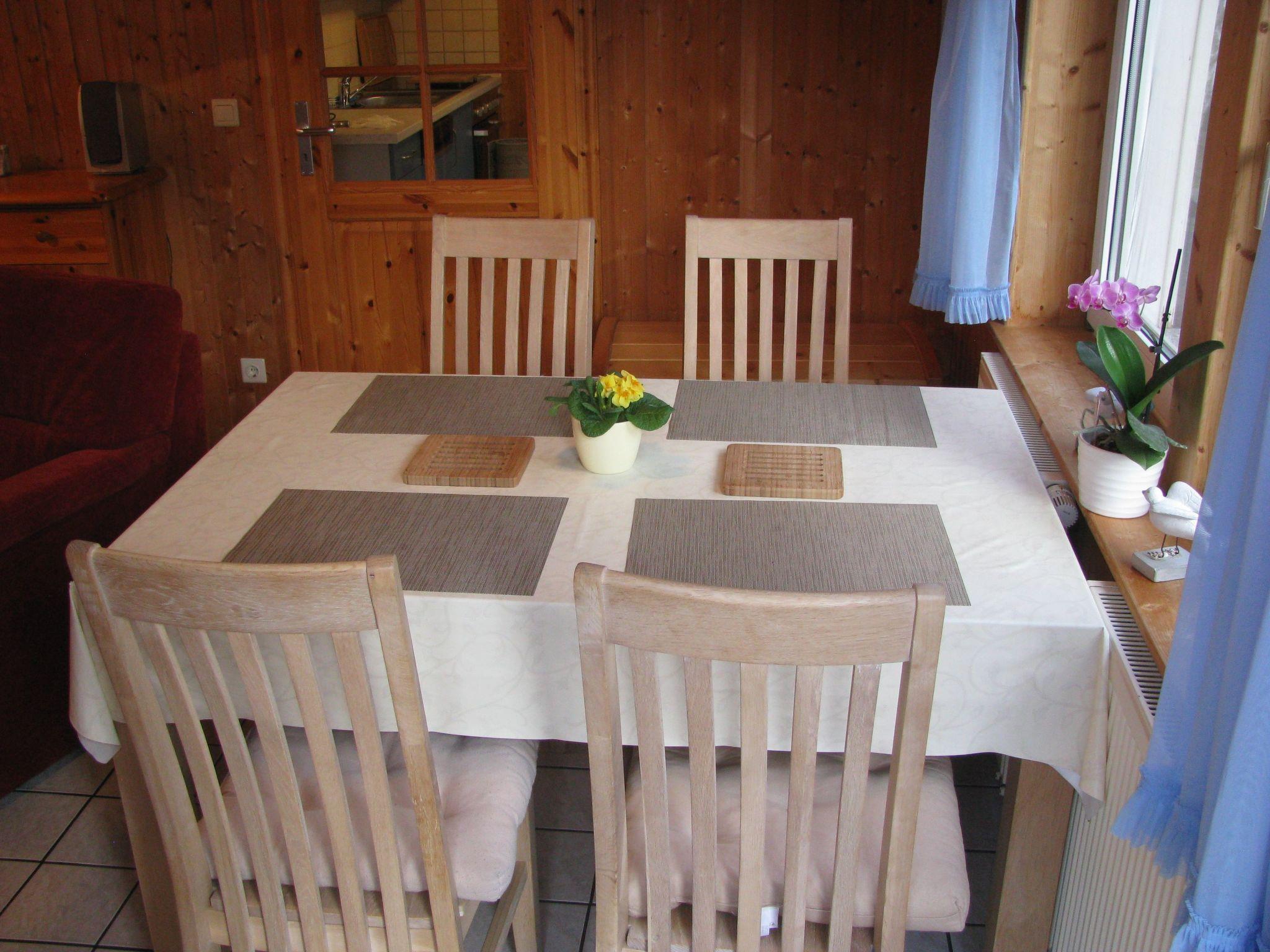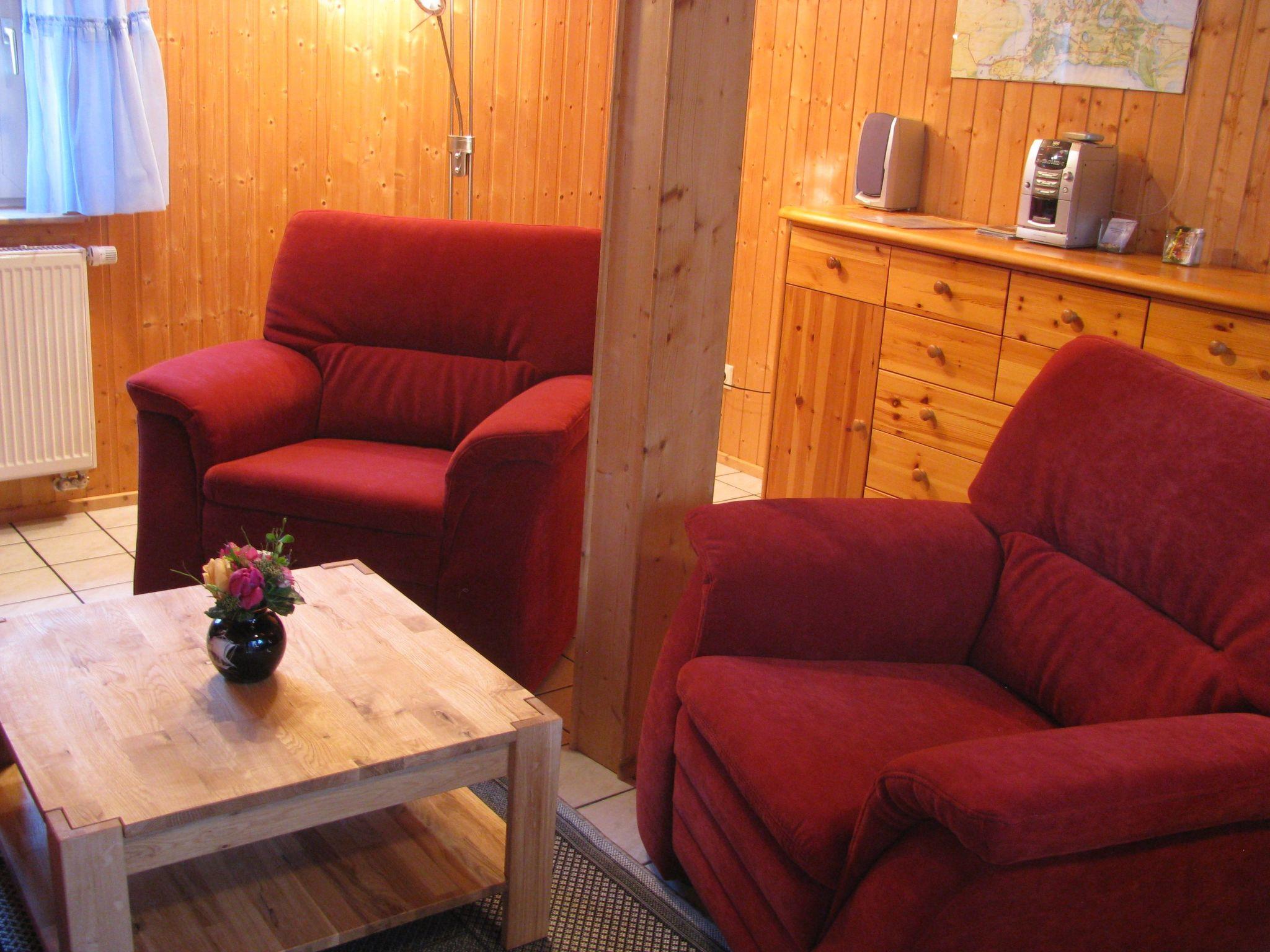 Our holiday home has been lovingly furnished by us in a Nordic style and offers you enough space for up to four people on a living space of 80 square metres at any time of the year. Our guests have access to a large terrace around the house with patio furniture, sun loungers, a barbecue and play facilities for the children. The car park is located on the enclosed property. Our holiday home is a non-smoking house and pets are not allowed. On the lower floor is the functional kitchen from 2017 with electric cooker, fridge, microwave, dishwasher, dining area etc. as well as a bright living and dining room with a large dining table for up to four people, plus a double sofa bed from 2018 which can be used for sleeping and a large flat screen TV, radio and CD player. Our large bathroom with shower, WC and window is also located on the ground floor. The upper floor is equipped with a separate bedroom with a double bed and built-in wardrobes where there is the possibility to set up a cot for your little ones. Another bedroom with a large double bed from 2019 as well as a flat screen TV a radio and a CD player the floor is made of wood (floorboards) and was newly installed in 2015. WLAN is of course available free of charge.