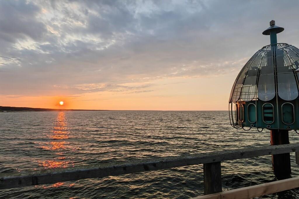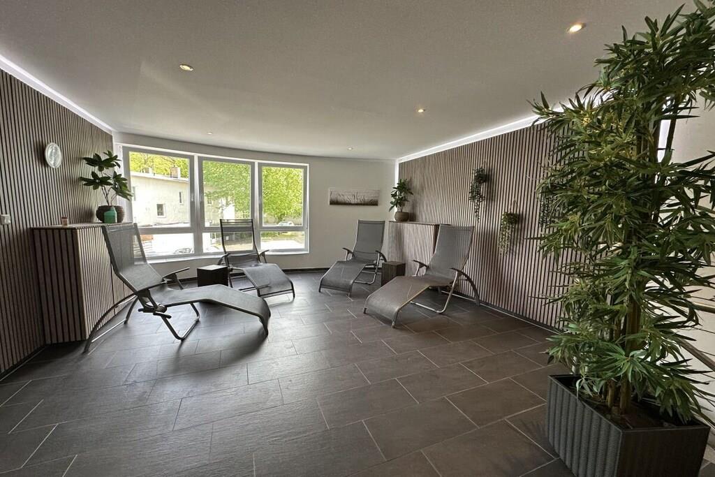 Vores ferielejlighed ligger i stueetagen af Villa Marin, lige i centrum af Zinnowitz på den solrige ø Usedom, kun få skridt fra den fine sandstrand. Med sine to værelser og privat sydvendt terrasse kan den rumme to til fire personer. Lejligheden har en opholdsstue med åbent køkken, et soveværelse, et badeværelse med bruser og en terrasse med haveområde. I den kærligt møblerede opholdsstue inviterer en komfortabel sofa, en lænestol og et moderne 4K Smart TV med soundbar til hyggelige aftener. Den højkvalitets sovesofa giver plads til en eller to ekstra gæster. På solrige dage tilbyder vores terrasse med spisebord og fire stole samt vores strandstol plads til afslappende timer udendørs. Nyd eksklusiv komfort med en swimmingpool på stedet og et stilfuldt wellness-område med sauna – ideelt til afslapning efter en dag på stranden. Dette område er ikke tilgængeligt for kørestolsbrugere. Denne lejlighed har en gratis parkeringsplads direkte ved bygningen. Cykler kan opbevares i cykelkælderen. Vaskemaskine og tørretumbler er tilgængelige i et separat rum (3 x EURO1,00). Vores lejlighed er tilgængelig for kørestolsbrugere. Hunde er velkomne efter forudgående aftale.