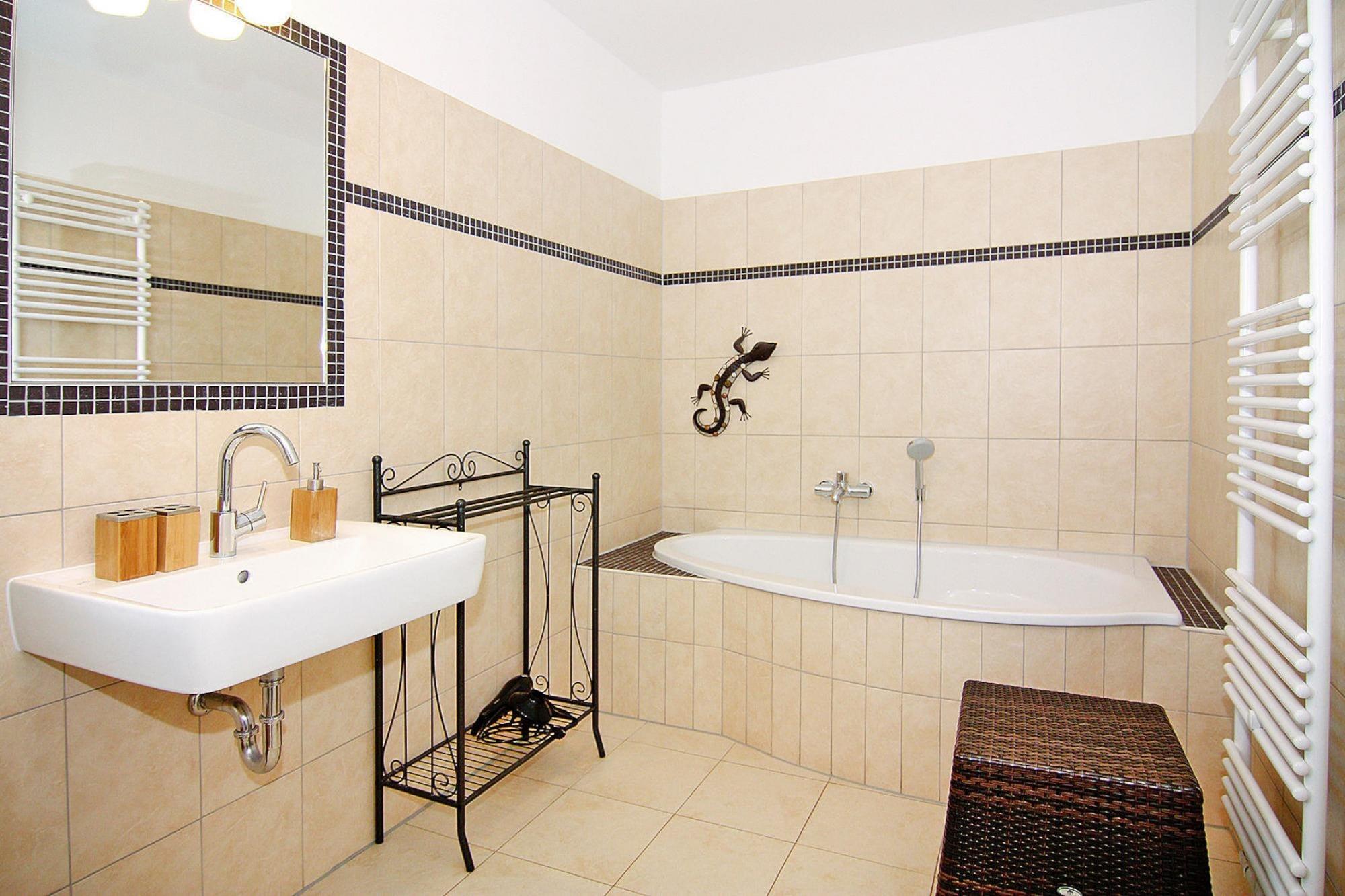Stråtækt sommerhus, komfortabelt møbleret og med udsigt over bagvandene kun 200 meter væk. Det charmerende Ostseebad Zinnowitz ligger på en af de smalleste dele af øen, som er præget af Østersøen og indre vandveje. Her blev der i begyndelsen af 1900-tallet bygget hoteller og gæstehuse i den kendte badearkitektur, som sammen med den rummelige promenade skaber et smukt billede og indbyder til en aftentur. Detaljer: WiFi Aktiviteter i nærheden: Den let skrånende sandstrand er et paradis for små skaljægere og vandrotter, men solhungrende ældre gæster vil også føle sig hjemme her. Når solen ikke skinner, kan du bare besøge Bernsteintherme med sit 850 kvadratmeter store havvandsbadeområde. Tip: en dykkertur med dykkerklokken på molen og udflugter med skib på Østersøen eller bagvandene. Ikke egnet til personer med nedsat mobilitet