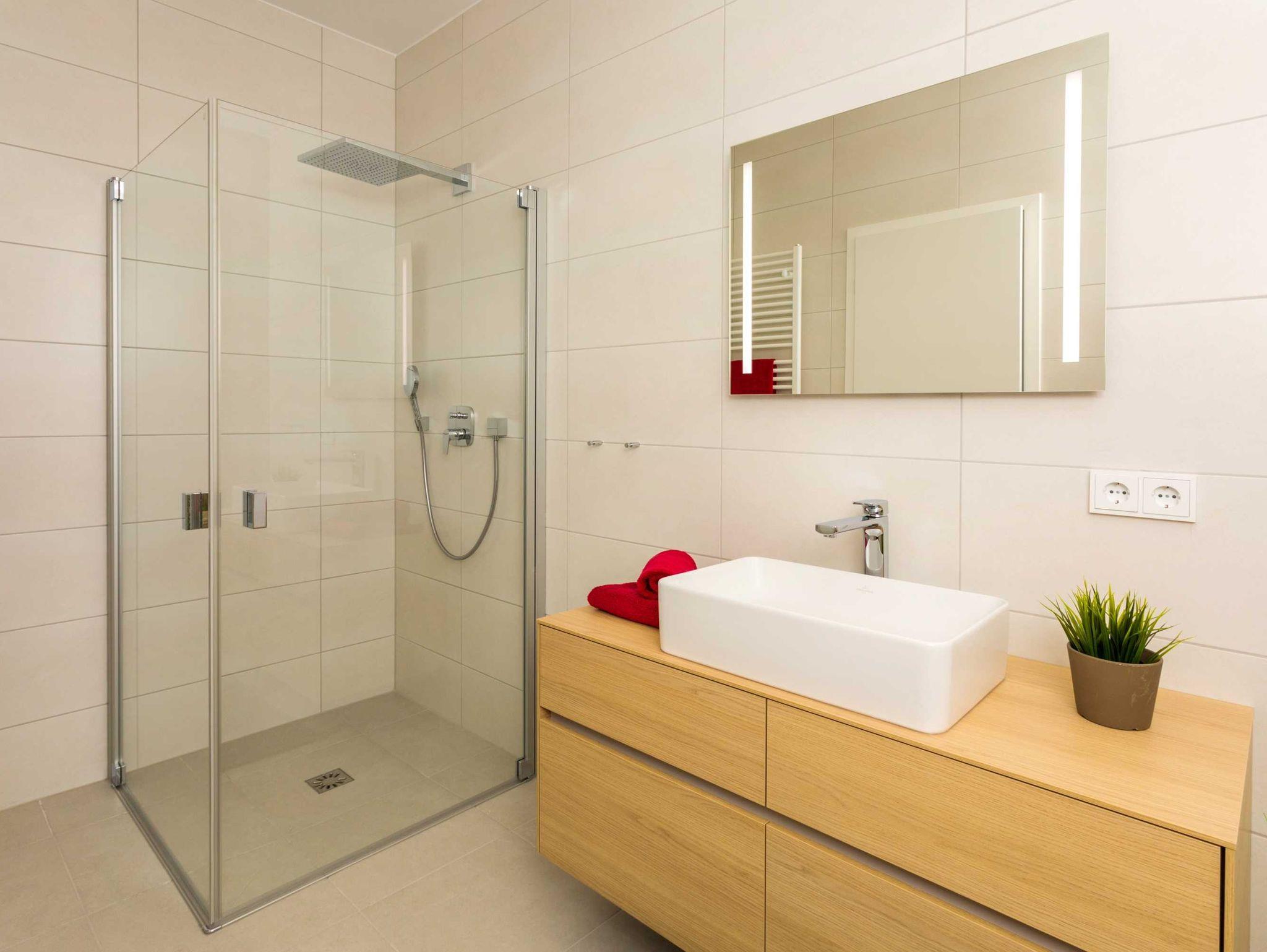 • Badezimmer mit WC, Dusche und Haartrockner