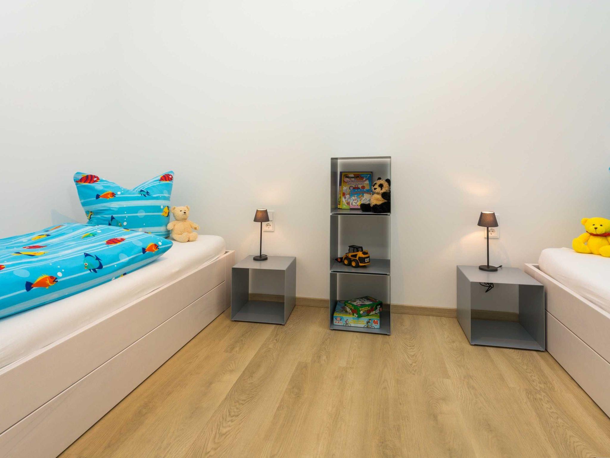 • 1 Schlafzimmer mit zwei Einzelbetten (jeweils 200cm x 100cm)