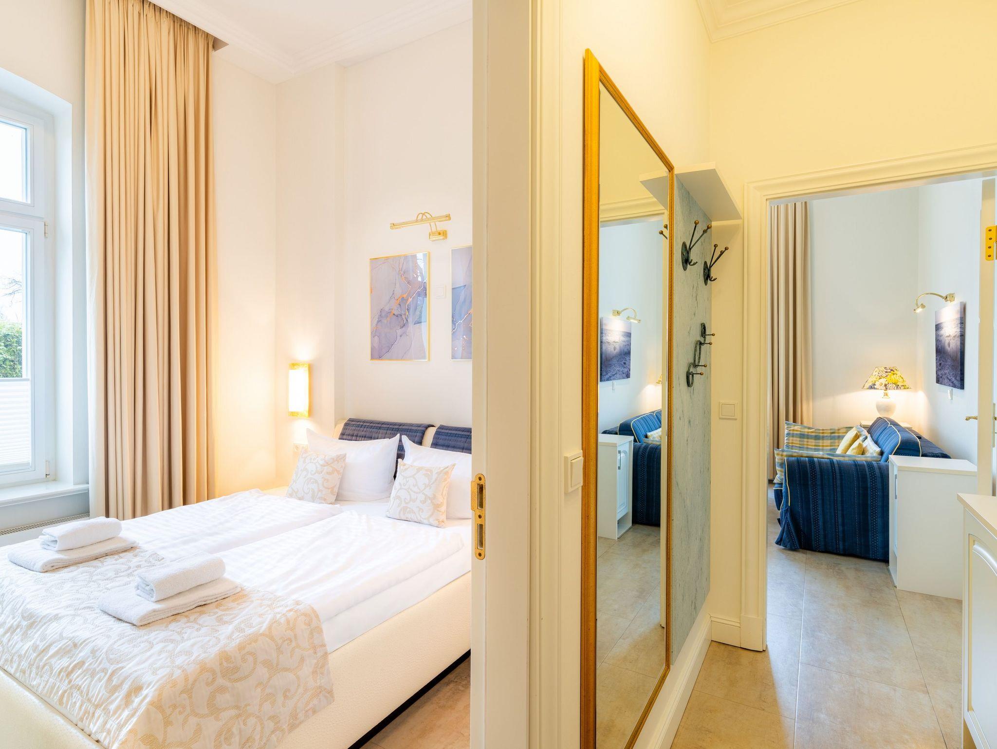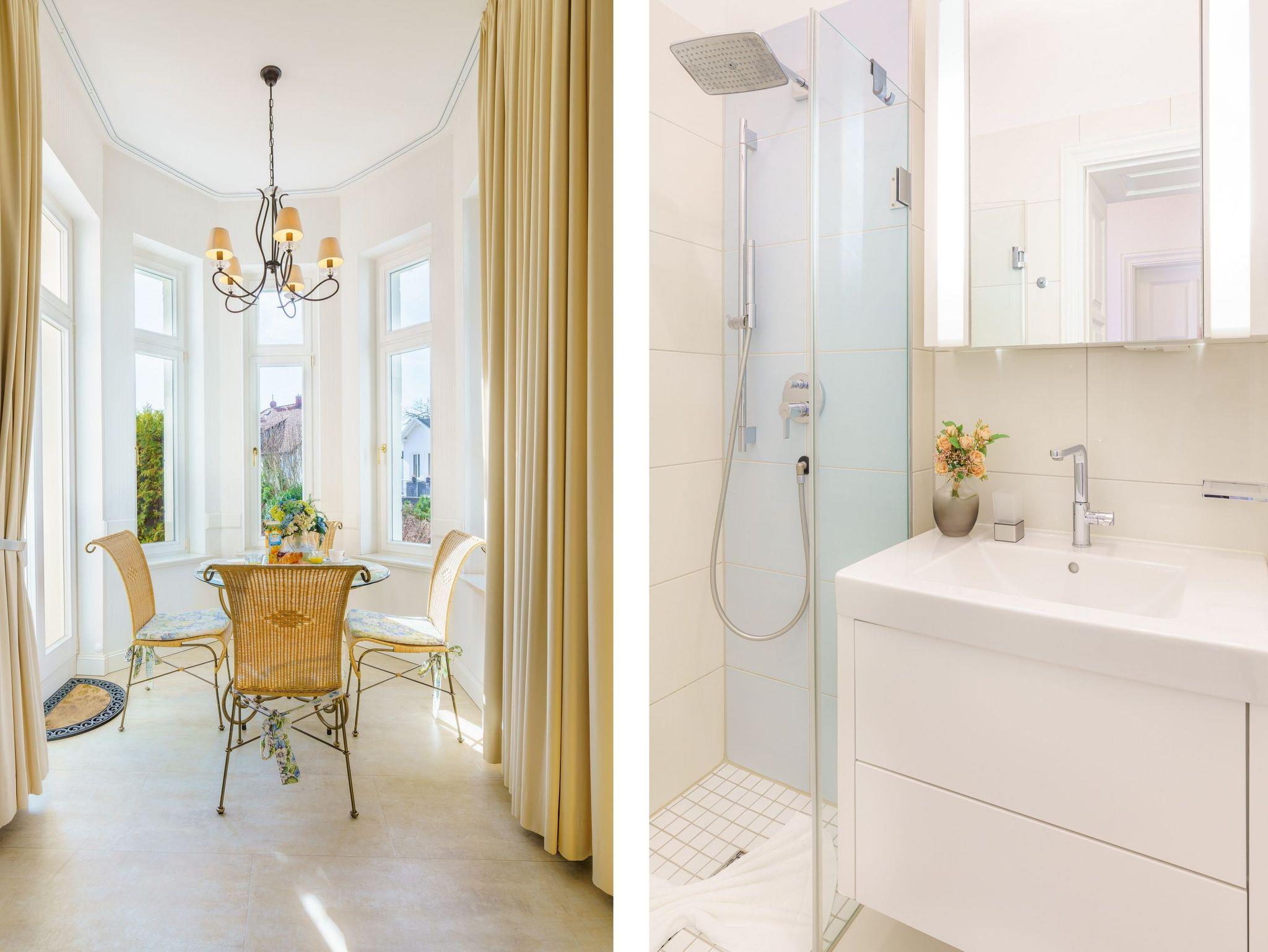 Erleben Sie einen 1a Urlaub im gleichnamigen Appartement 1a in der Villa Gruner. Das 2-Zimmer-Appartement im Hochparterre ist ein ideales und gleichzeitig elegantes Urlaubsquartier mit einer Größe von 45 Quadratmetern für bis zu 4 Personen. Die hohen Decken des Appartements verbreiten ein einzigartiges Villen-Feeling und sorgen mit der mediterranen Farbgebung für ein luftiges und lichtdurchflutetes Raumgefühl.