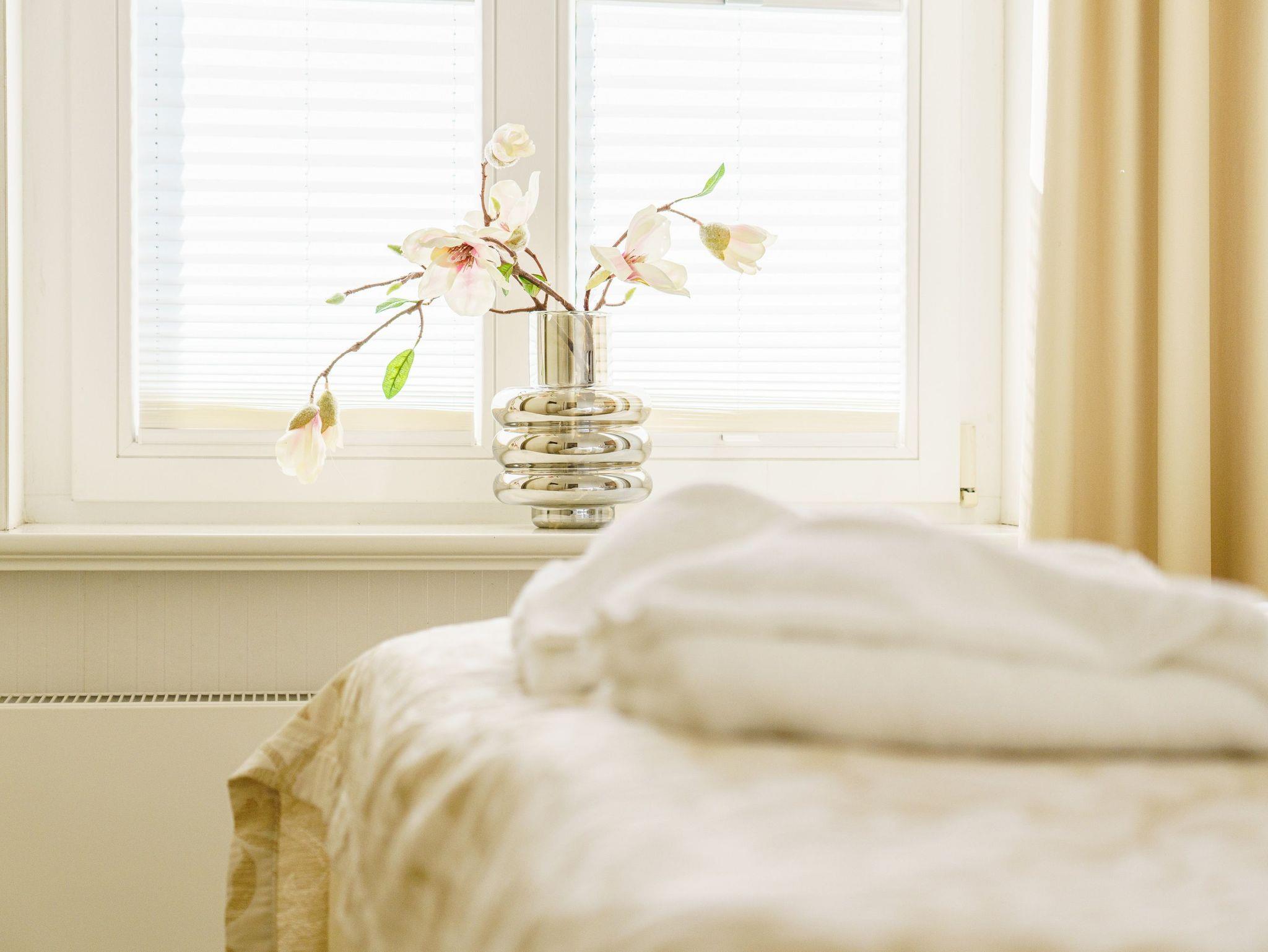 Damit Sie Ihre wohlverdiente Urlaubszeit bereits am Anreisetag in vollen Zügen genießen können haben wir das Bett für Sie und das für Ihre lieben Mitreisenden bereits bezogen und ein Duschtuch sowie ein kleines Handtuch bereitgelegt. Wohn- und Schlafzimmer sind mit Verdunklungsvorhängen ausgestattet. Im Badezimmer leuchten italienische Fliesen und moderne Accessoires. Die Echtglasdusche mit großflächiger Raindance Kopfbrause sorgt für ein angenehmes Duschvergnügen, ein Haarfön steht zur Verfügung.