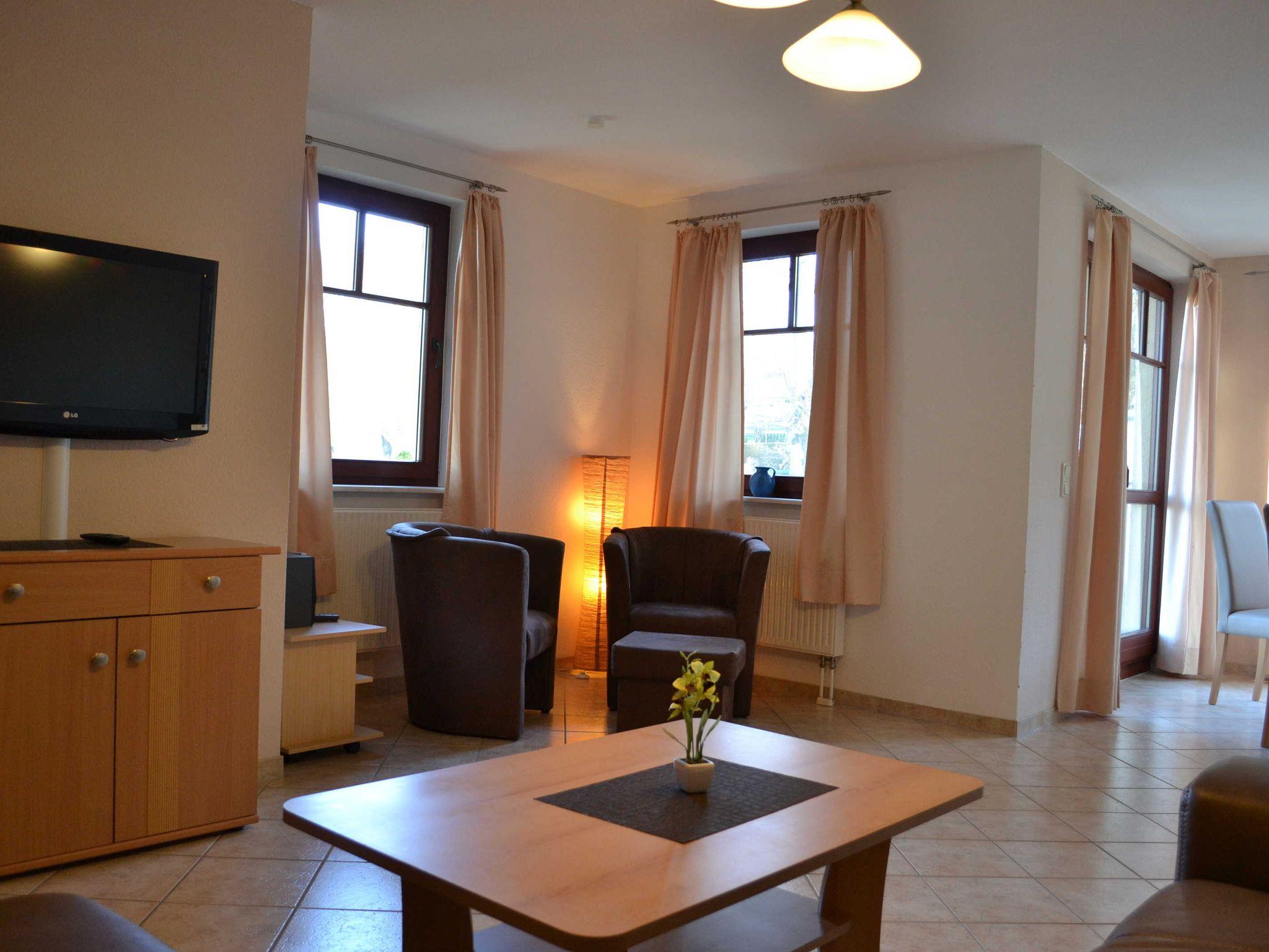 Große Wohnung im 1. OG mit 1 Schlafzimmer mit Babyreisebett und 1 aufbettbaren Wohnzimmer und WLAN