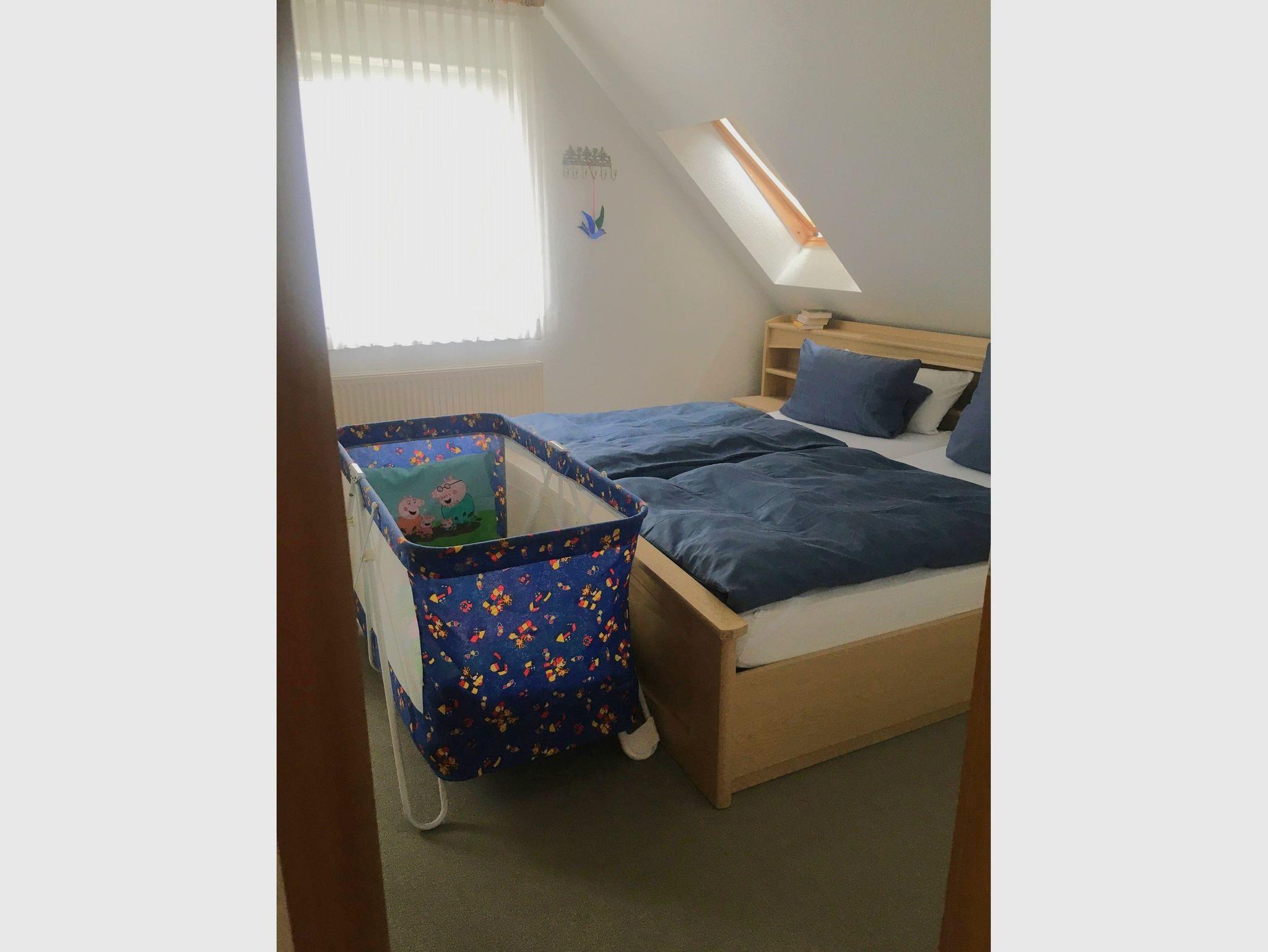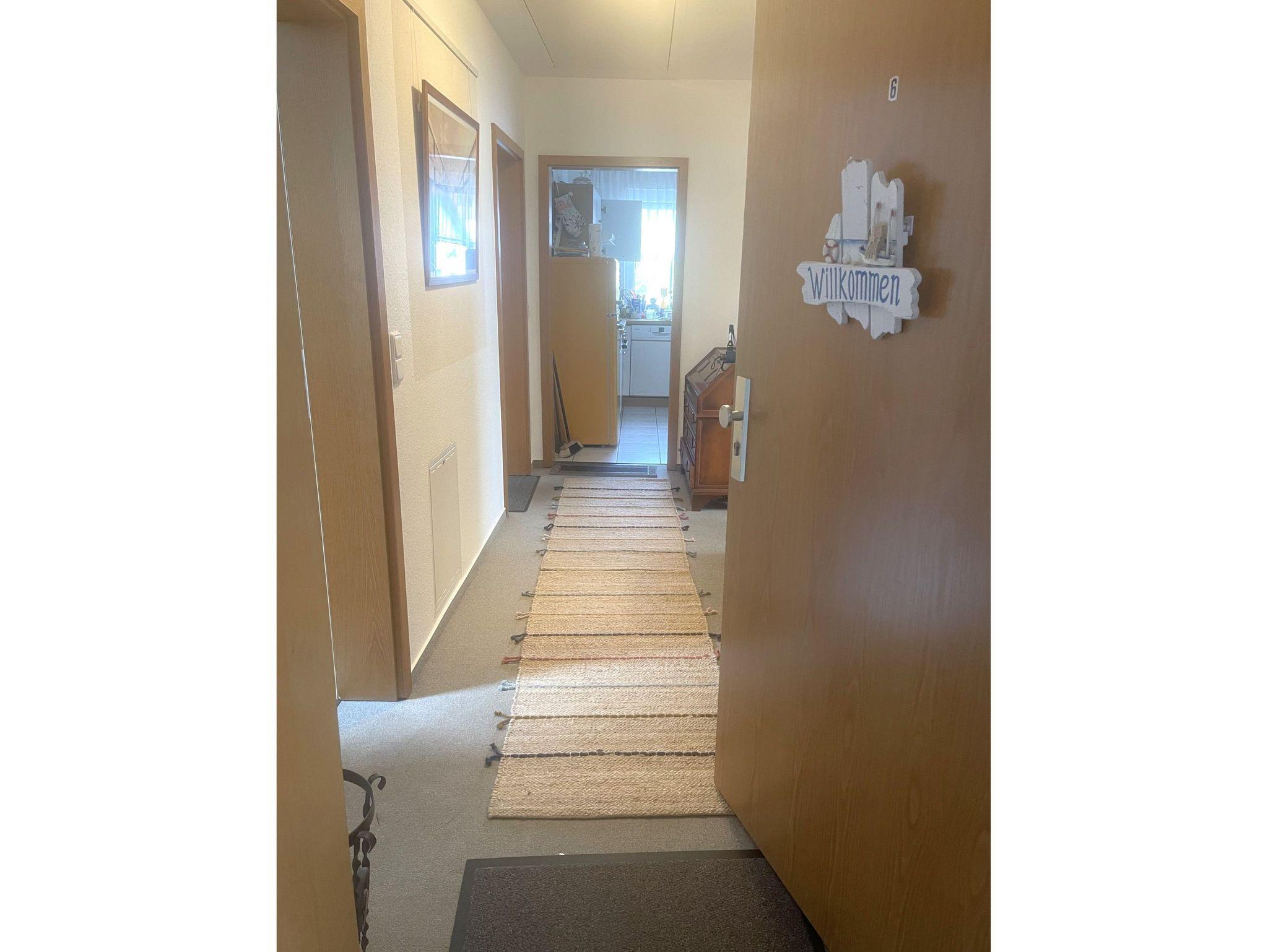 Die Ferienwohnung Meeresgruß befindet sich im 1. Obergeschoss in einem Mehrfamilienhaus und ist ca. 68 m² groß. Die geräumige 2-Raum-Wohnung verfügt über ein großes Wohnzimmer mit einer gemütlichen Sitzecke und einem Essplatz. Vom Wohnzimmer aus gelangen Sie auf den Balkon, wo aich geraucht werden darf. Im Schlafzimmer steht Ihnen ein großes Doppelbett (180x200x) für zwei Personen zur Verfügung. Hier ist auch Platz für ein Kinderbett. Durch das Schrankbett (160x200m) im Wohnzimmer bietet die Ferienwohnung genügend Platz für 4 Personen. In der vollausgestatteten Küche finden Sie alles für den täglichen Gebrauch. Das Badezimmer ist ausgestattet mit einer Dusche und einer Badewanne. Für die kleinesten Gäste steht ein Hochstuhl und ein Kinderbett kostenlos zur Verfügung. Bettwäsche und Handtücher sind nicht im Preis enthalten und können dazu gebucht werden. Zur Wohnung gehört ein abschließbarer Fahrradschuppen, hier haben zwei Fahrräder ausreichend Platz.
