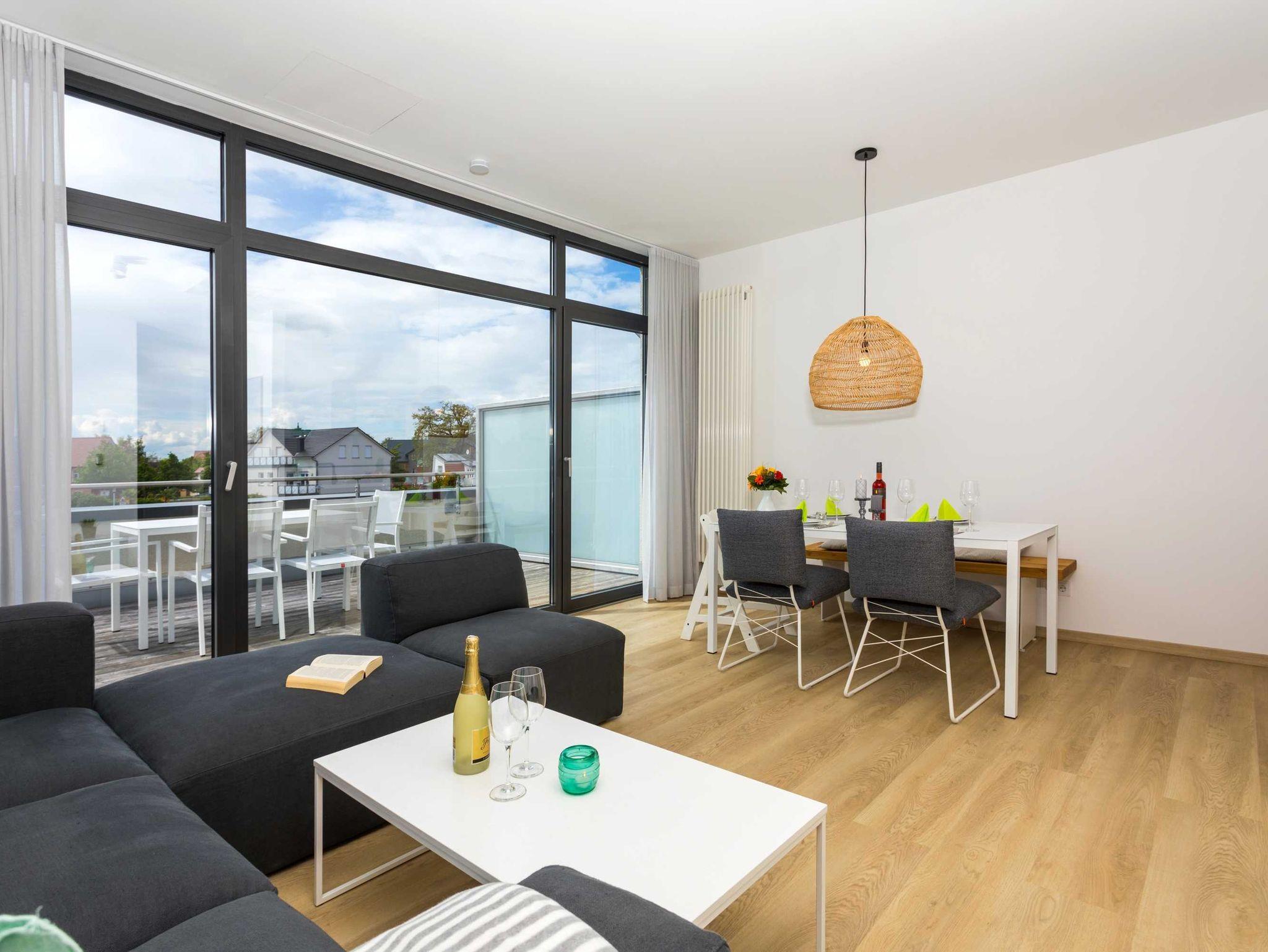 Die ca. 60 m² große Ferienwohnung Glienbergweg 24b Wohnung 3 befindet sich in zentraler Lage in Zinnowitz über einem Rossmann Markt. Sie ist ca. 8 Gehminuten vom Strand entfernt. Zu der 3-Raum-Wohnung gehört ein Balkon und ein PKW-Stellplatz. Eine Bäckerei mit Frühstücksangebot ist ca. 2 Gehminuten entfernt.