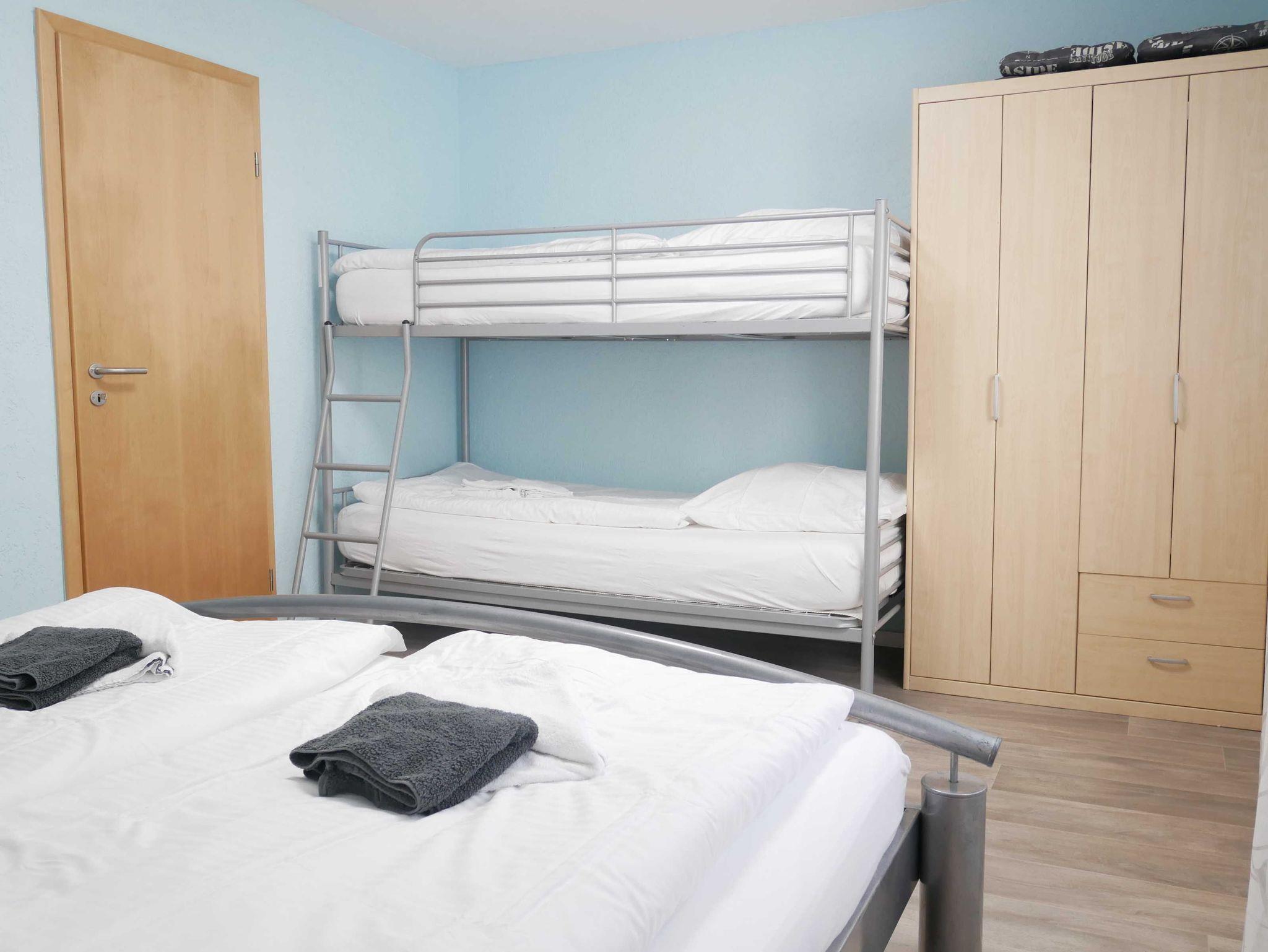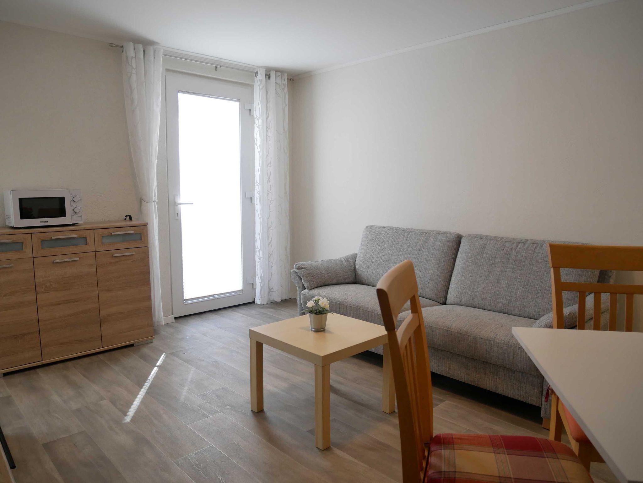 Die Ferienwohnung verfügt über ein Schlafzimmer, in dem sich ein Doppelbett, ein Einzelbettsofa sowie ein Kleiderschrank befindet. Zudem verfügt die Ferienwohnung über ein gemütliches Wohnzimmer mit Couch und Flachbildfernseher sowie einem Essbereich für vier Personen.