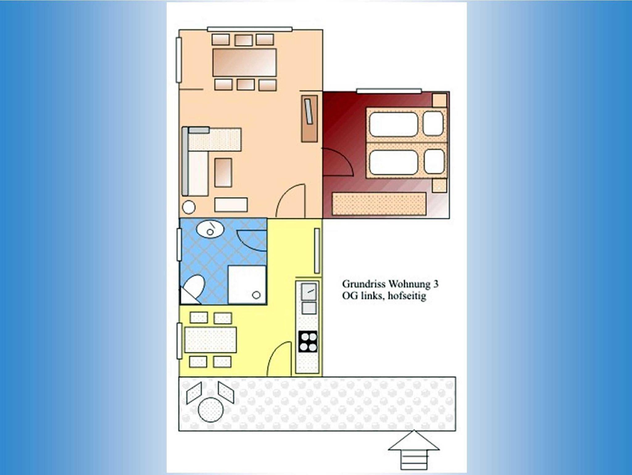 Top-Ferienwohnung hübsch eingerichtet, auf ca. 64 m² im Obergeschoss