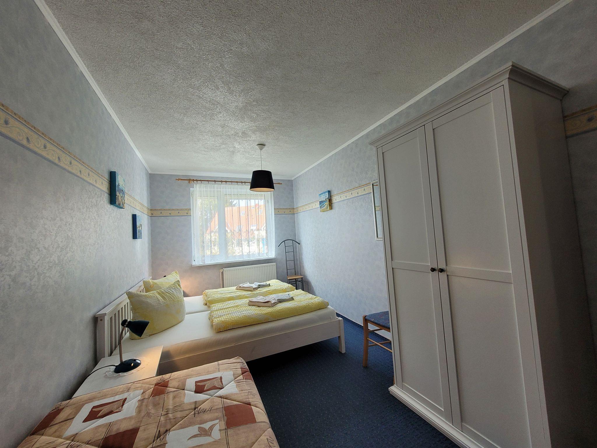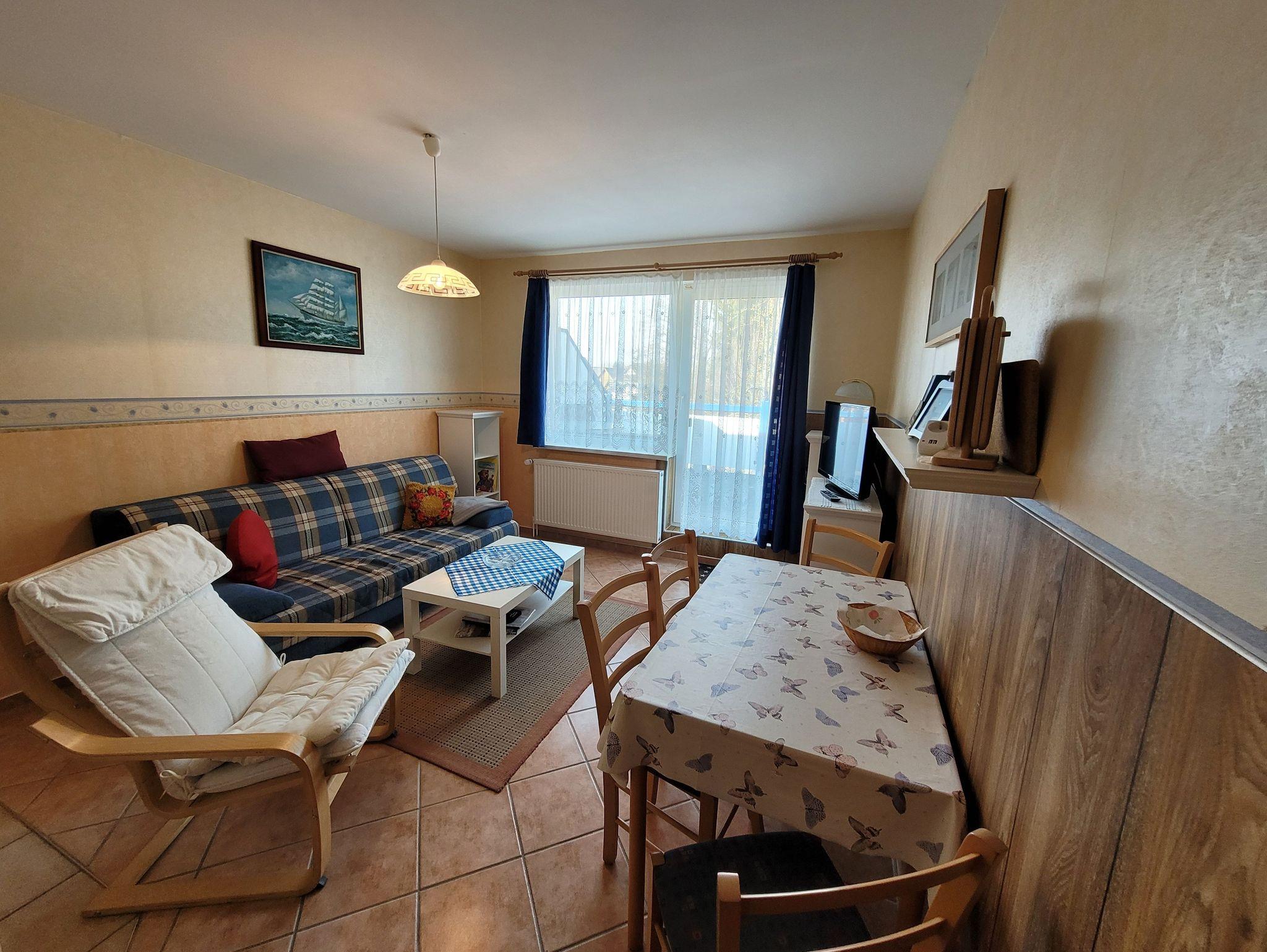 Unser Ferienhaus liegt ca.15 Geh-Minuten vom Strand entfernt in einer ruhigen Wohnlage. Die komplett eingerichtete Ferienwohnung mit Wohnzimmer, ein Schlafzimmer mit einem Ehebett und einer Liege, Küchenzeile, Dusche, WC, Flur und großem Balkon/Terrasse würde für Sie bereitstehen. Zur Ausstattung gehören weiter Radio, Fernseher, einmalig Bettwäsche und Handtücher. In der Küchenzeile sind Mikrowelle, Kaffeemaschine und Toaster, Eier-und Wasserkocher sowie ein 2-Platten-Kocher, Kühlschrank und Geschirr vorhanden. Eine Aufbettung ist im Wohnzimmer nach Absprache auf dem ausziehbarem Sofa möglich. Zu jeder Wohnung gehört ein kostenloser Parkplatz für Ihr Auto. In dieser Wohnung sind k e i n e Haustiere erlaubt!